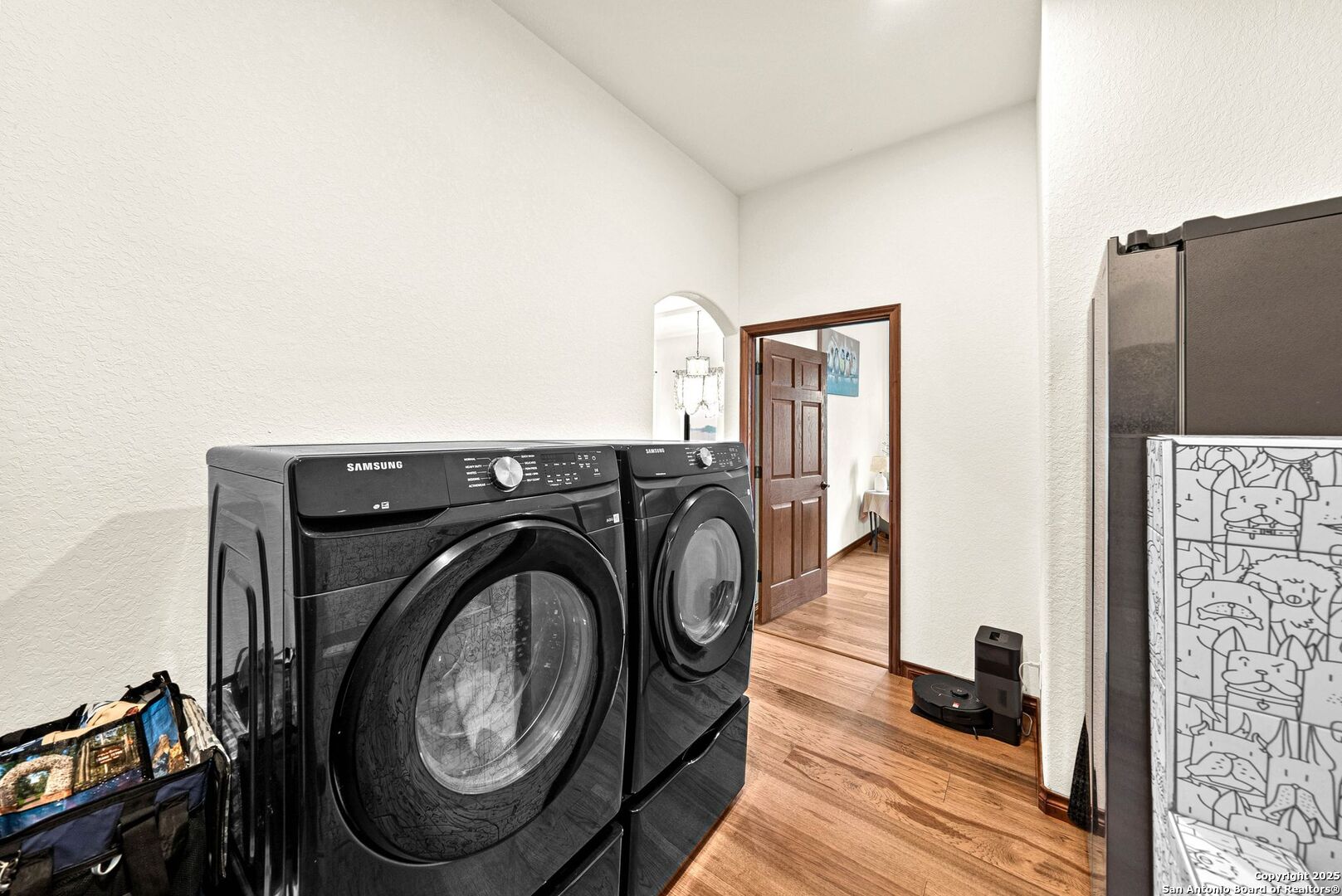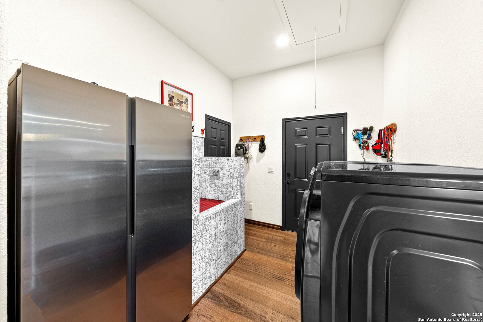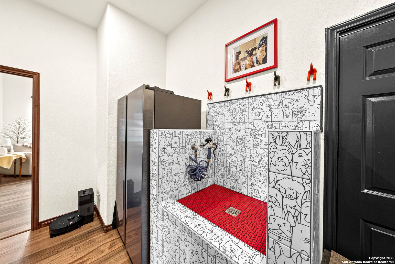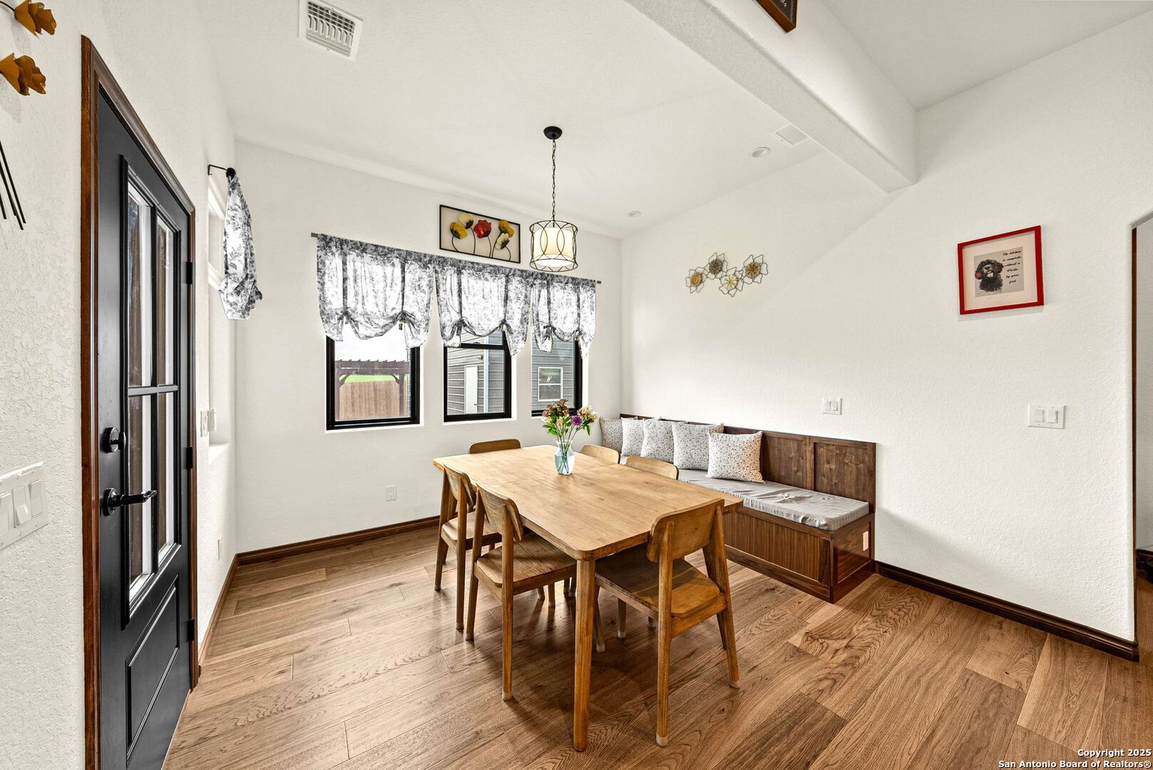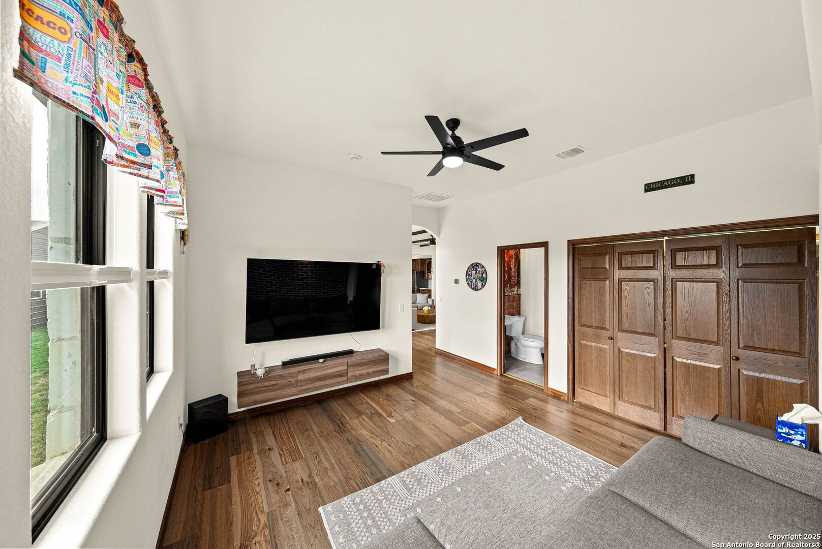 This stunning single-story custom home offers 4 bedrooms, 3.5 bathrooms, and sits on a spacious 1.11-acre lot with no city taxes. Thoughtfully designed, each bedroom includes its own private bathroom, ensuring comfort and privacy for all. The open floor plan is filled with natural light and showcases exceptional craftsmanship, featuring solid walnut custom cabinetry, quartz countertops, and a chef's kitchen tailored for culinary enthusiasts. Warm wood flooring flows throughout the living spaces, adding timeless charm. The home is built with 2x6 studs and spray foam insulation for superior energy efficiency. A gas fireplace brings cozy ambiance to the living area. The 600-square-foot climate-controlled shop includes its own bathroom, making it perfect for a gym, workshop, or creative studio. Additional features include a water softener and iron filter system. While the main roof is a heavy composition material rated for durability, a metal shed-style roof provides architectural interest and shade over the front windows. With 2,700 square feet of living space and high-performance finishes, this fully custom home offers refined South Texas living with lasting quality and comfort.