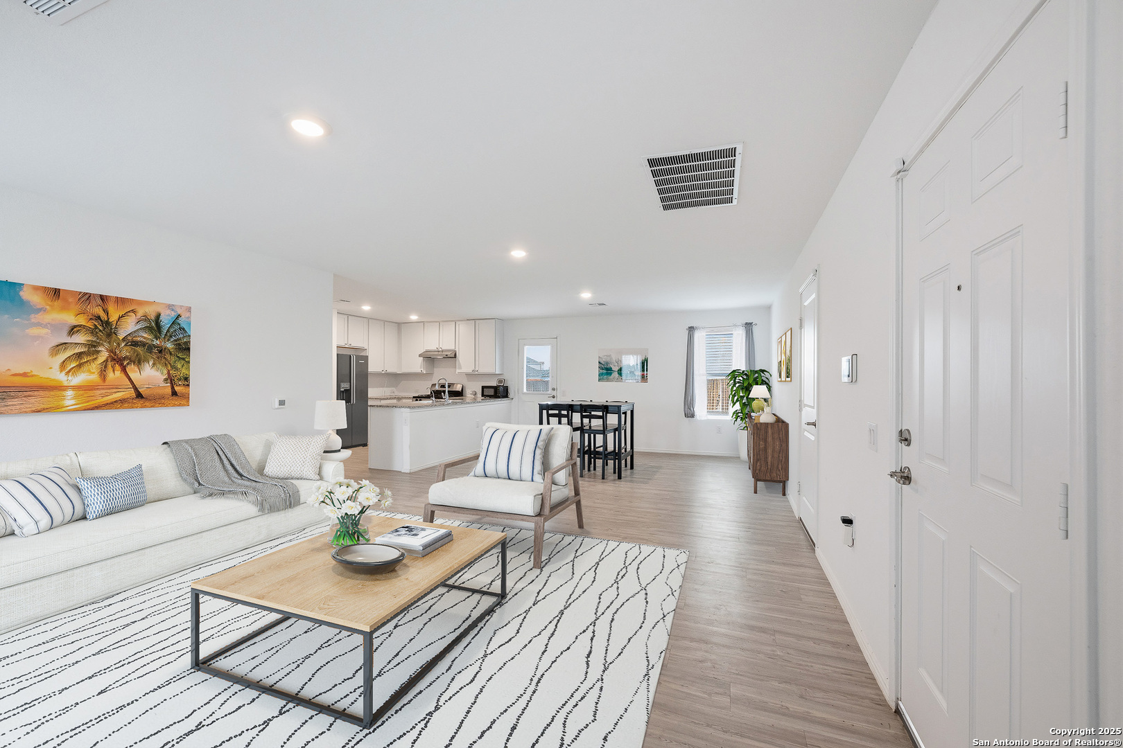 Discover the ease of "better than new" living in this impeccably maintained 2023-built Lennar home, nestled in the highly sought-after Mission Del Lago community. The heart of the home features a light-filled family room that flows effortlessly into a modern kitchen, complete with a central island/breakfast bar, and Energy Star appliances - ideal for both daily living and weekend entertaining. The private primary suite serves as a quiet sanctuary at the rear of the home, boasting a generous walk-in closet and a full ensuite bath. Two additional well-proportioned bedrooms provide versatility for a growing family, guests, or a dedicated home office. Beyond the interior, this home is situated on a level lot with a privacy fence already in place, saving you the immediate expense of post-construction upgrades. Residents enjoy world-class neighborhood amenities, including a premier golf course, clubhouse, sparkling pool, and sports courts. Located just minutes from Loop 410 and I-37, this home offers the perfect balance of suburban tranquility with a swift commute to downtown San Antonio.