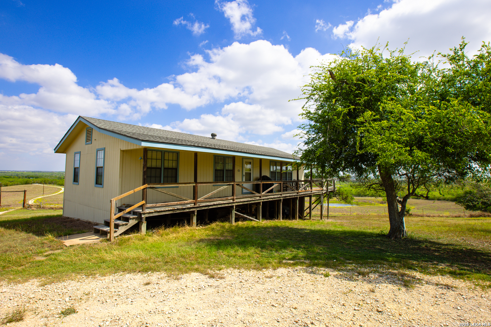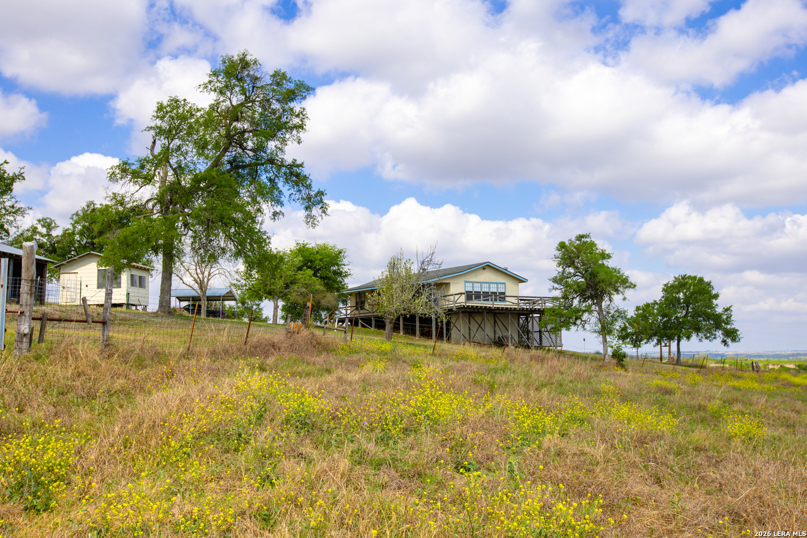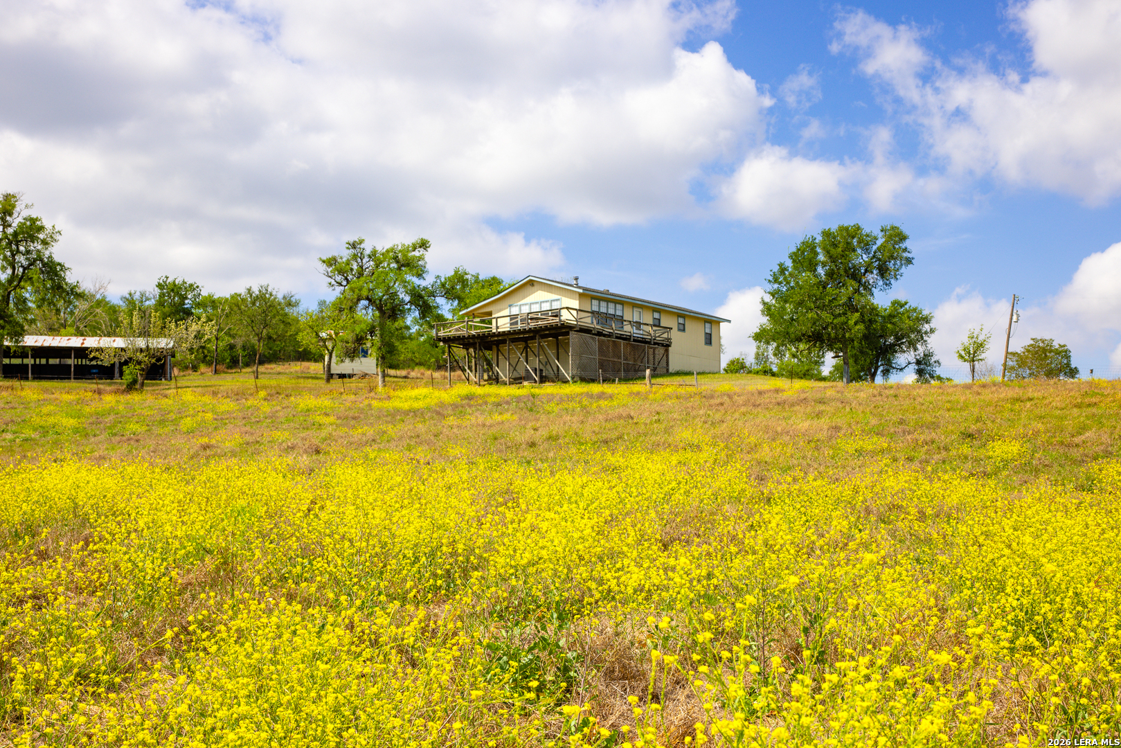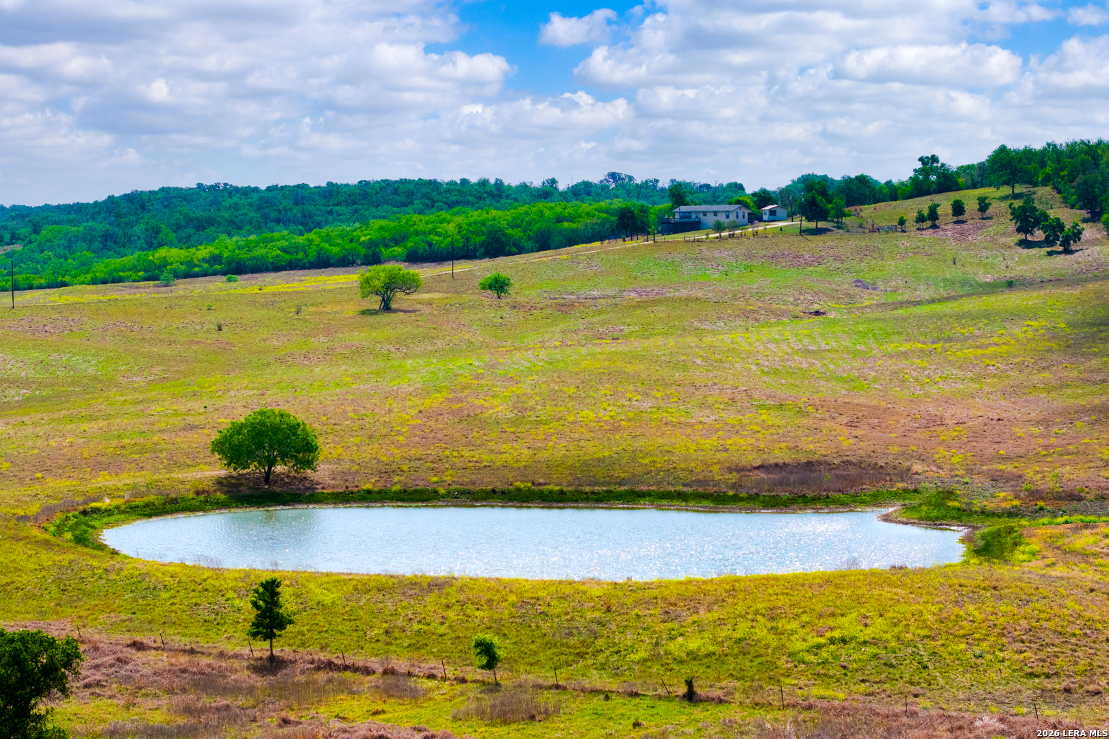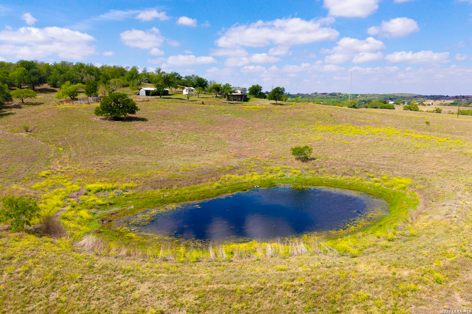 Bull Ranch is a picturesque family estate in highly desirable Guadalupe County, Texas, just north of the Town of Kingsbury. The land has been owned by the same family for half a century, and the property's quality reflects the family's intentional stewardship over the years. A quaint three-bedroom, one-bathroom home sits perched atop the highest point on the ranch and overlooks a canvas of well-kept pasture. The wraparound deck offers beautiful sunrises and sunsets against a panoramic backdrop of the property. A treelined, fully fenced perimeter provides privacy for the landowner and ample low-pressure wildlife habitat for White-tailed deer, Rio Grande turkey, and wild hog. The three tanks on the property provide year-round water for wildlife and livestock and recreational fishing opportunities for bass, bluegill, and catfish. If you are looking for a pristine country retreat not too far off the beaten path from the big city, Bull Ranch definitely fits the bill. Wildlife: White-tailed deer, Rio Grande turkey, wild hog. Terrain: Rolling hills, maintained pasture. Bisected by seasonal creek with rock outcroppings. Improvements: 3-bedroom, 1-bath farmhouse, 25' x 50' open-air barn, storage shed, covered parking Water: Three stock tanks