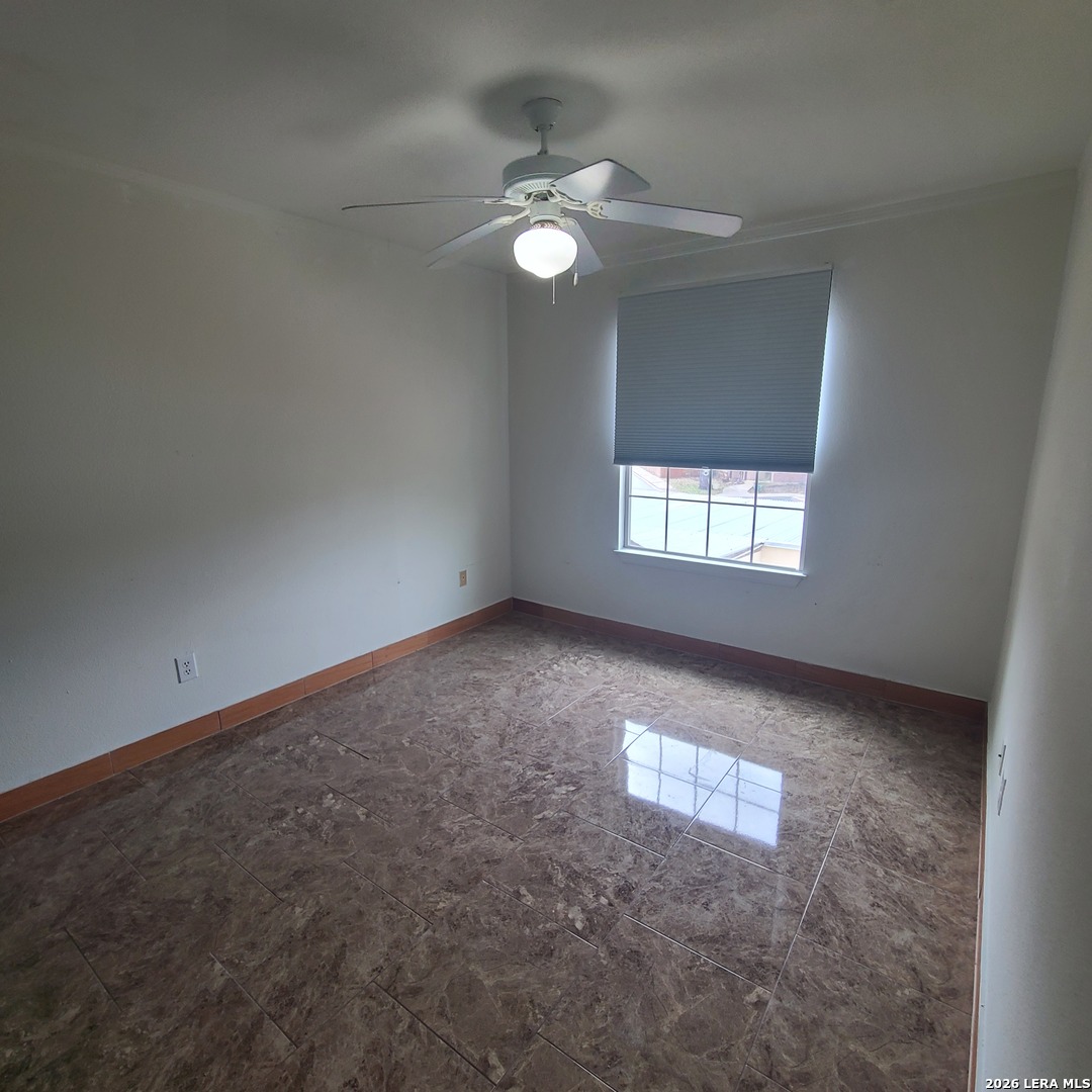Spacious 3 BR + study townhome ready for move in! Located near 1-10, & convenient to UTSA, USAA, The Medical Center. Tile & laminate flooring throughout- no carpet! Upstairs balcony off of the primary bedroom. Front courtyard, covered patio, storage room, & fenced backyard are more features of this home! 1 small pet ok.