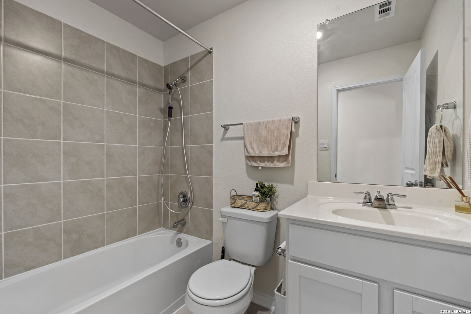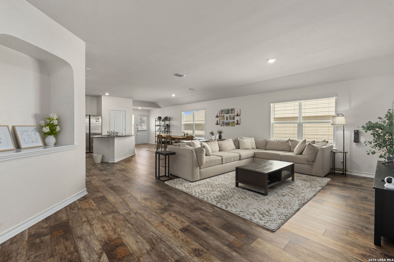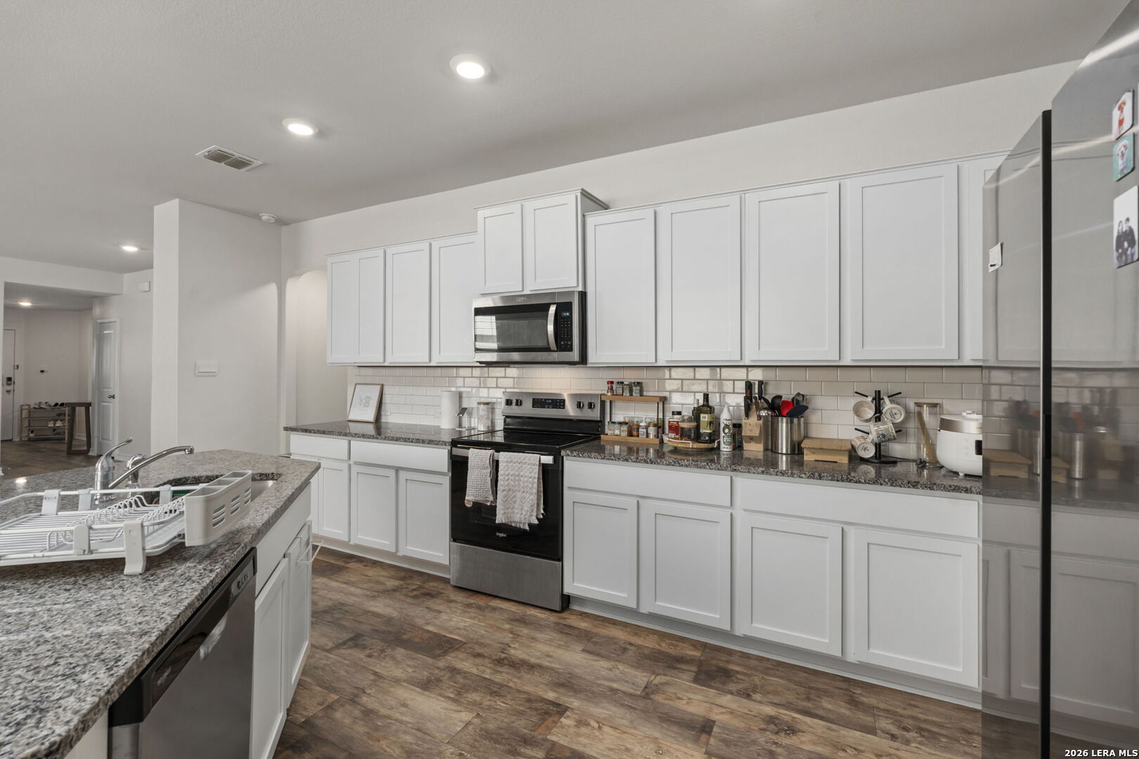 Situated on a quiet cul-de-sac in San Antonio, this inviting single-family home offers a comfortable layout designed for everyday living and easy entertaining. The entry opens into a spacious open-concept living area that flows naturally into the kitchen and dining spaces, creating a connected environment ideal for gathering or relaxing at home. Generous counter space, ample storage, and an eat-in island make the kitchen both functional and welcoming, supporting daily routines and casual meals alike. Well-proportioned secondary bedrooms provide flexibility for guests, a home office, or creative use, while the primary suite serves as a private retreat. The primary bedroom features a walk-in closet and an en suite bathroom with a soaking tub, separate standing shower, and dual vanity, offering both comfort and practicality. Natural light and thoughtful spacing throughout the home contribute to a warm, livable atmosphere. Outdoors, the backyard is designed for enjoyment with a covered patio and deck that extend the living space, perfect for morning coffee or unwinding in the evening. Located in San Antonio with convenient access to local amenities, this home combines a functional floor plan with a peaceful setting. Schedule a showing and imagine settling into the flow and comfort this property has to offer.
