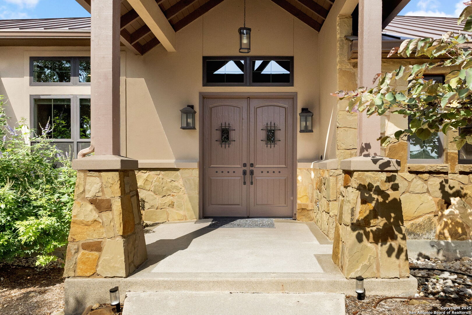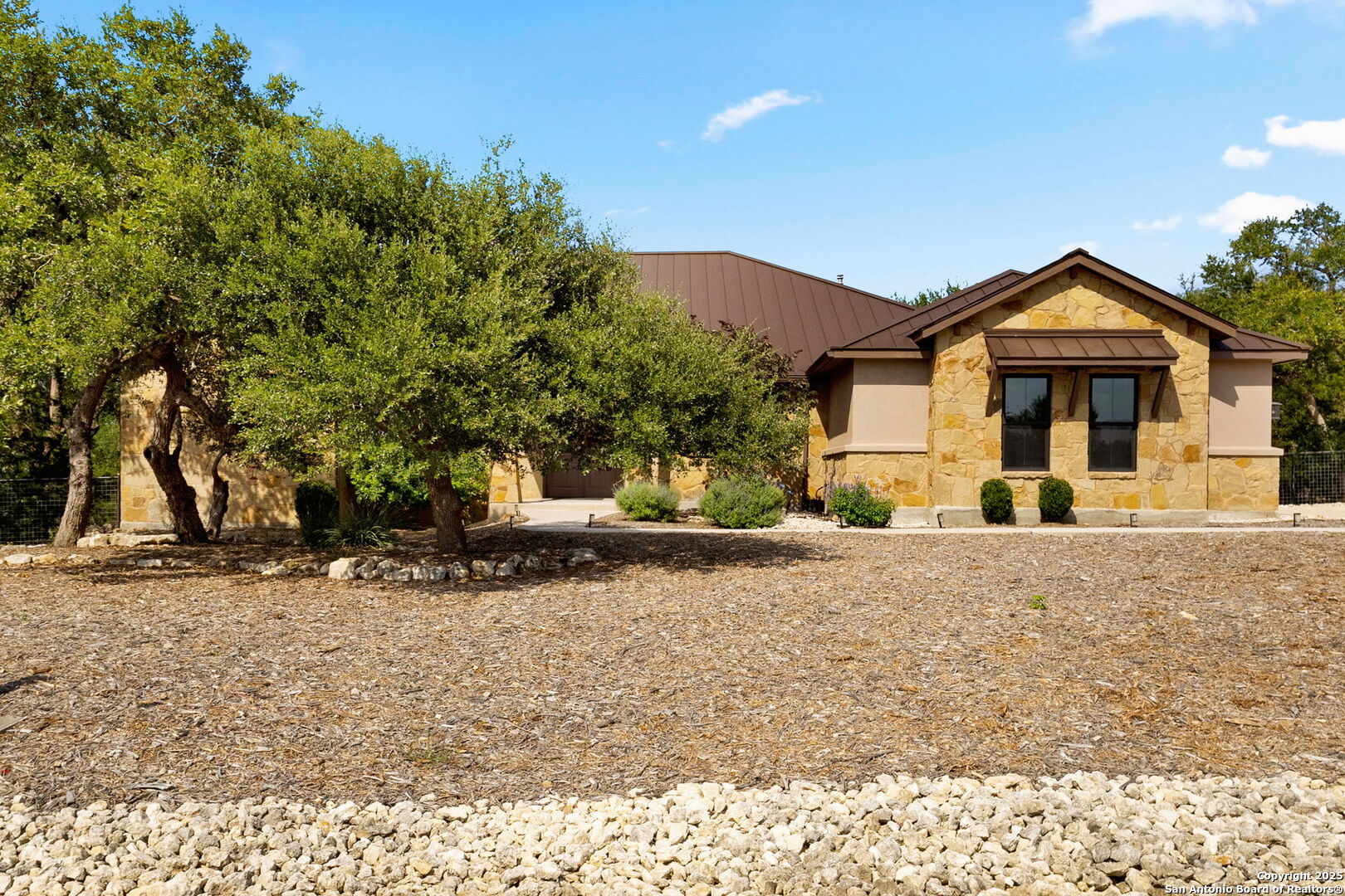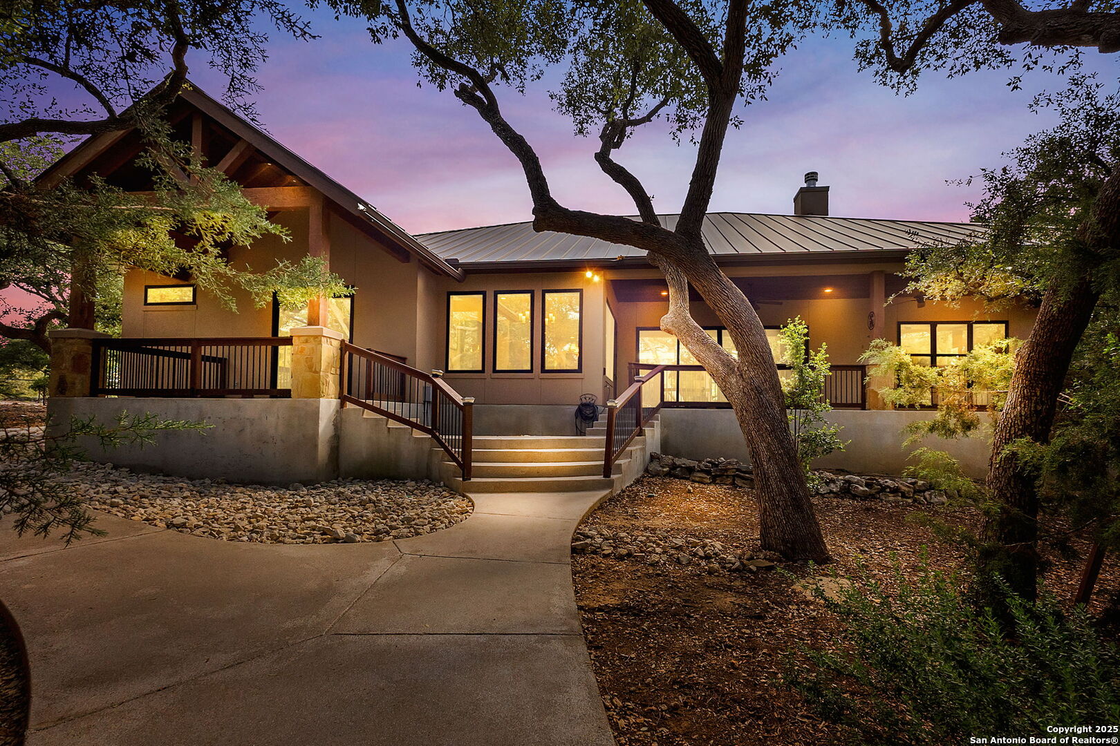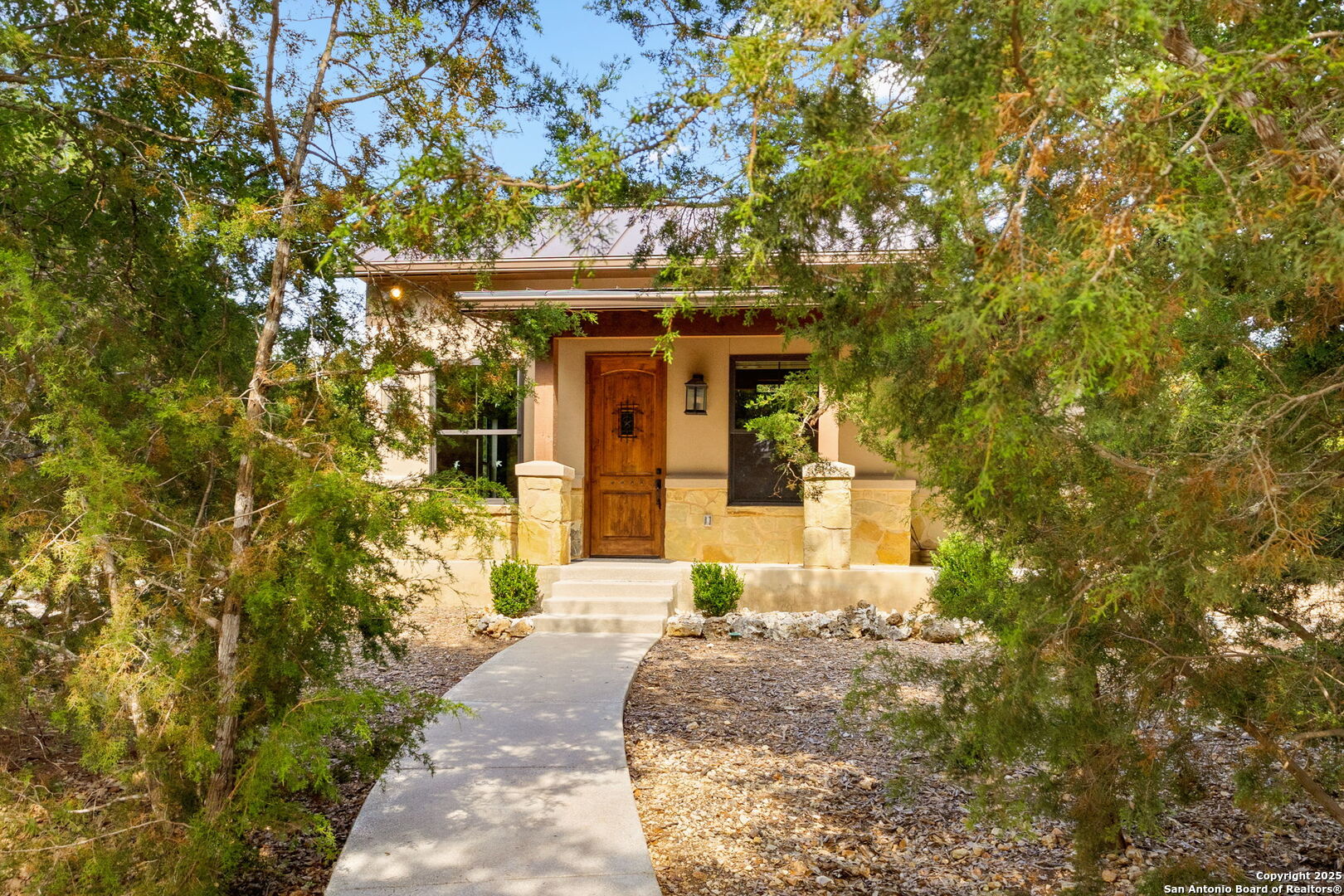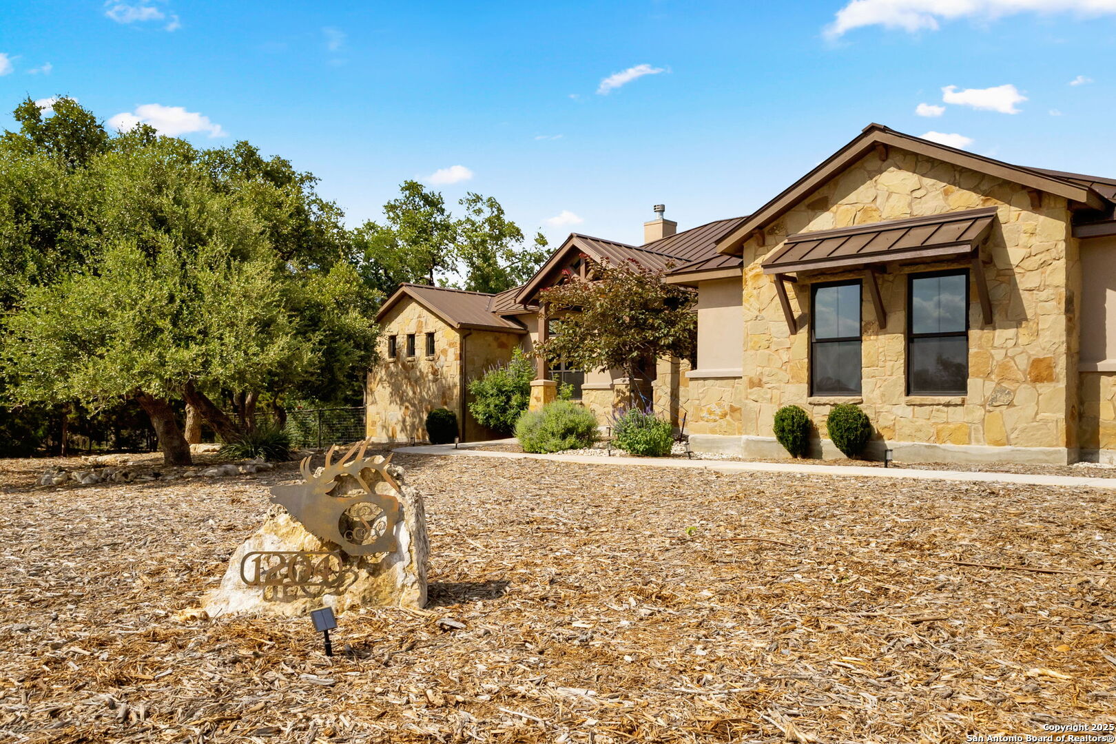 Poised on a breathtaking 2.28-acre estate rich with towering oaks and unmatched serenity, this luxury lodge-style residence is a rare opportunity in the coveted, resort-inspired community of Vintage Oaks. Designed and custom built by renowned luxury builder G. Morris, every detail of this home exudes timeless craftsmanship, natural beauty, and refined Hill Country elegance. The main residence spans 2,843 sq ft, with three spacious bedrooms, each offering its own en suite bathroom for ultimate comfort and privacy. Rich wood flooring flows throughout the home, complemented by solid wood doors, creating a warm, sophisticated ambiance. The heart of the home showcases lodge-inspired architecture with natural textures, expansive windows framing the wooded landscape, and seamless indoor-outdoor living. A stylish powder bath and an oversized 3-car garage complete the main home. Adding even more versatility and charm, the 600 sq ft guest house offers a private escape with a wood-burning stove, full bath, and walk-in closet-perfect for guests, extended family, or a home office retreat. Surrounded by nature and set far back from the road, this property offers a true sense of escape, where the sounds of the breeze and birdsong take the place of city noise. Yet, you'll still enjoy the world-class amenities of Vintage Oaks, including a resort-style pool complex, fitness center, lazy river, sports courts, miles of hiking trails, and more. 1204 Salt Lick Drive is more than a home-it's a luxurious and secluded sanctuary, where the natural beauty of the Texas Hill Country meets masterful craftsmanship and elevated living.