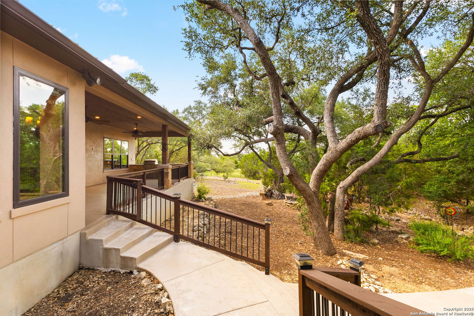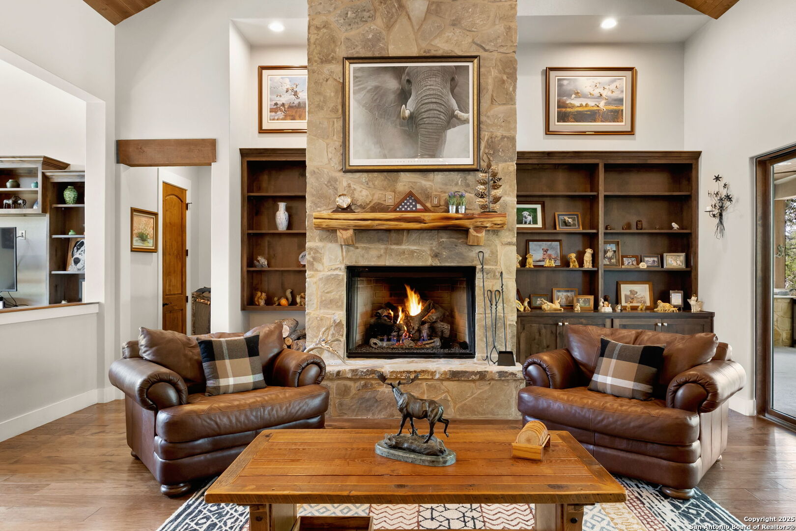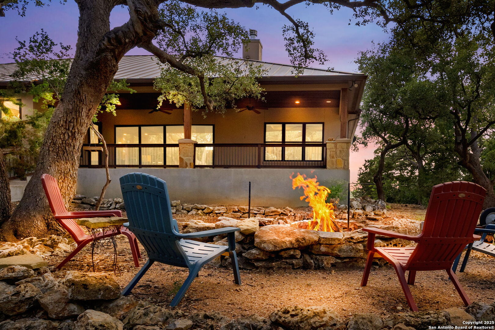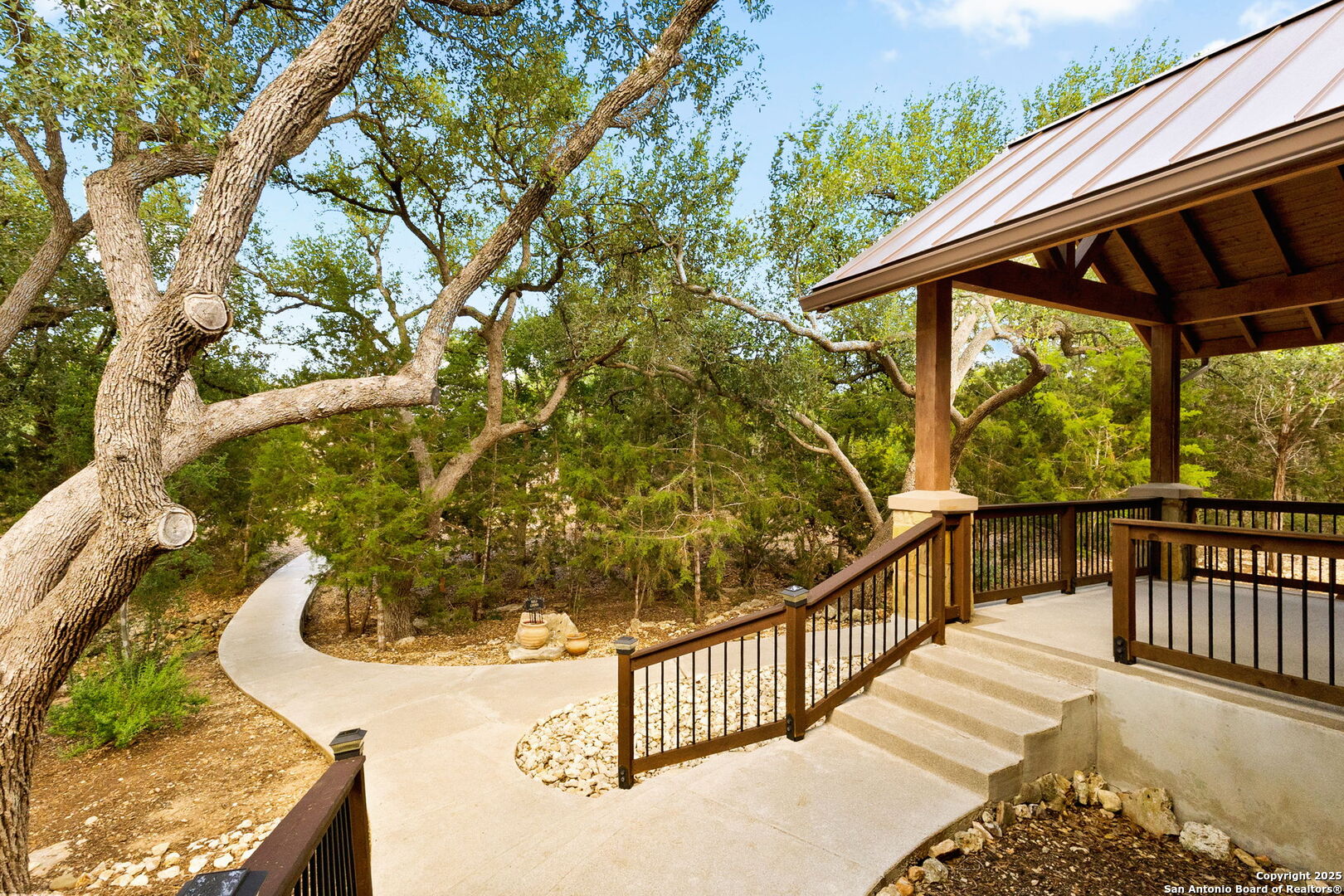 Poised on a breathtaking 2.28-acre estate rich with towering oaks and unmatched serenity, this luxury lodge-style residence is a rare opportunity in the coveted, resort-inspired community of Vintage Oaks. Designed and custom built by renowned luxury builder G. Morris, every detail of this home exudes timeless craftsmanship, natural beauty, and refined Hill Country elegance. The main residence spans 2,843 sq ft, with three spacious bedrooms, each offering its own en suite bathroom for ultimate comfort and privacy. Rich wood flooring flows throughout the home, complemented by solid wood doors, creating a warm, sophisticated ambiance. The heart of the home showcases lodge-inspired architecture with natural textures, expansive windows framing the wooded landscape, and seamless indoor-outdoor living. A stylish powder bath and an oversized 3-car garage complete the main home. Adding even more versatility and charm, the 600 sq ft guest house offers a private escape with a wood-burning stove, full bath, and walk-in closet-perfect for guests, extended family, or a home office retreat. Surrounded by nature and set far back from the road, this property offers a true sense of escape, where the sounds of the breeze and birdsong take the place of city noise. Yet, you'll still enjoy the world-class amenities of Vintage Oaks, including a resort-style pool complex, fitness center, lazy river, sports courts, miles of hiking trails, and more. 1204 Salt Lick Drive is more than a home-it's a luxurious and secluded sanctuary, where the natural beauty of the Texas Hill Country meets masterful craftsmanship and elevated living.