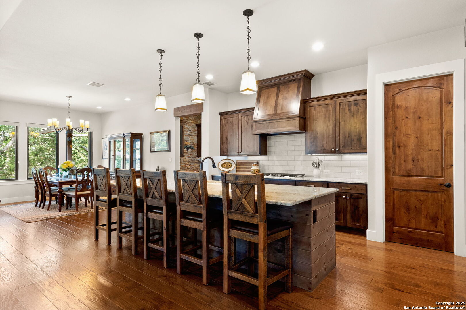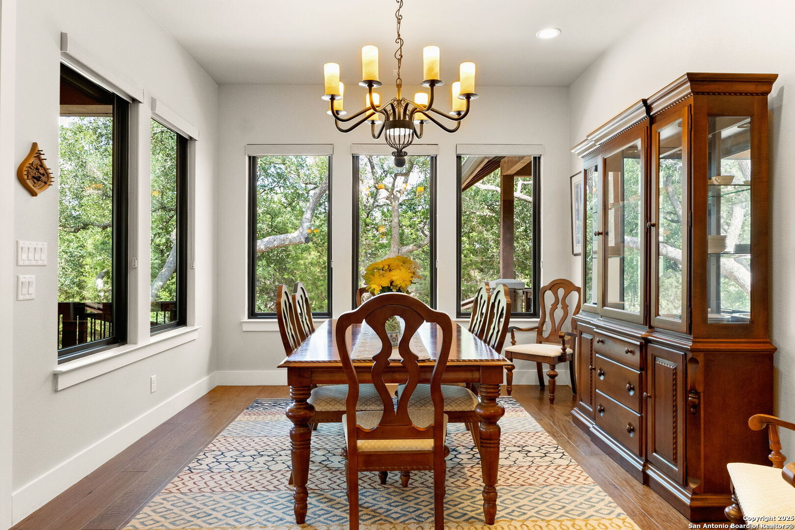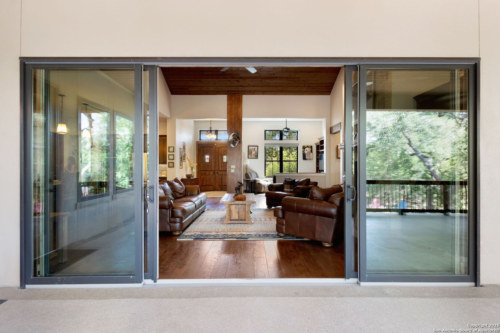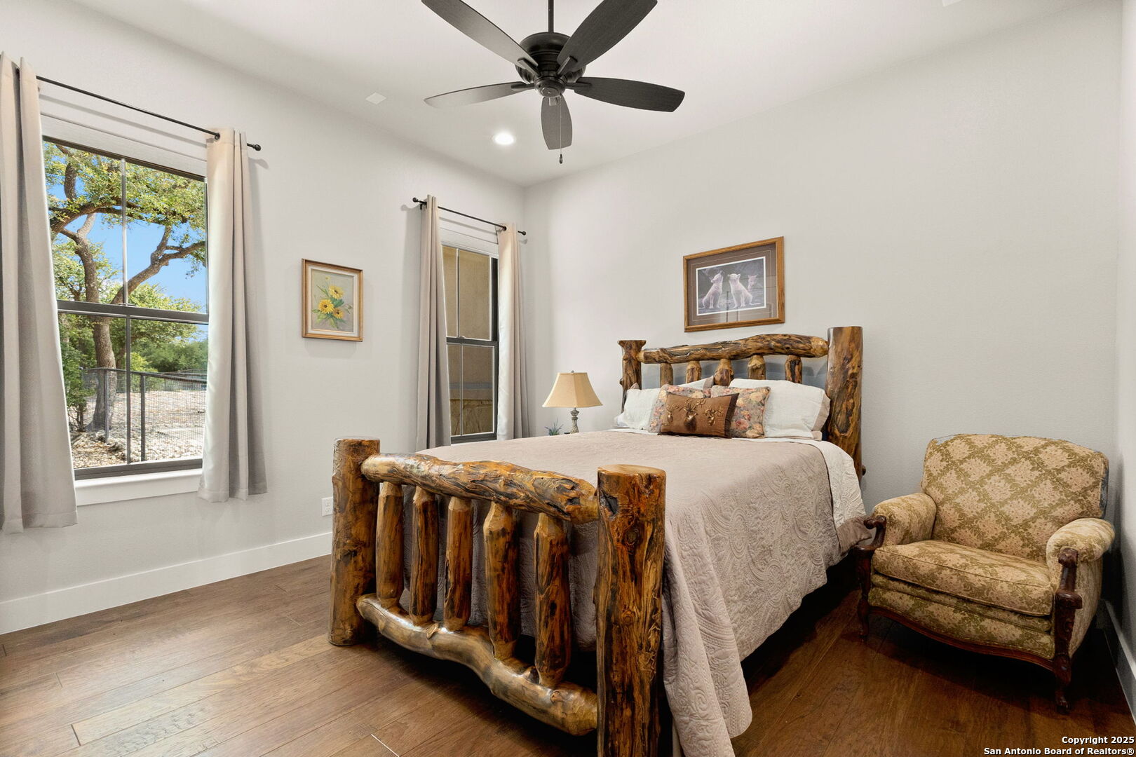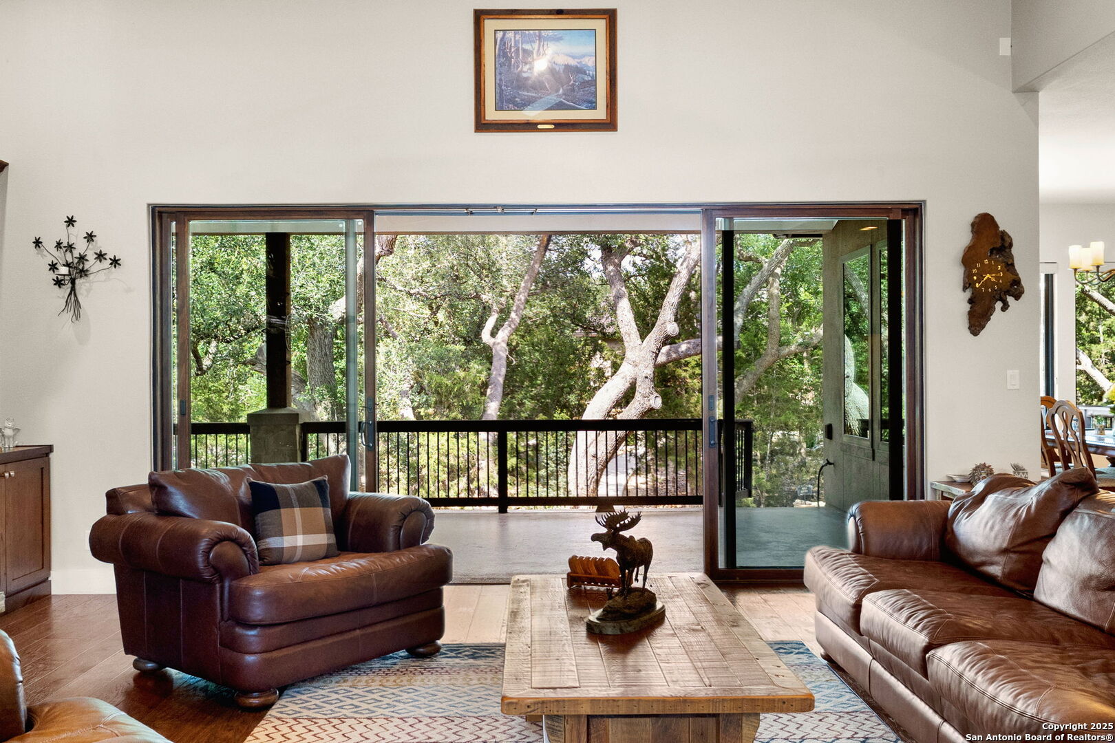 Poised on a breathtaking 2.28-acre estate rich with towering oaks and unmatched serenity, this luxury lodge-style residence is a rare opportunity in the coveted, resort-inspired community of Vintage Oaks. Designed and custom built by renowned luxury builder G. Morris, every detail of this home exudes timeless craftsmanship, natural beauty, and refined Hill Country elegance. The main residence spans 2,843 sq ft, with three spacious bedrooms, each offering its own en suite bathroom for ultimate comfort and privacy. Rich wood flooring flows throughout the home, complemented by solid wood doors, creating a warm, sophisticated ambiance. The heart of the home showcases lodge-inspired architecture with natural textures, expansive windows framing the wooded landscape, and seamless indoor-outdoor living. A stylish powder bath and an oversized 3-car garage complete the main home. Adding even more versatility and charm, the 600 sq ft guest house offers a private escape with a wood-burning stove, full bath, and walk-in closet-perfect for guests, extended family, or a home office retreat. Surrounded by nature and set far back from the road, this property offers a true sense of escape, where the sounds of the breeze and birdsong take the place of city noise. Yet, you'll still enjoy the world-class amenities of Vintage Oaks, including a resort-style pool complex, fitness center, lazy river, sports courts, miles of hiking trails, and more. 1204 Salt Lick Drive is more than a home-it's a luxurious and secluded sanctuary, where the natural beauty of the Texas Hill Country meets masterful craftsmanship and elevated living.