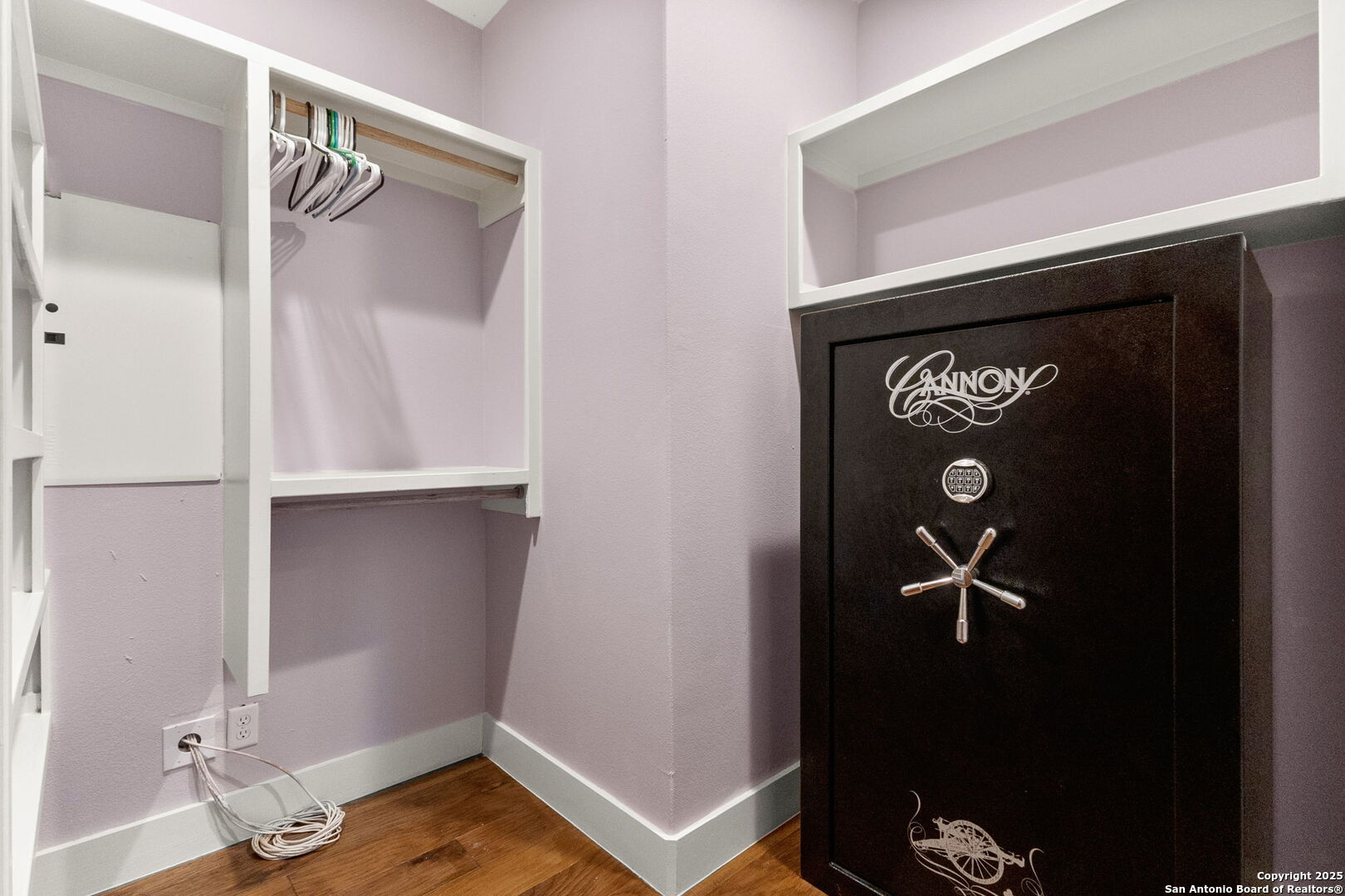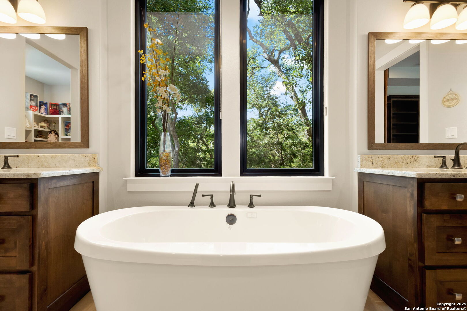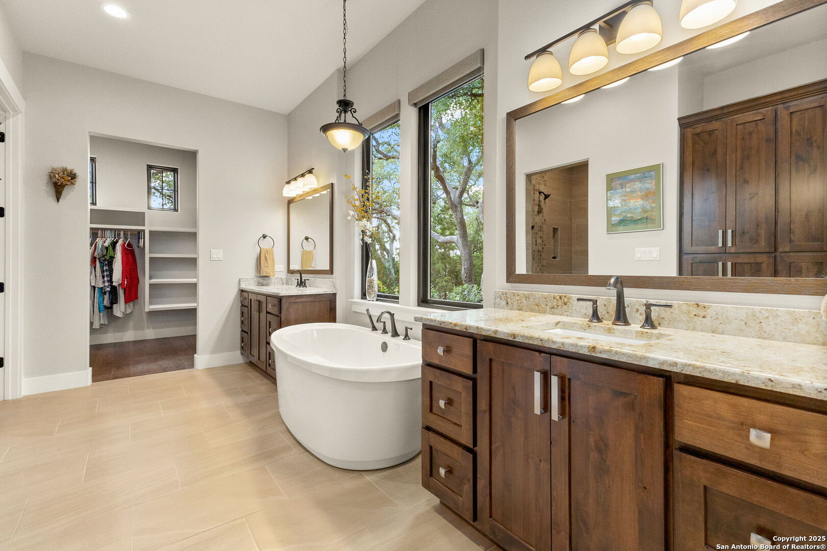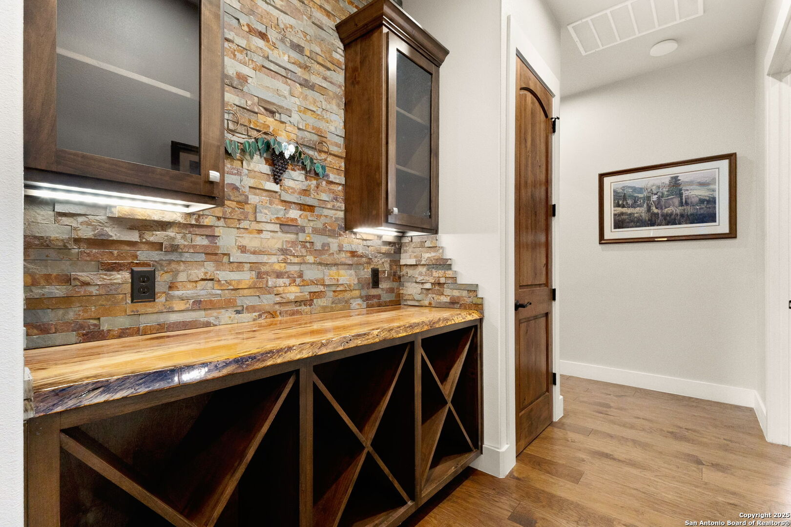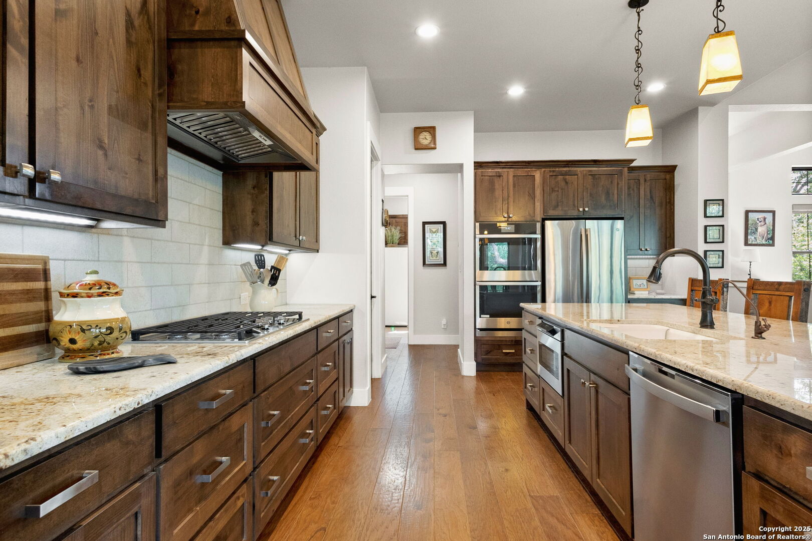Poised on a breathtaking 2.28-acre estate rich with towering oaks and unmatched serenity, this luxury lodge-style residence is a rare opportunity in the coveted, resort-inspired community of Vintage Oaks. Designed and custom built by renowned luxury builder G. Morris, every detail of this home exudes timeless craftsmanship, natural beauty, and refined Hill Country elegance. The main residence spans 2,843 sq ft, with three spacious bedrooms, each offering its own en suite bathroom for ultimate comfort and privacy. Rich wood flooring flows throughout the home, complemented by solid wood doors, creating a warm, sophisticated ambiance. The heart of the home showcases lodge-inspired architecture with natural textures, expansive windows framing the wooded landscape, and seamless indoor-outdoor living. A stylish powder bath and an oversized 3-car garage complete the main home. Adding even more versatility and charm, the 600 sq ft guest house offers a private escape with a wood-burning stove, full bath, and walk-in closet-perfect for guests, extended family, or a home office retreat. Surrounded by nature and set far back from the road, this property offers a true sense of escape, where the sounds of the breeze and birdsong take the place of city noise. Yet, you'll still enjoy the world-class amenities of Vintage Oaks, including a resort-style pool complex, fitness center, lazy river, sports courts, miles of hiking trails, and more. 1204 Salt Lick Drive is more than a home-it's a luxurious and secluded sanctuary, where the natural beauty of the Texas Hill Country meets masterful craftsmanship and elevated living.