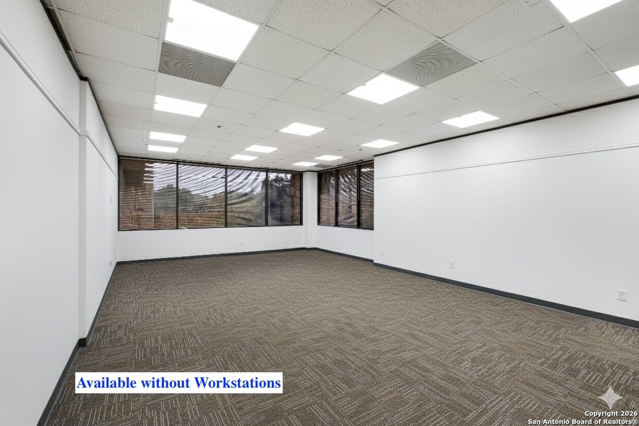Suite 241 is ready for immediate move-in. This suite offers 650 square feet. Fresh paint, professional carpet, and LED lights create the perfect environment for your team's ideal workspace. YOUR CHOICE of configuration: Move in turnkey-ready with modern workstations for up to 6 team members (included at no extra cost - saves you in furniture cost), OR we'll remove all workstations and give you 650SF of completely open space to design your ideal layout. This flexibility lets you configure your setup to work best, whether that's open collaboration, dedicated desks, or a hybrid layout. Your flat-rate monthly fee includes nightly professional cleaning (M-F), 24/7 building access with key fob, on-site management, all utilities with no triple-net charges, and plenty of parking, with assigned covered options available for $30/month. The building is conveniently located minutes from Wurzbach Parkway, San Antonio International Airport, Loop 410, US 281, and 1604, with a 15-20 minute drive to downtown. No surprise costs, just 650SF of flexible workspace ready for your team.
