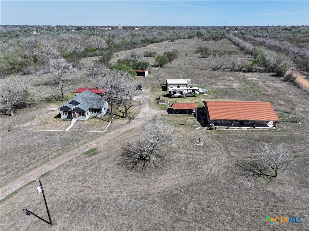 Discover the perfect blend of privacy, natural beauty, and versatility with this exceptional 10-acre riverfront property along the scenic San Antonio River. Ideally situated at the end of a paved county road, this peaceful retreat offers both seclusion and convenient access. The main residence, built in 2014, features approximately 1,830 square feet with 3 bedrooms and 2 bathrooms. The open-concept living, dining, and kitchen areas create an inviting space for everyday living and entertaining, with the kitchen island serving as a central gathering spot. Additional highlights include a spacious laundry room, front and back covered porches, and a detached two-car carport. The property is under a wildlife exemption, offering potential tax benefits. Native wildlife includes deer, turkey, hogs, native birds, and seasonal hummingbirds. With direct access to the San Antonio River, enjoy excellent fishing and outdoor recreation. A beautifully remodeled guest house offers approximately 1,568 square feet with 2 bedrooms and 2 bathrooms. Renovated in 2023, it is move-in ready and ideal for guests, extended family, or potential rental income, complete with its own detached two-car carport. Additional improvements include a 25' x 25' shop with a roll-up door and walk-through door, along with a tractor shed for added functionality. Located within approximately three miles of La BahÃa Presidio and the Spanish missions in Goliad, this property offers a unique blend of history, comfort, and riverfront living.