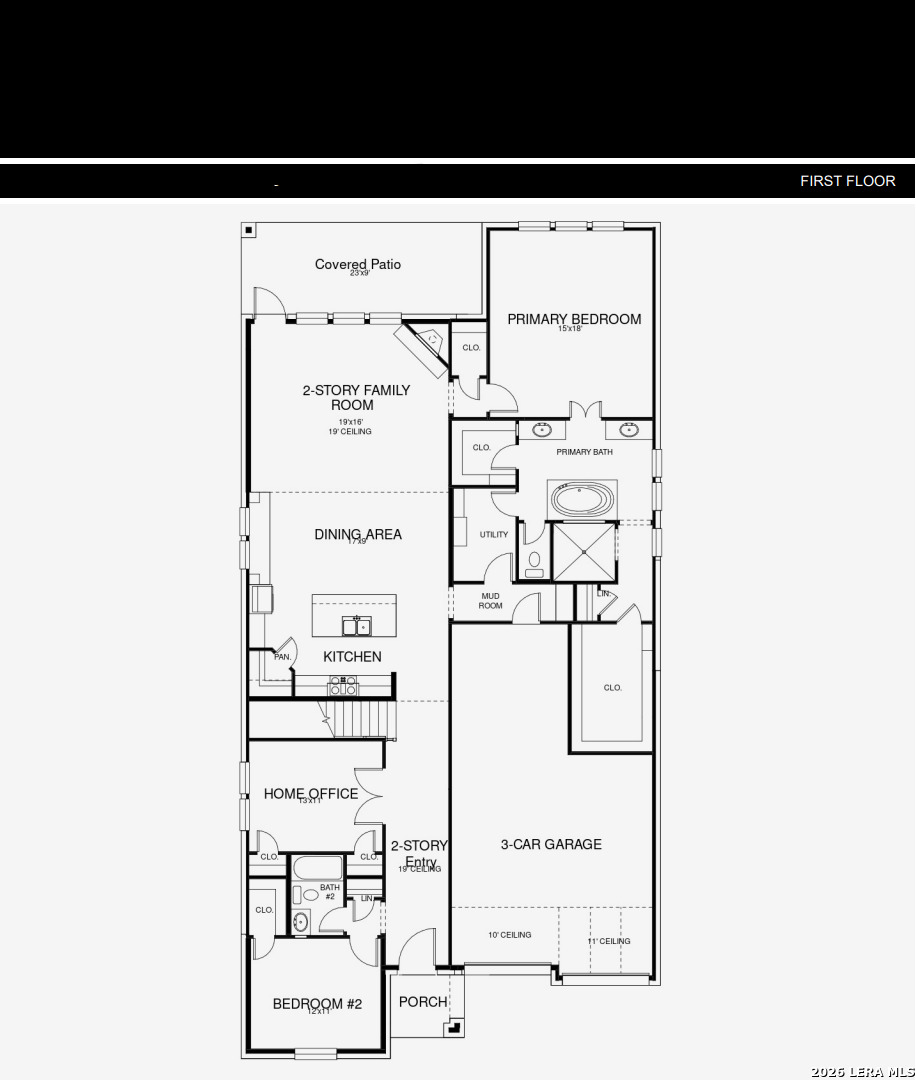 Two-story entry with 19-foot ceilings. Home office with French doors just off the entry. Two-story family room with 19-foot ceilings features a grand wall of windows. Island kitchen with built-in seating space, a 5-burner gas cooktop, and a walk-in pantry and flows into the dining area. Secluded primary suite with a wall of windows. Primary bathroom features French doors, dual vanities, a freestanding tub, separate glass enclosed shower, linen closet and generous walk-in closet. An additional bedroom downstairs with walk-in closet. Second level hosts a large game room and media room, secondary bedrooms with walk-in closets and a Hollywood bathroom. Utility room offers a private access to the primary suite. Covered backyard patio. Mud room just off the three-car garage.