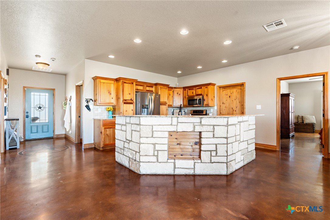 OFFERING ASSUMABLE RATE 2.75%!!!! Looking for a Quiet and Peaceful place to call Home? Then you will love this Beauty resting on 10.5 +/- acres. Featuring a spacious living room with a fireplace that is perfect for entertaining and movie nights, patio access, an inviting formal dining room, a second living area or game room, raised ceilings, wood stained trim and baseboards. For energy efficiency the home is foam insulated. The open kitchen offers plenty of counter and cabinet space, pantry, eat at bar. The primary suite boasts raised ceiling, large walk-in closet, oversized tile walk-in shower and dual vanities. You will find 2 other bright and cheery bedrooms as well as a full bathroom. Once outside you will find a detached 2 car carport, a covered back patio, metal building, a separate shed and a 3-stall barn with tack room. This property has much to offer by way of privacy as well as within the Troy ISD school district.