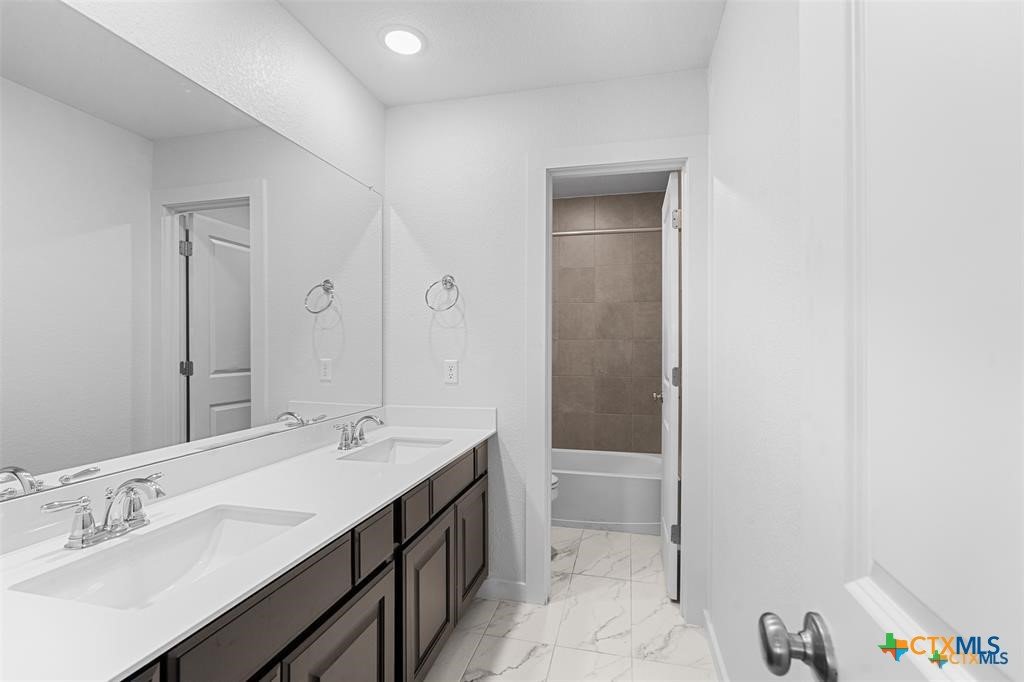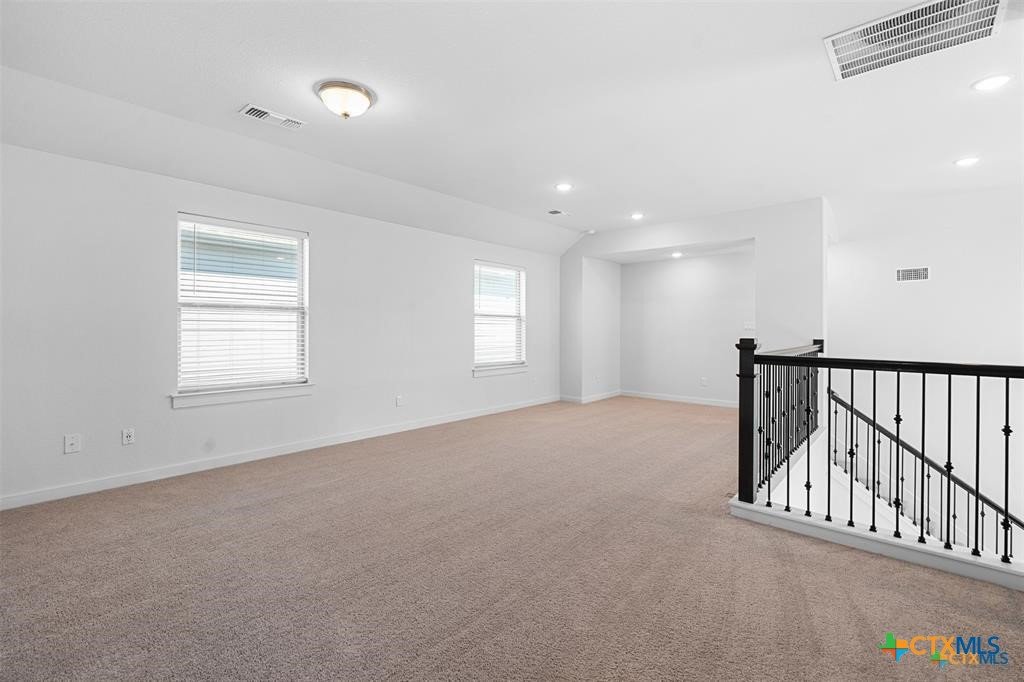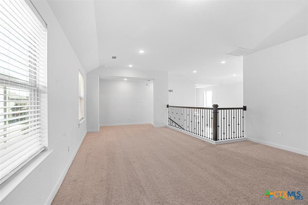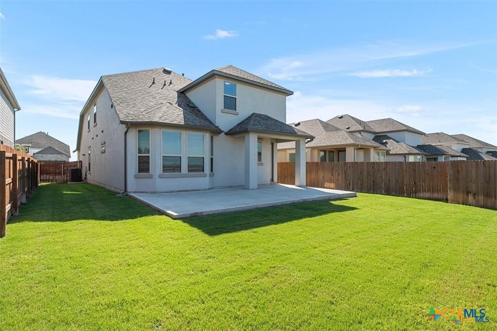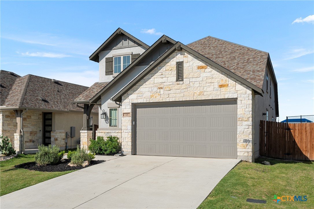 Located in desirable Santa Rita Ranch, this home features soaring open-to-below ceilings that create an airy, grand living space. Open-concept living flows seamlessly to the extended patio, your canvas for backyard entertaining. The main-floor primary suite offers convenience, while the spacious upstairs loft is perfect for a game room, media space, or guest retreat. Enjoy the expansive backyard with partial patio cover and no rear neighbors for added privacy. Santa Rita Ranch offers award-winning amenities including resort pools, fitness center, pickleball courts, and hundreds of acres of trails and parks. Washer, dryer, and refrigerator convey.