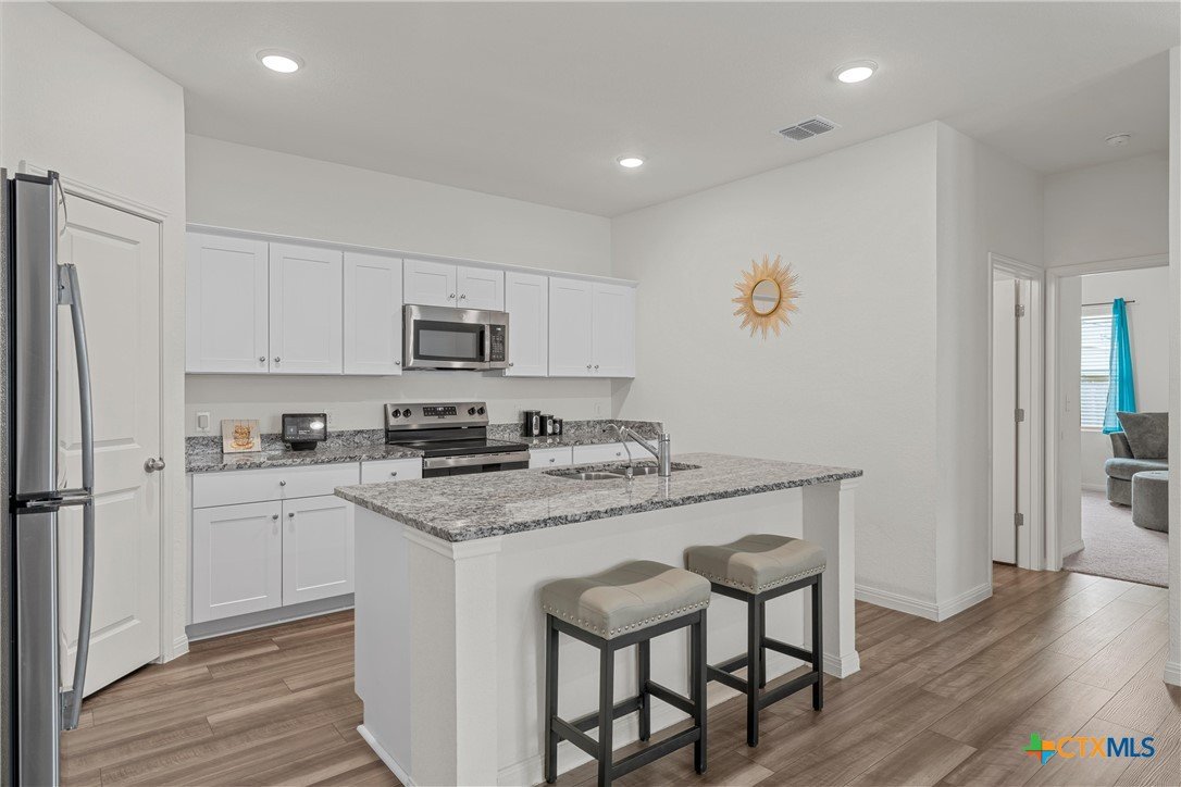 3.5% ASSUMABLE FHA INTEREST RATE AVAILABLE FOR QUALIFIED BUYERS Space, flexibility, and intentional living come together in this thoughtfully designed home located in the Eastwood at Sonterra community in Jarrell. The layout creates a natural flow between the living, dining, and kitchen areas, making it easy to stay connected whether you are hosting, unwinding, or moving through your daily routine. The kitchen is designed to be both functional and inviting, offering a space where meals, conversations, and everyday moments come together seamlessly. A secondary bedroom and full bathroom on the main level provide the flexibility many buyers are looking for, whether for guests, extended family, or a private workspace. Upstairs, the primary suite offers a comfortable retreat, complete with a spacious walk-in closet designed to accommodate everything you need without compromise. Additional bedrooms and a versatile loft provide room to create a second living area, media space, or work-from-home setup that fits your lifestyle. Step outside to a private backyard that offers the opportunity to relax, entertain, and enjoy the slower pace of this growing community. Life in Eastwood at Sonterra offers more than just a home. Residents enjoy access to a community pool, clubhouse, walking trails, playground, and basketball court, with additional amenities planned. The neighborhood is conveniently located near local schools and provides easy access to Georgetown, Round Rock, Temple, and Waco. With proximity to Fort Hood, Baylor Scott and White Medical Center, and nearby outdoor destinations like Lake Georgetown, Belton Lake, and Blue Hole Park, this location supports a variety of lifestyles from daily commuting to weekend recreation. This home also presents a unique financial opportunity with an assumable FHA loan for qualified buyers.