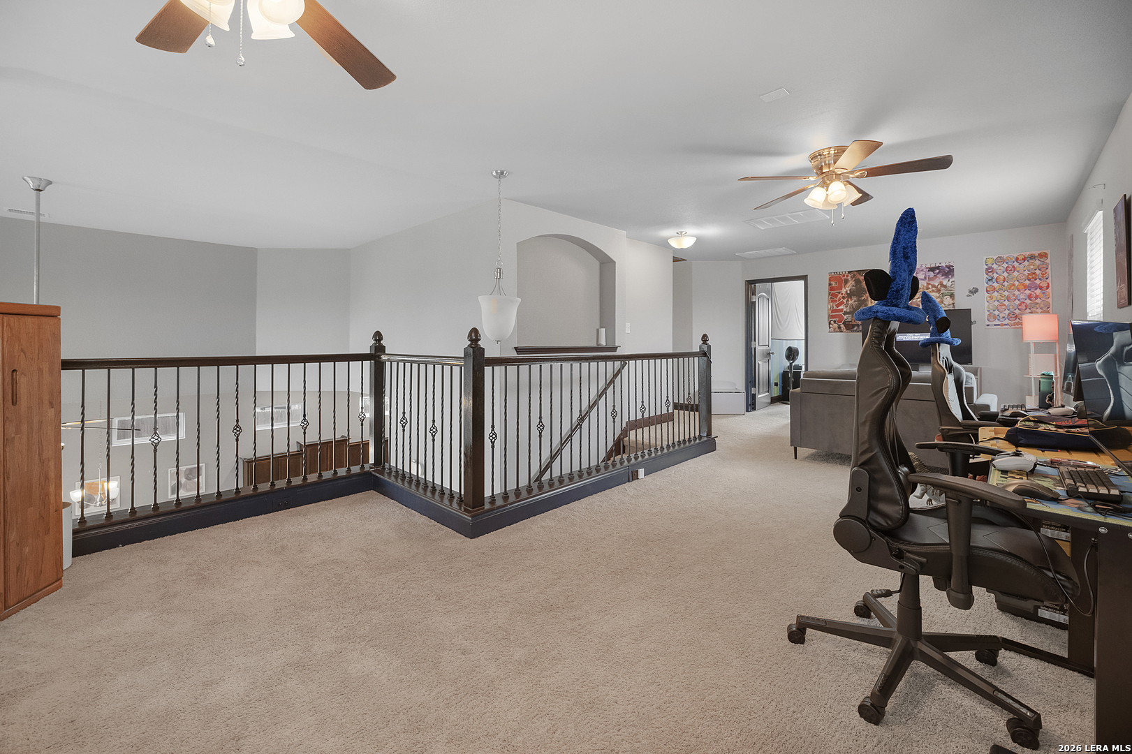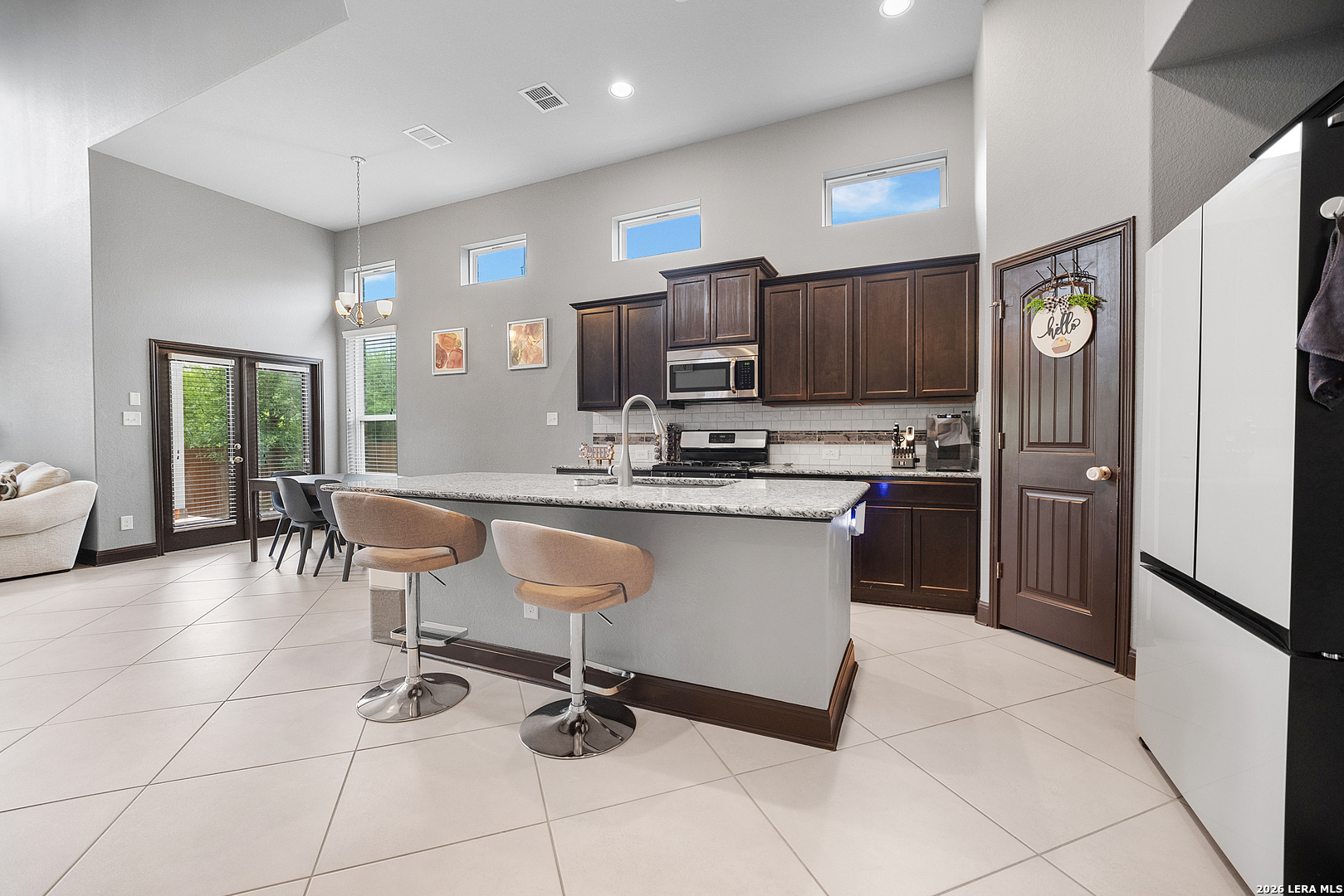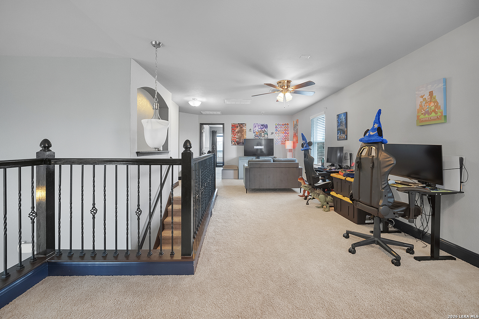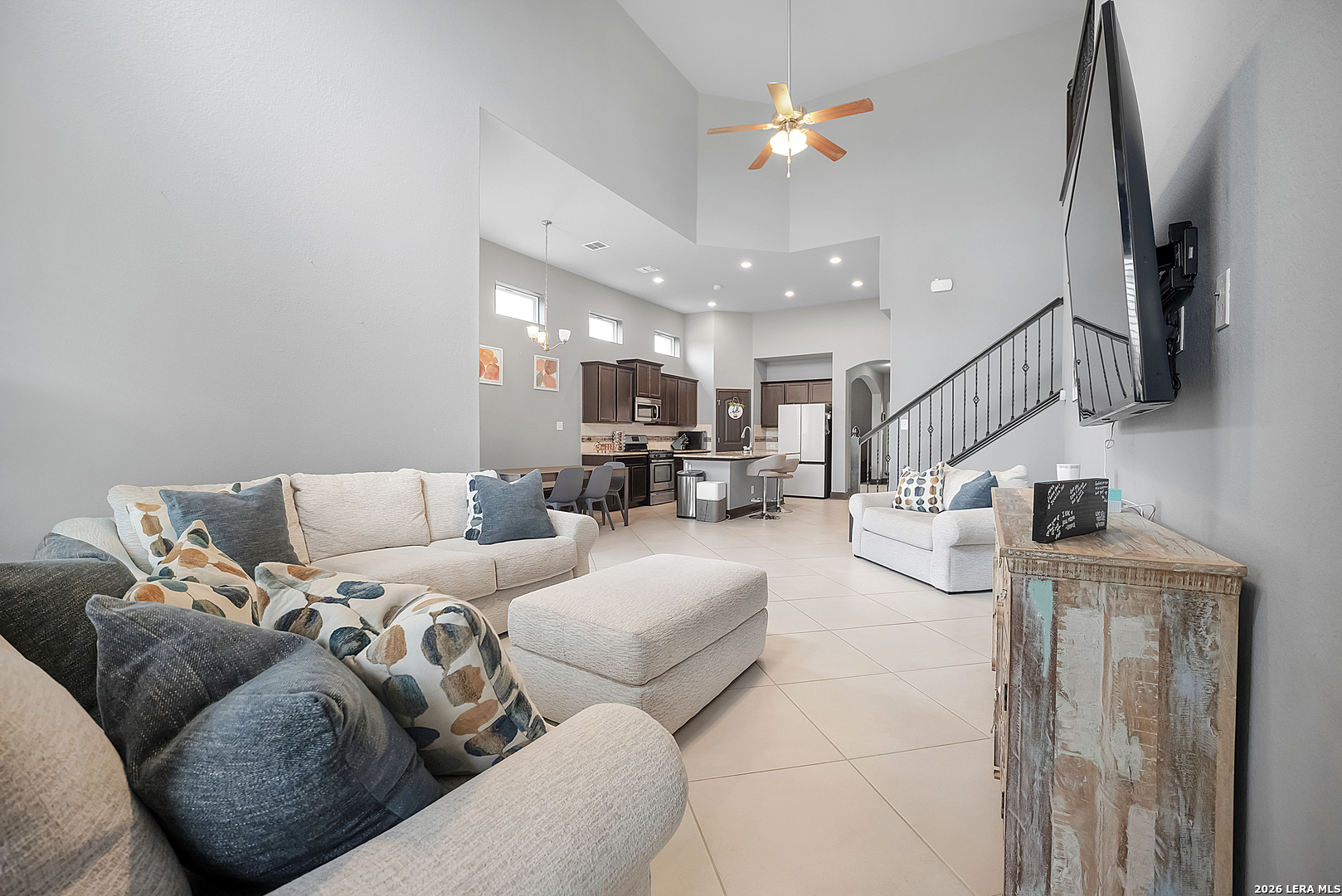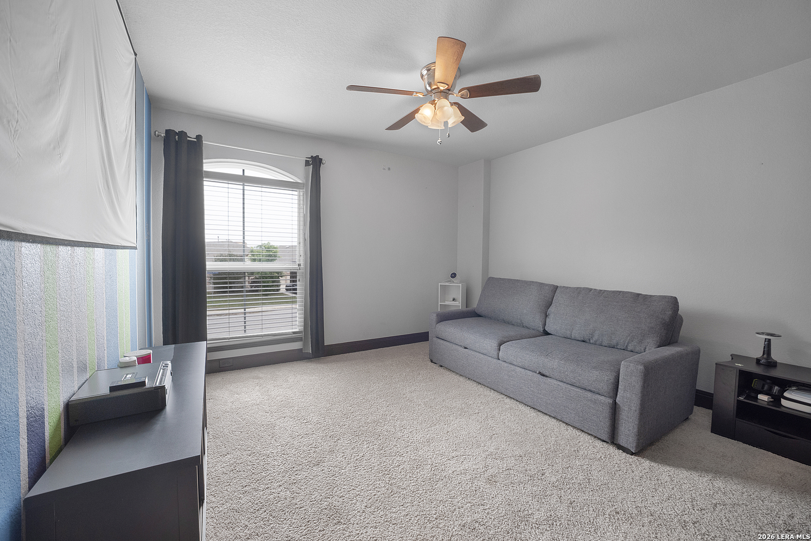 Welcome home to this pristine 4 bedroom, 2.5 bath home situated on an oversized lot backing to a GREENBELT for added privacy. This exceptionally maintained open-concept floor plan offers light-filled living spaces with abundant windows throughout. The chef's kitchen features stainless steel appliances, gas cooking, granite countertops, a walk-in pantry, and a large island ideal for cooking and entertaining. The spacious primary suite is conveniently located on the main level and includes an ensuite bath with dual vanities, walk-in shower, and separate garden tub. Upstairs offers an oversized game room/loft plus 3 additional bedrooms with ceiling fans and generous closet space. Step outside to your private backyard oasis complete with a covered patio and playset. Conveniently located within walking distance to the elementary school. This one is a must see!