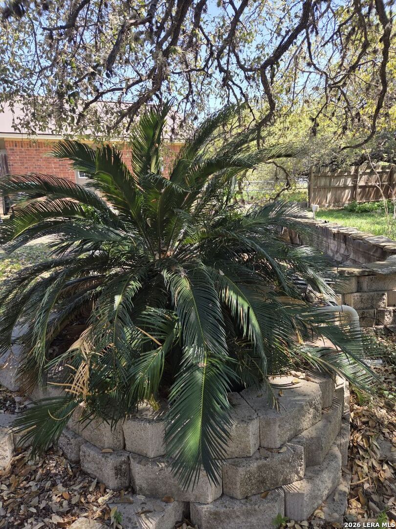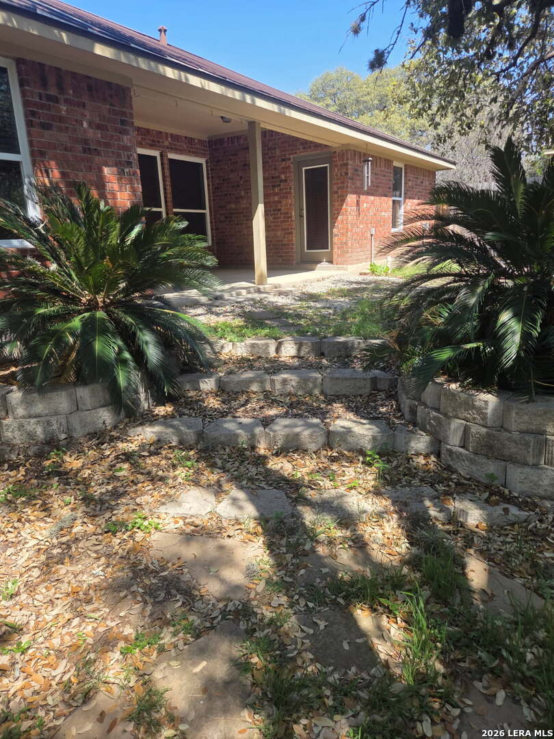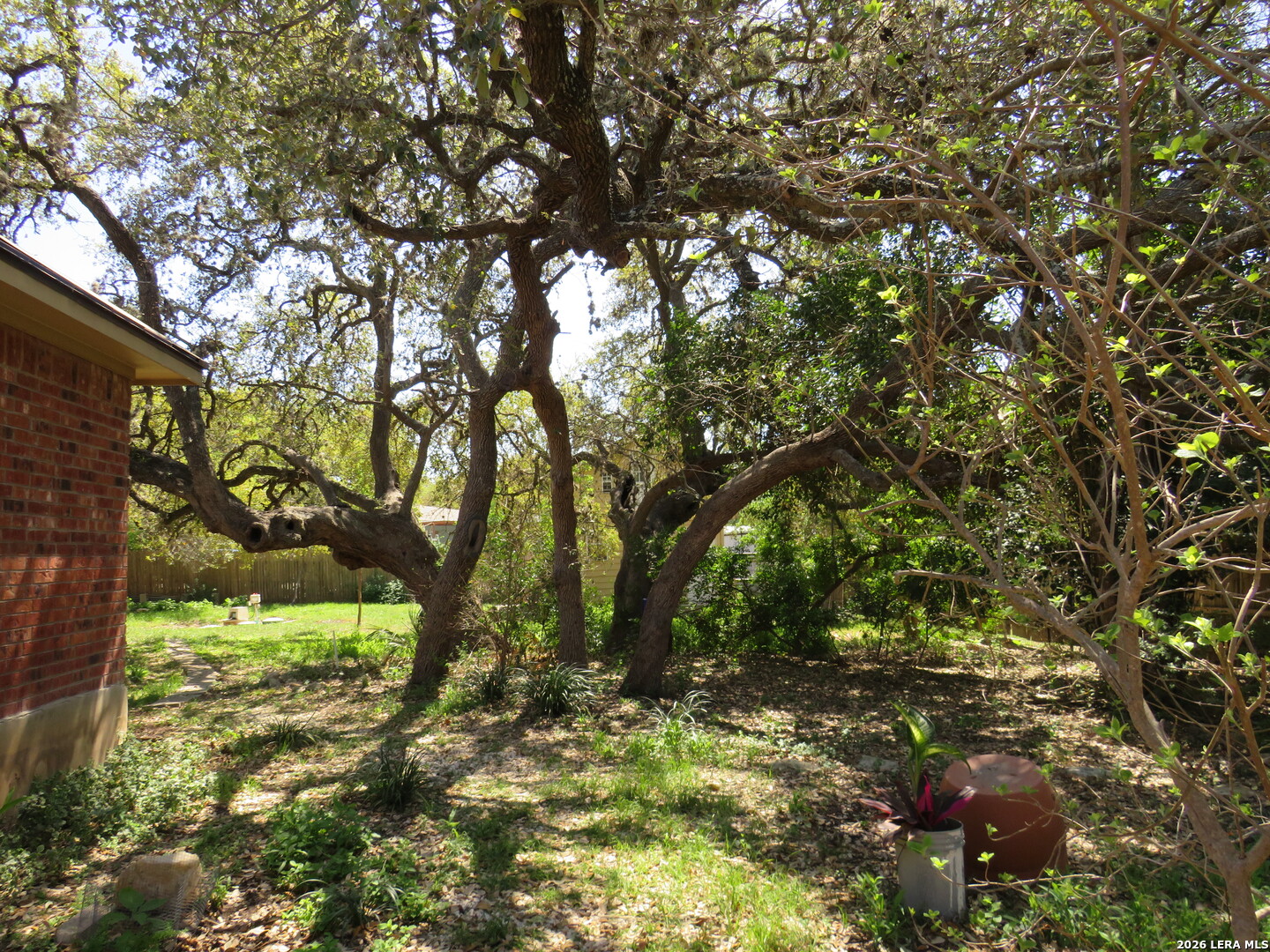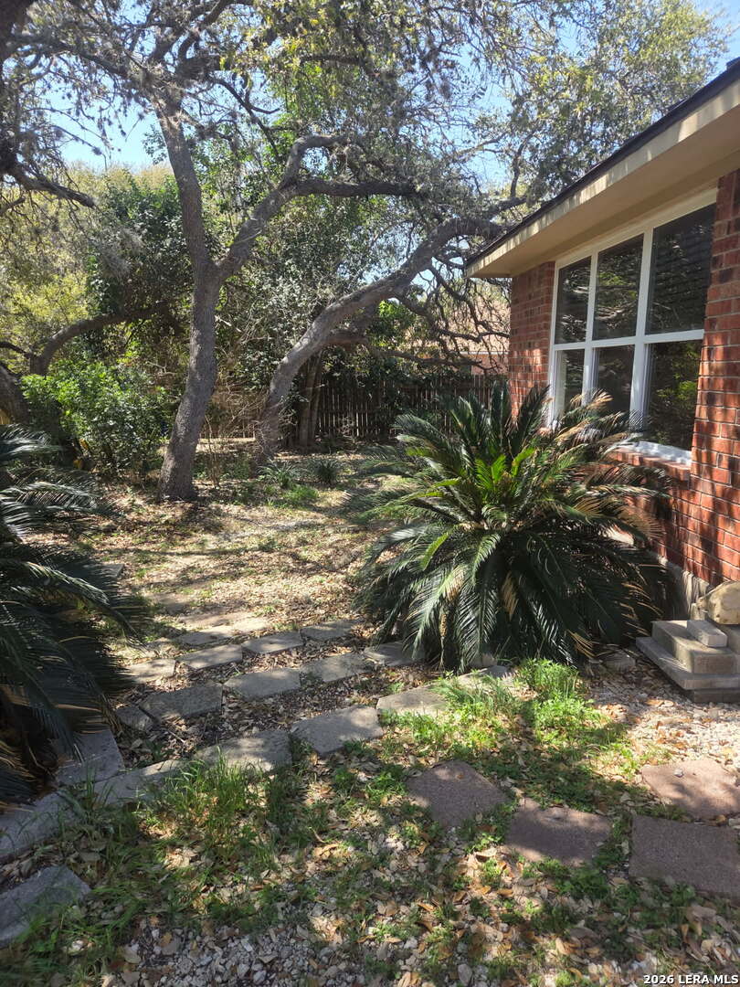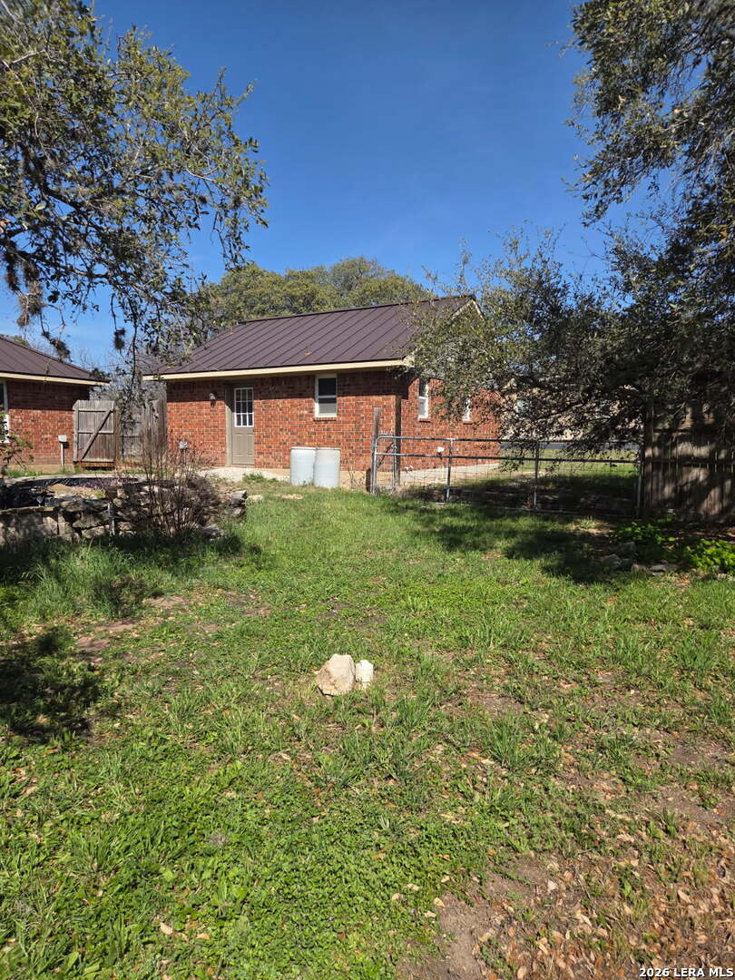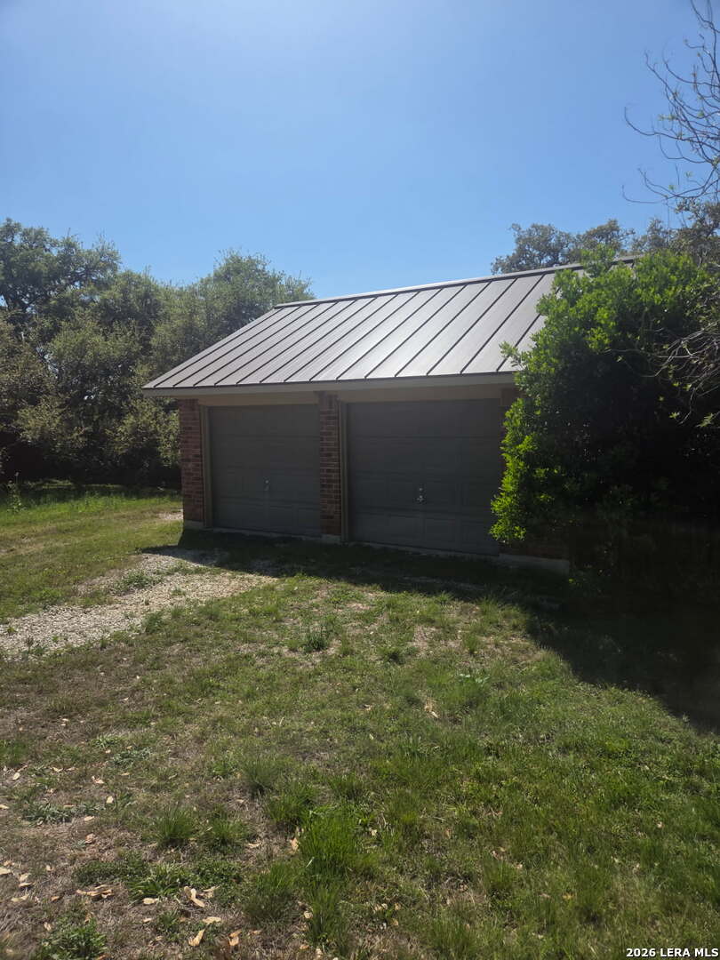 This charming and stylish single-story home is truly your own slice of paradise! This beautiful home offers an all-brick exterior with a metal roof. You'll love the open floor plan featuring high ceilings and large, light-filled windows. The spacious family room flows easily into the bright, eat-in kitchen with granite countertops, and center island, (refrigerator is negotiable). The adjoining dining room is roomy and already plumbed for a wet bar-perfect for entertaining. The primary suite offers peaceful backyard views, high ceilings, and a spa-like ensuite bath with an oversized walk-in shower, double vanity, and generous walk-in closet. The secondary bedroom also boasts an oversized walk-in closet. The large laundry room includes a utility sink and storage area (washer and dryer are negotiable). Step outside to an oversized covered patio ideal for outdoor gatherings and relaxation. This stunning .51-acre property is adorned with ancient live oaks, pear trees, and mountain laurels-and even includes a pond just waiting to be restored to its full potential. The detached two-car garage is plumbed for both a bathroom and a water heater, offering endless possibilities for conversion or expansion. Plus, the impressive two-story outbuilding with electricity features a three-run chicken coop on the lower level and an unfinished storage space above. Conveniently located near shopping, dining, and entertainment, this beautiful property is filled with potential-and is truly a must-see!