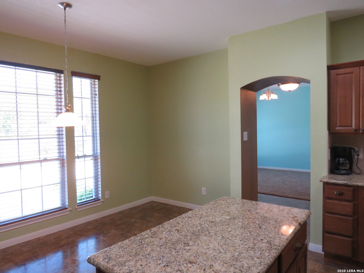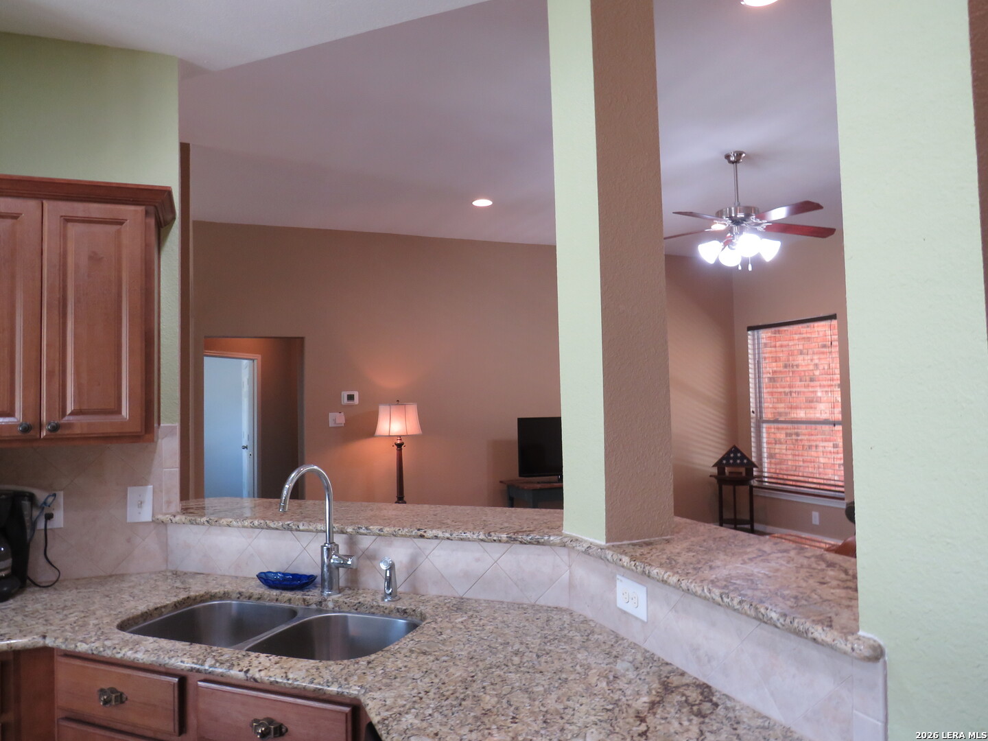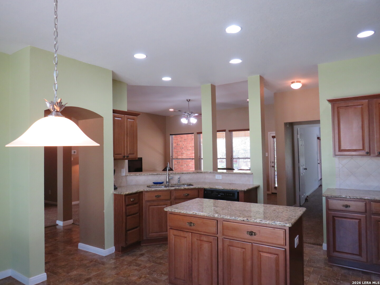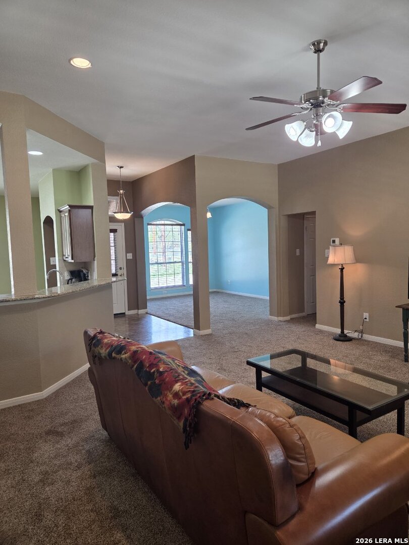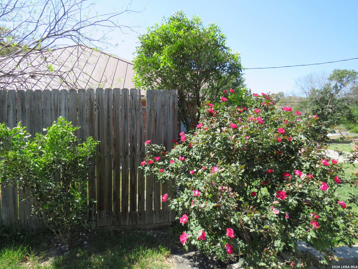This charming and stylish single-story home is truly your own slice of paradise! This beautiful home offers an all-brick exterior with a metal roof. You'll love the open floor plan featuring high ceilings and large, light-filled windows. The spacious family room flows easily into the bright, eat-in kitchen with granite countertops, and center island, (refrigerator is negotiable). The adjoining dining room is roomy and already plumbed for a wet bar-perfect for entertaining. The primary suite offers peaceful backyard views, high ceilings, and a spa-like ensuite bath with an oversized walk-in shower, double vanity, and generous walk-in closet. The secondary bedroom also boasts an oversized walk-in closet. The large laundry room includes a utility sink and storage area (washer and dryer are negotiable). Step outside to an oversized covered patio ideal for outdoor gatherings and relaxation. This stunning .51-acre property is adorned with ancient live oaks, pear trees, and mountain laurels-and even includes a pond just waiting to be restored to its full potential. The detached two-car garage is plumbed for both a bathroom and a water heater, offering endless possibilities for conversion or expansion. Plus, the impressive two-story outbuilding with electricity features a three-run chicken coop on the lower level and an unfinished storage space above. Conveniently located near shopping, dining, and entertainment, this beautiful property is filled with potential-and is truly a must-see!