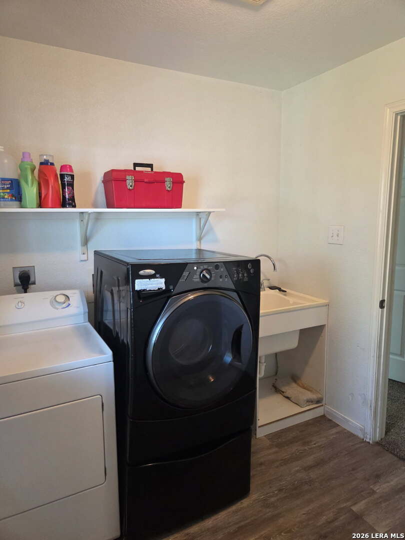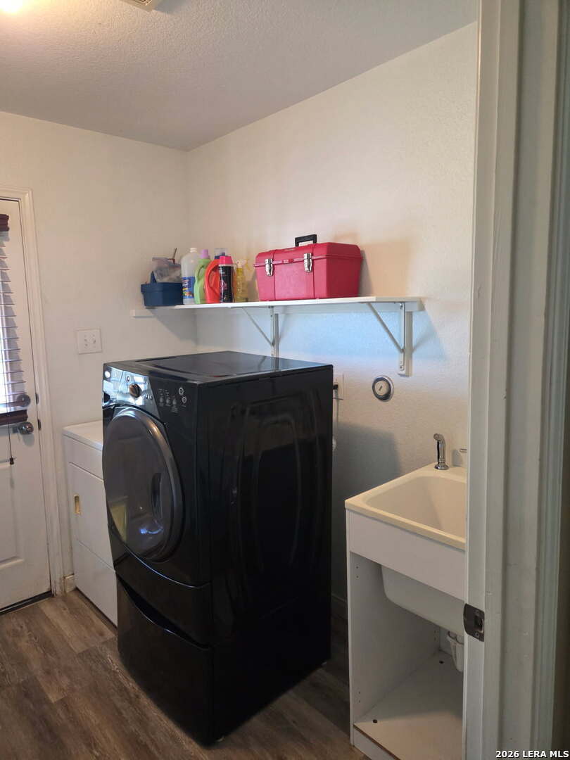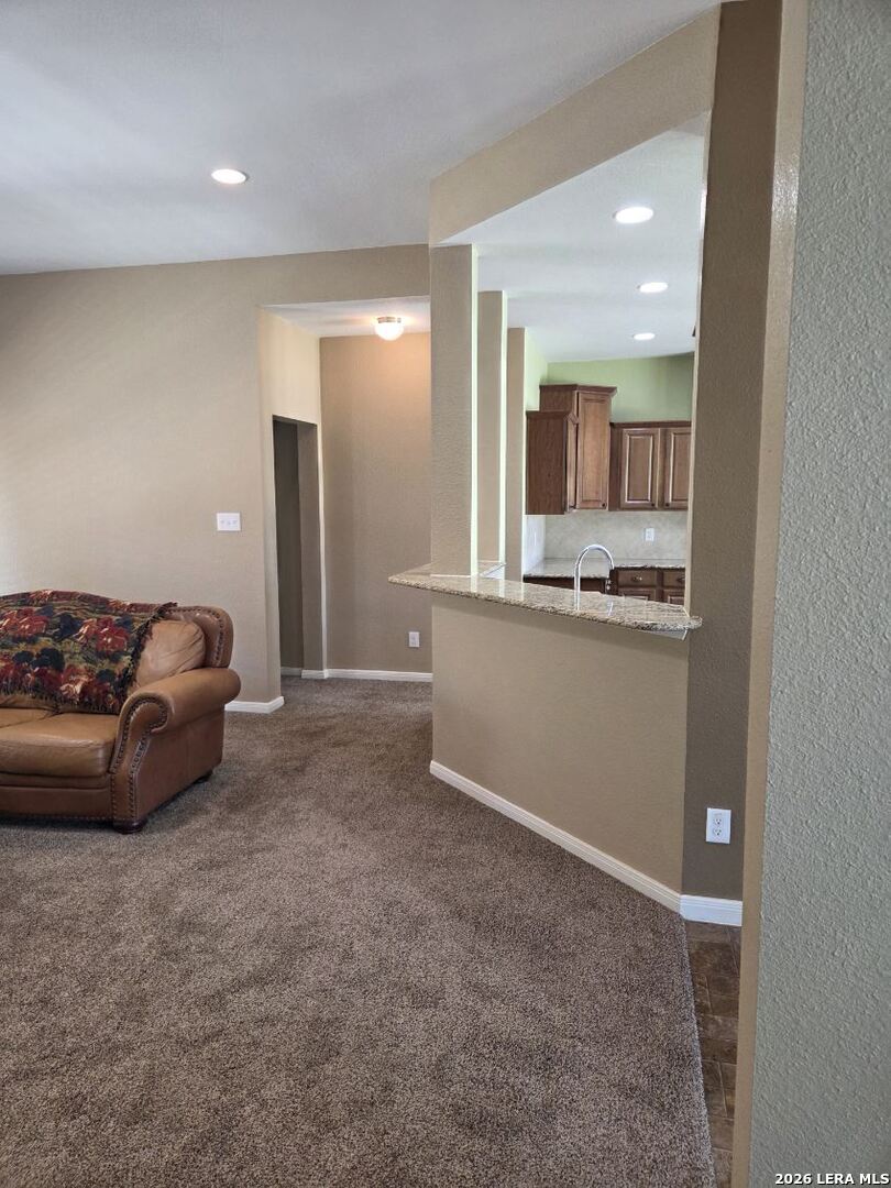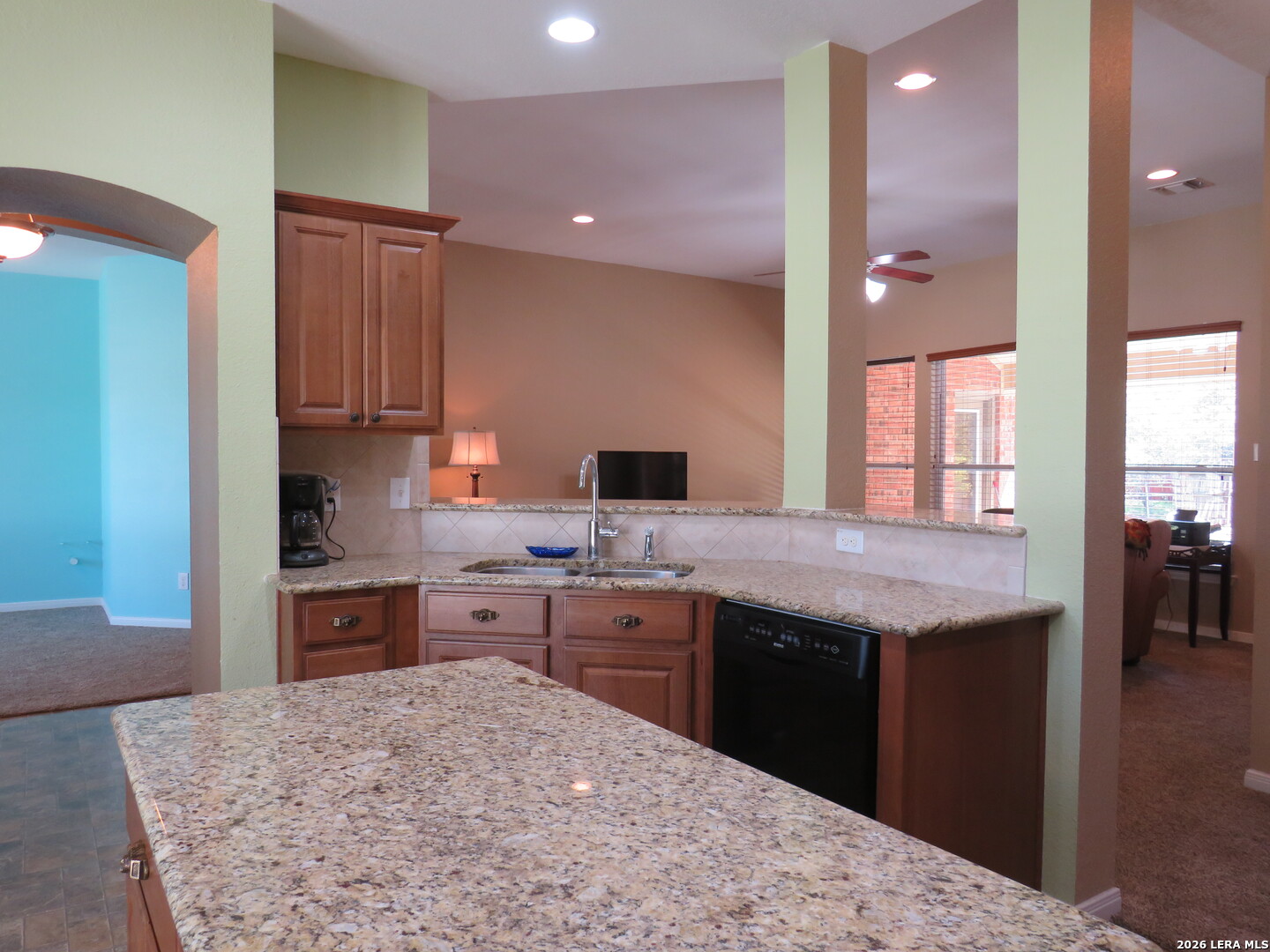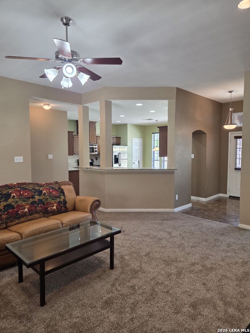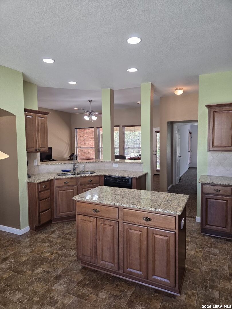 This charming and stylish single-story home is truly your own slice of paradise! This beautiful home offers an all-brick exterior with a metal roof. You'll love the open floor plan featuring high ceilings and large, light-filled windows. The spacious family room flows easily into the bright, eat-in kitchen with granite countertops, and center island, (refrigerator is negotiable). The adjoining dining room is roomy and already plumbed for a wet bar-perfect for entertaining. The primary suite offers peaceful backyard views, high ceilings, and a spa-like ensuite bath with an oversized walk-in shower, double vanity, and generous walk-in closet. The secondary bedroom also boasts an oversized walk-in closet. The large laundry room includes a utility sink and storage area (washer and dryer are negotiable). Step outside to an oversized covered patio ideal for outdoor gatherings and relaxation. This stunning .51-acre property is adorned with ancient live oaks, pear trees, and mountain laurels-and even includes a pond just waiting to be restored to its full potential. The detached two-car garage is plumbed for both a bathroom and a water heater, offering endless possibilities for conversion or expansion. Plus, the impressive two-story outbuilding with electricity features a three-run chicken coop on the lower level and an unfinished storage space above. Conveniently located near shopping, dining, and entertainment, this beautiful property is filled with potential-and is truly a must-see!