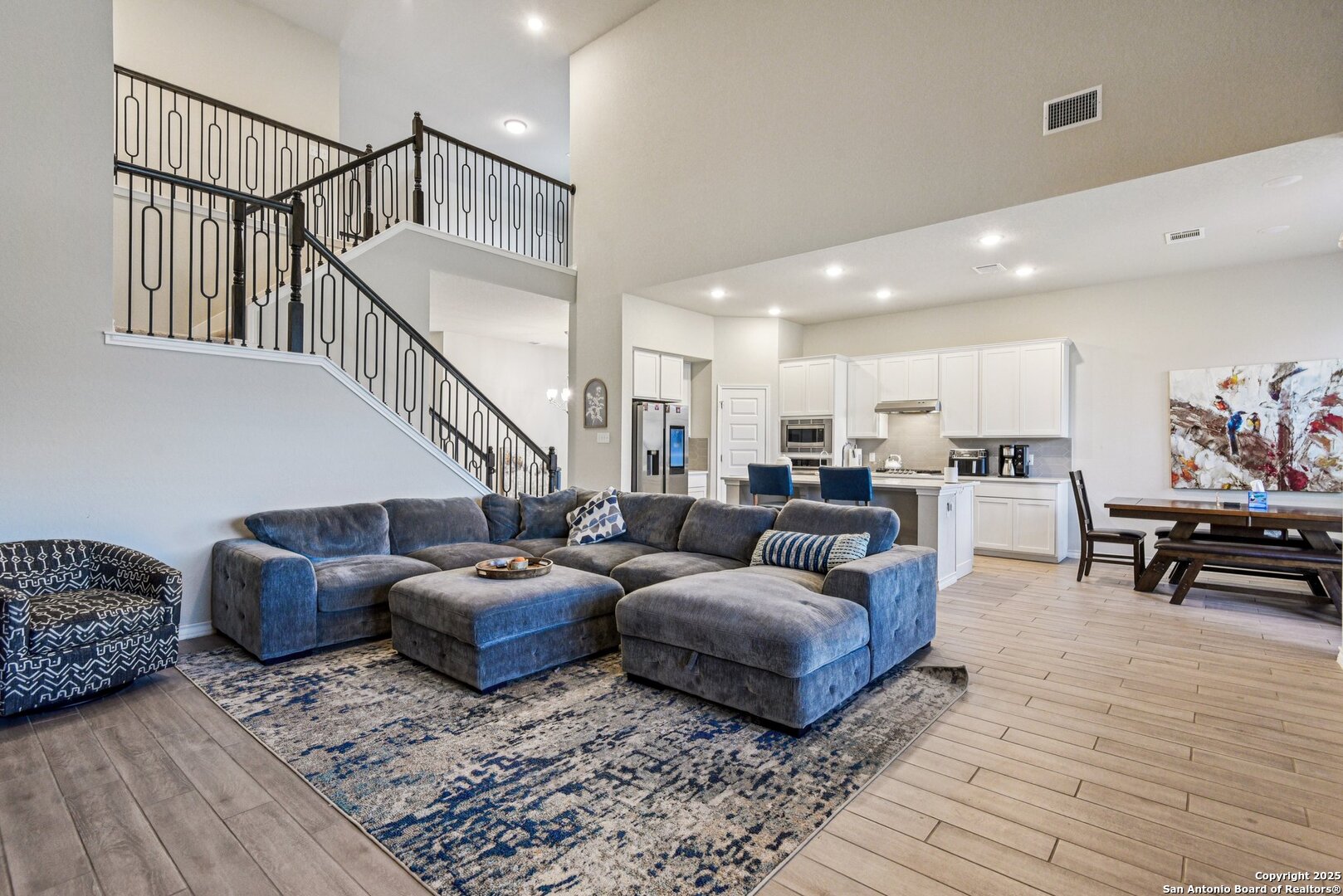 Welcome to this spacious and elegant 2-story home featuring 5 bedrooms, 4 full bathrooms, and soaring high ceilings that create an open and airy atmosphere throughout. Perfect for families of all sizes, this home offers plenty of room to live, work, and entertain in style. Step inside to discover a thoughtful layout with generously sized bedrooms, multiple living areas, and abundant natural light. The high ceilings add a touch of grandeur, making every room feel bright and expansive. The main level includes a guest suite and a designated office space, while the upper level provides privacy and comfort for the rest of the family. Located in a quiet, established neighborhood, this home offers a serene escape while still being close to local schools, parks, and amenities. Whether you're relaxing in the spacious living room, enjoying a meal in the formal dining area, or hosting friends and family, this home is designed for comfortable everyday living and memorable gatherings. Don't miss the opportunity to make this beautiful home your own!