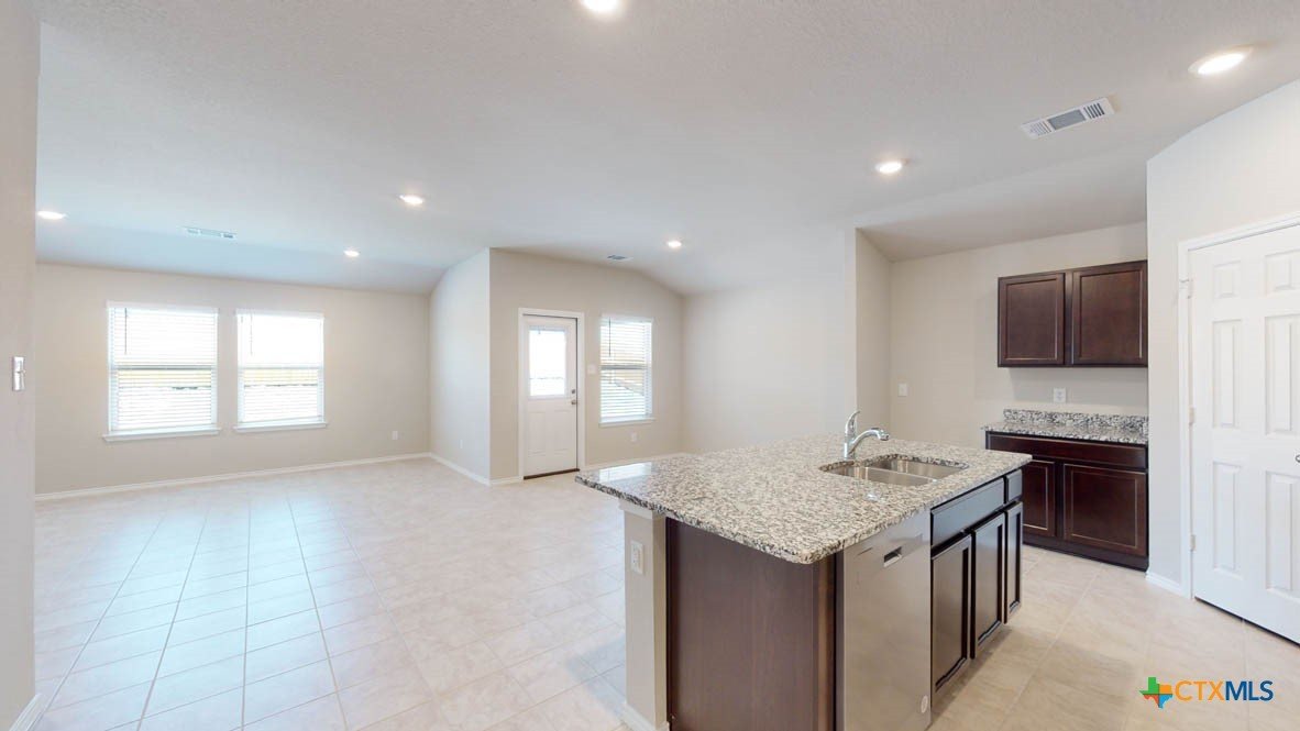 The Texas Cali plan is a one-story home featuring 4 bedrooms, 2 baths, and 2 car-garage. The long foyer with an entry coat closet leads to the open concept kitchen and breakfast area. The kitchen includes a breakfast bar with beautiful counter tops, stainless steel appliances, corner pantry and opens to the family room. Bedroom 1 features a sloped ceiling and attractive bathroom with dual vanities, water closet and spacious walk-in closet. The standard rear covered patio is located off the breakfast area. You’ll enjoy added security in your new DR Horton home with our Home is Connected features. Using one central hub that talks to all the devices in your home, you can control the lights, thermostat and locks, all from your cellular device. DR Horton also includes an Amazon Echo Dot to make voice activation a reality in your new Smart Home on select homes. With D.R. Horton's simple buying process and ten-year limited warranty, there's no reason to wait. (Prices, plans, dimensions, specifications, features, incentives, and availability are subject to change without notice obligation)