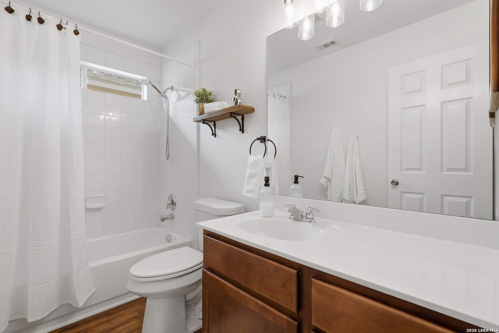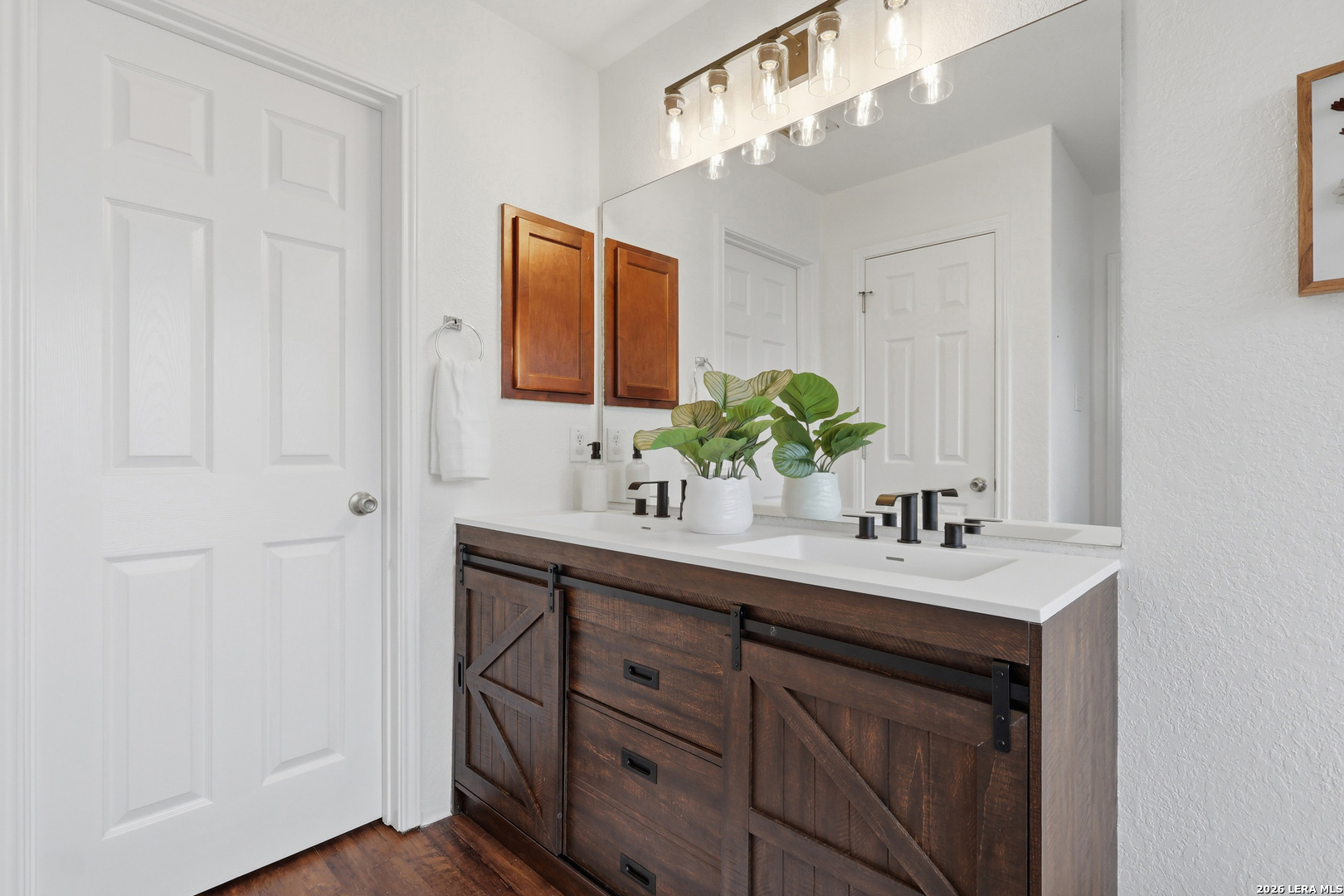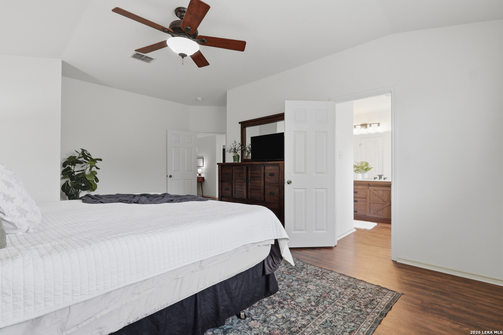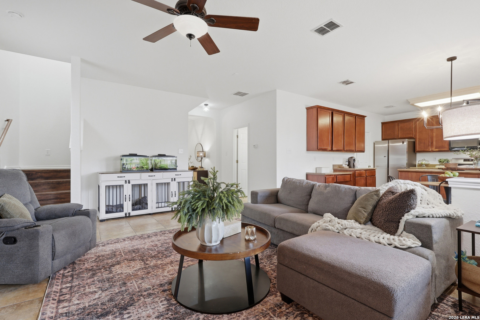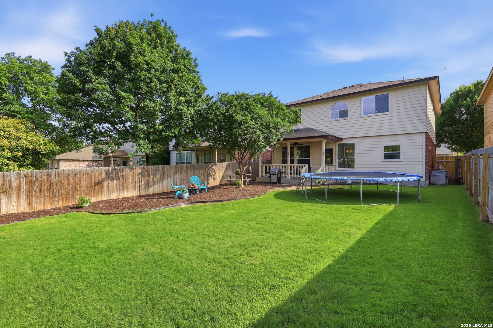 Beautifully updated 4-bedroom, 2.5-bath home in the highly desirable Alamo Ranch community. Ideally located within walking distance to the neighborhood amenity center and elementary school. Interior features include no carpet with laminate wood flooring installed throughout in 2025, fresh interior paint, and new lighting fixtures throughout, creating a clean, modern feel. Functional floor plan with spacious living and dining areas and an oversized pantry, perfect for everyday living and entertaining. Step outside to an absolutely gorgeous backyard with ample space to host, relax, and enjoy outdoor living. Additional upgrades include a water softener installed in 2024. Conveniently located near Alamo Ranch shopping, dining, and entertainment with easy access to major highways. Move-in ready and a must-see.