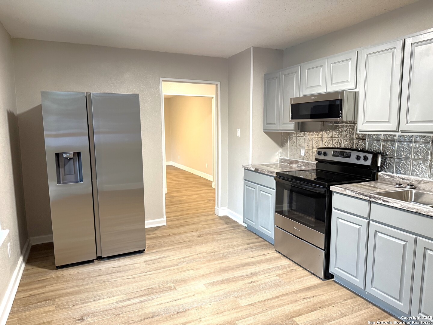 Here's a home that really sparkles and shines. Recently remodeled, it is move in ready! The curb appeal is excellent, and it's located on a corner lot. MORE: new roof, freshly painted exterior and interior, new vinyl plank flooring throughout, new mirrored closet doors, new fans and light fixtures. The attractive kitchen features new appliances, range, refrigerator, dishwasher, beautiful back splashes and lovely cabinets. The front door has an automatic lock for the owner's convenience. There are 3 bedrooms and 1 bath. Also, there is a bonus room located just off the kitchen. The utility room is spacious with nice built-ins. The large backyard features a separate building which could serve several purposes.: office, shop, workout area, hobby room, etc. This newly updated home is ready to go for you!