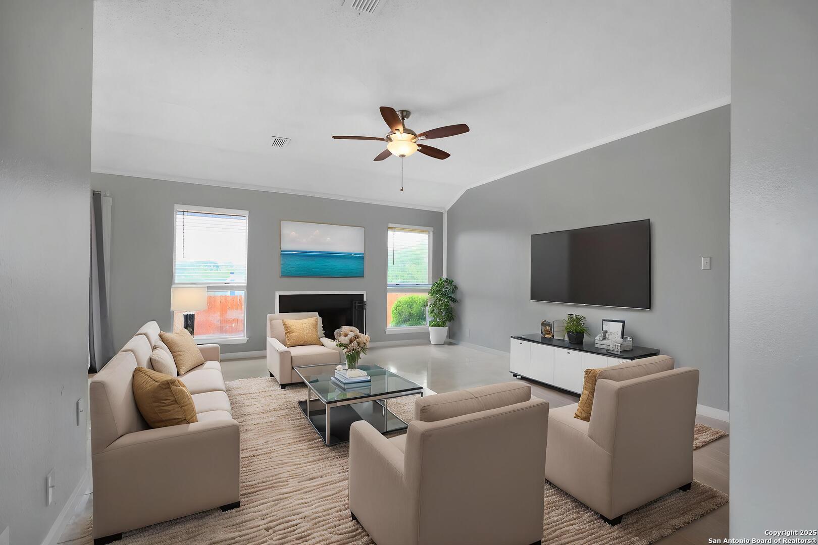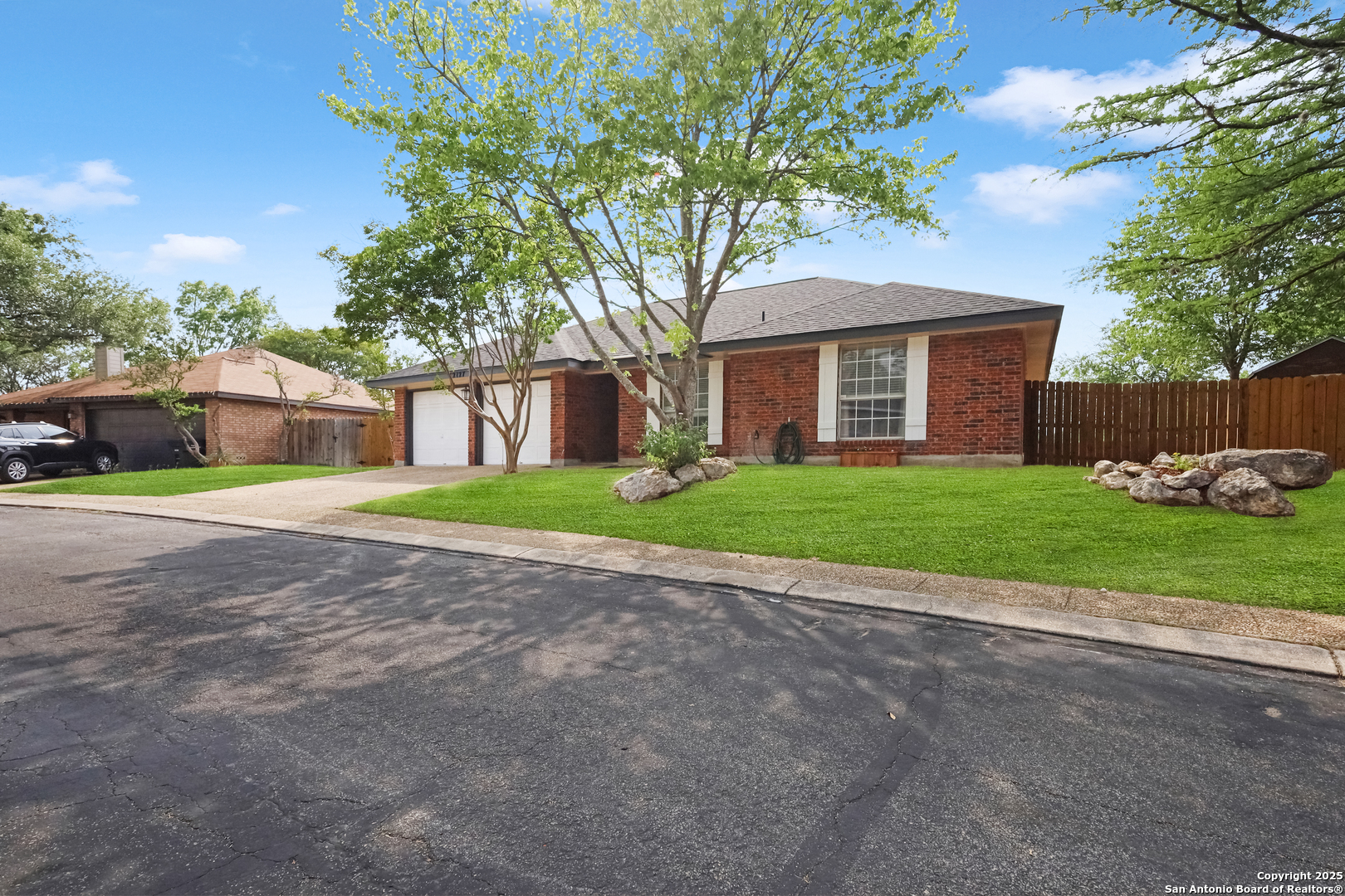 Welcome to this beautifully maintained single-story home offering the ideal blend of comfort and convenience, all within a spacious 1,297 square feet. Perfectly situated just 10 minutes from the airport and near major highways including 410, 1604, and I-35, this location makes commuting a breeze. Step inside to discover an open-concept layout that effortlessly connects the living room, dining area, and kitchen-creating a welcoming space ideal for both daily living and entertaining. Sunlight fills the home through large windows, enhancing the inviting atmosphere. A cozy fireplace serves as the centerpiece of the living area, perfect for relaxing or gathering with loved ones on cooler evenings. This home features three generously sized bedrooms, offering comfortable accommodations and privacy for everyone. The primary suite includes its own private bathroom, while a second well-appointed bath serves the additional bedrooms All Vista Management Group residents are enrolled in the Resident Benefits Package (RBP) for $65.00/month which includes liability insurance, credit building to help boost the resident's credit score with timely rent payments, up to $1M Identity Theft Protection, HVAC air filter delivery (for applicable properties), move-in concierge service making utility connection and home service setup a breeze during your move-in, our best-in-class resident rewards