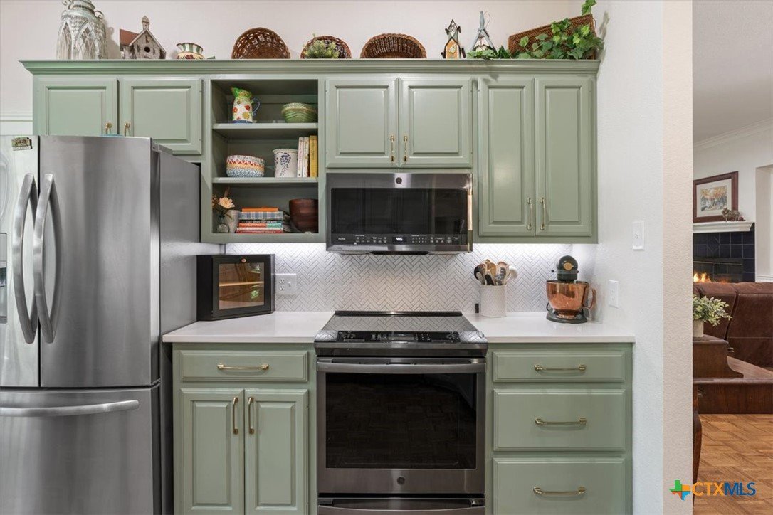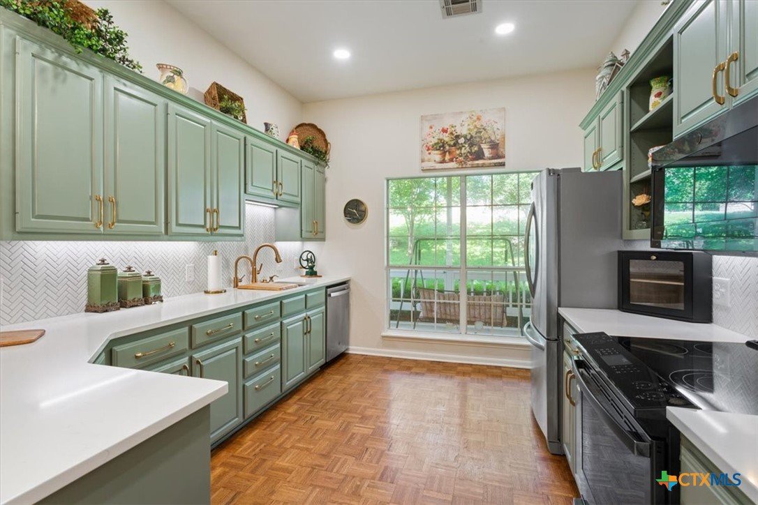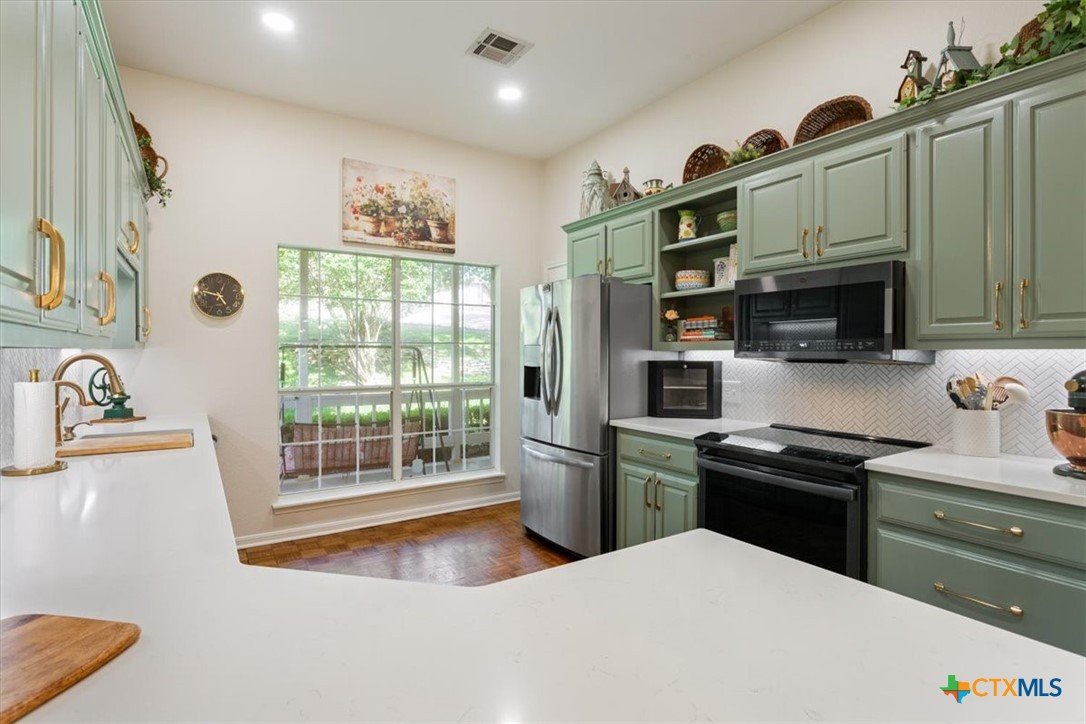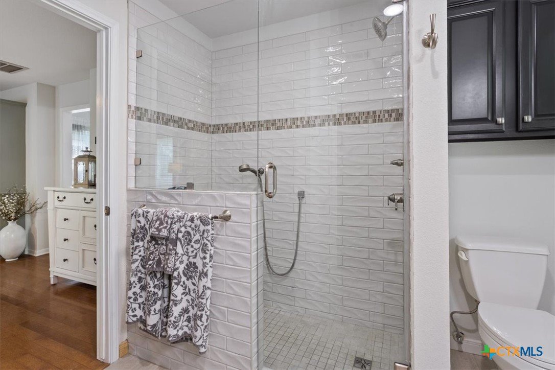 MOTHER IN LAW SUITE Tucked into the established section of Mill Creek, this beautifully updated home offers privacy, charm and flexible living just minutes from the golf course and downtown Salado. Mature trees and blooming crape myrtles line the street, creating a peaceful setting. Inside, the home features a thoughtfully renovated kitchen, brand new appliances and double ovens along with updated bathrooms throughout. The layout includes three bedrooms, with a rare double primary setup. the 3rd bedroom functions as a private mother in law suite complete with its own sitting area, full bathroom and shower, and a separate covered porch-ideal for guests or multi generational living. Out back you will find 2 large covered porches overlooking a wet weather creek, creating a quiet and private retreat. Over 2400 sf, recently updated A/C, new roof in 2022