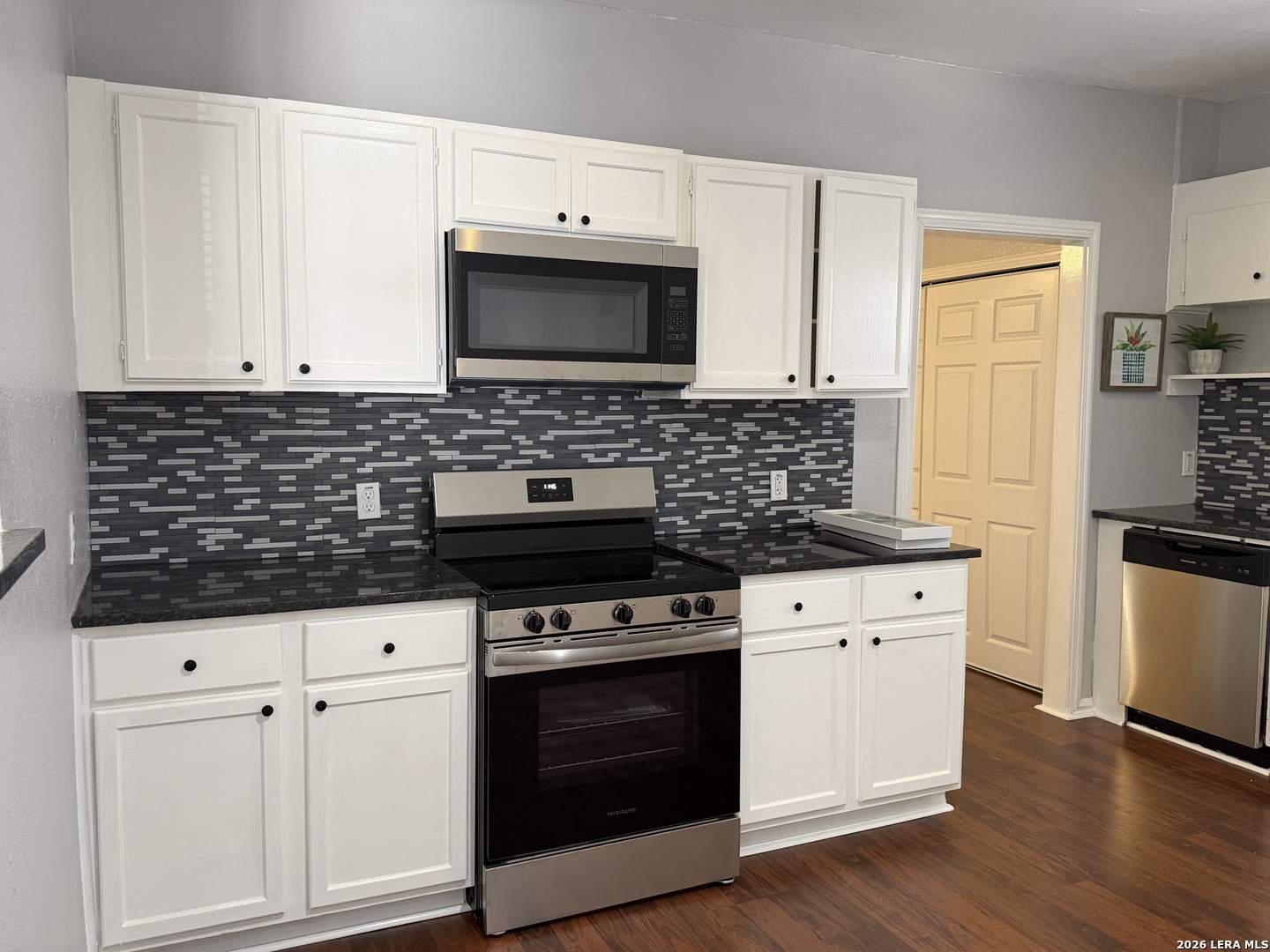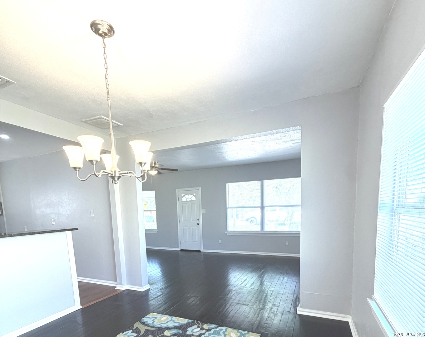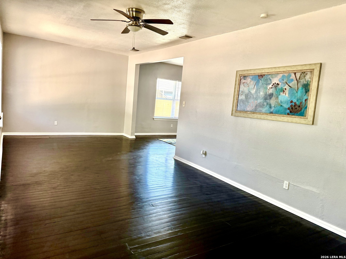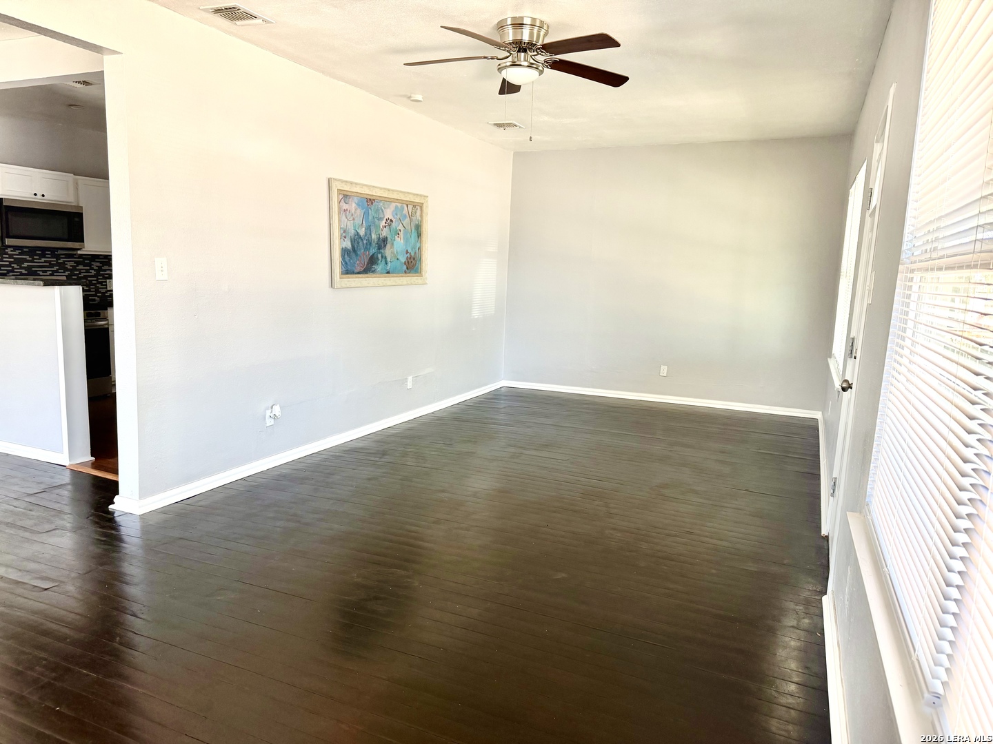 Step into this beautiful 3 Bedroom, 2 Bath home featuring hardwood flooring throughout the living and dining areas, creating a warm and inviting atmosphere. Enjoy an oversized living/dining combo area and a large separate formal dining room prefect for entertaining. The kitchen is designed with an abundant cabinet space; granite counter tops, new dishwasher, new garbage disposal, brand new over the range microwave oven, new stove and eat-in countertop area. A large separate family room is perfect a TV area or a game room. The primary bathroom has a double vanity with granite counter tops and a large walk-in shower. the second bathroom has a tub/shower combo and a vanity with granite countertop. This home features central heat and air, celling fans throughout. Step outside and enjoy the deck under the shade perfect for family barbeques and entertaining. Backyard is enclosed with a privacy fence. Please confirm all room measurements and schools.