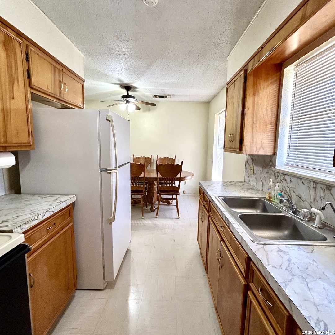 A beautifully maintained brick home offering 1,148 sq ft of comfortable living space, perfectly situated on three city lots at the corner of W Crockett and S Comitas. This 3-bedroom, 1.5-bath home with a 1-car attached garage is in pristine condition and showcases true pride of ownership throughout. Inside, you'll find a functional layout filled with natural light, creating a warm and inviting atmosphere. The solid brick construction adds timeless appeal and durability. Step outside to enjoy the expansive corner property shaded by mature trees, providing both character and comfort. The additional lot space offers endless possibilities - gardening, entertaining, extra parking, or future expansion. A 10x20 metal shed with reinforced interior bracing provides excellent, sturdy storage for yard equipment, tools, or hobbies. Move-in ready and meticulously cared for, this property is an outstanding opportunity for homeowners or investors alike.