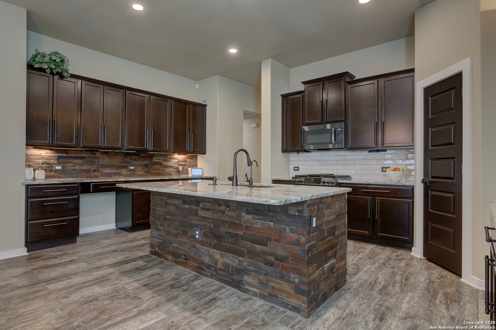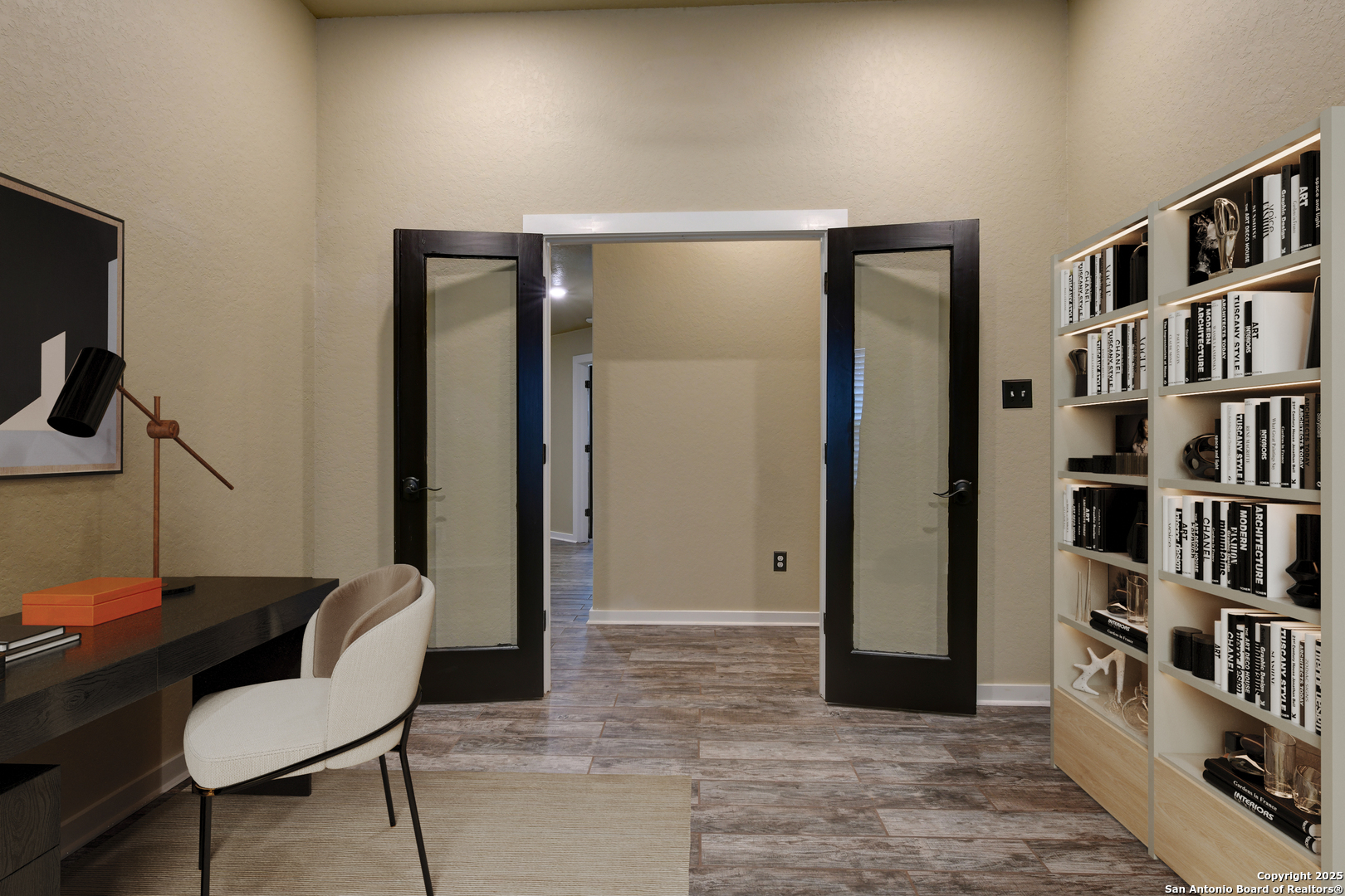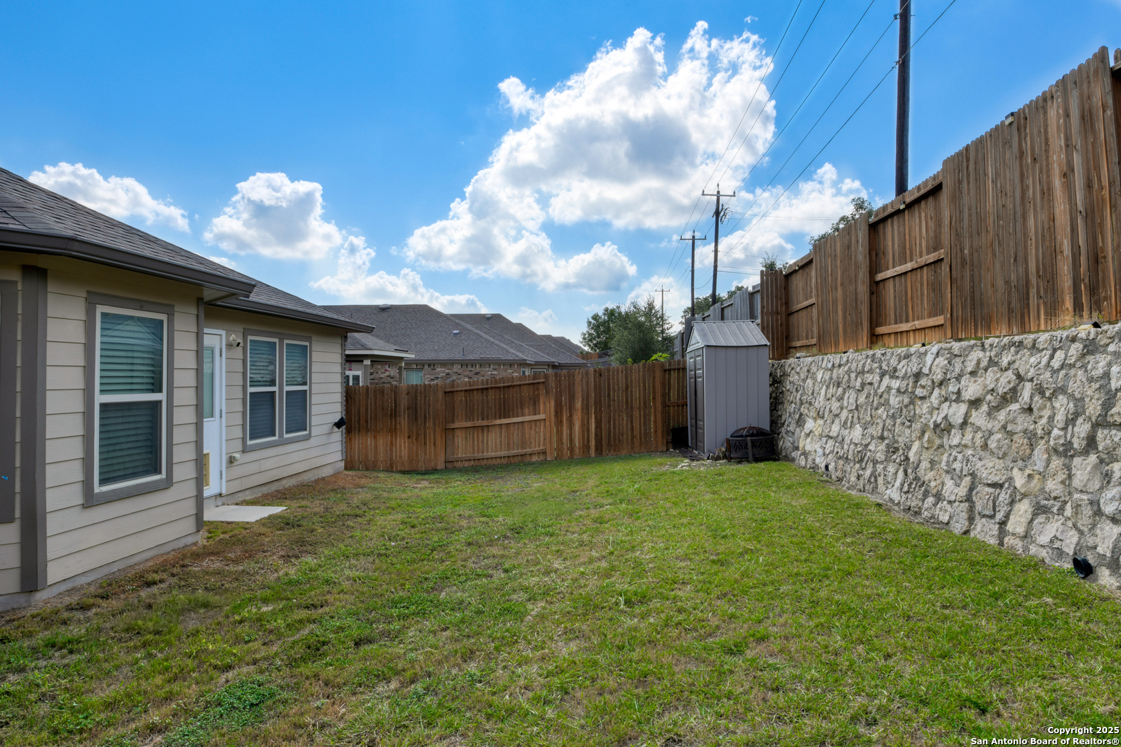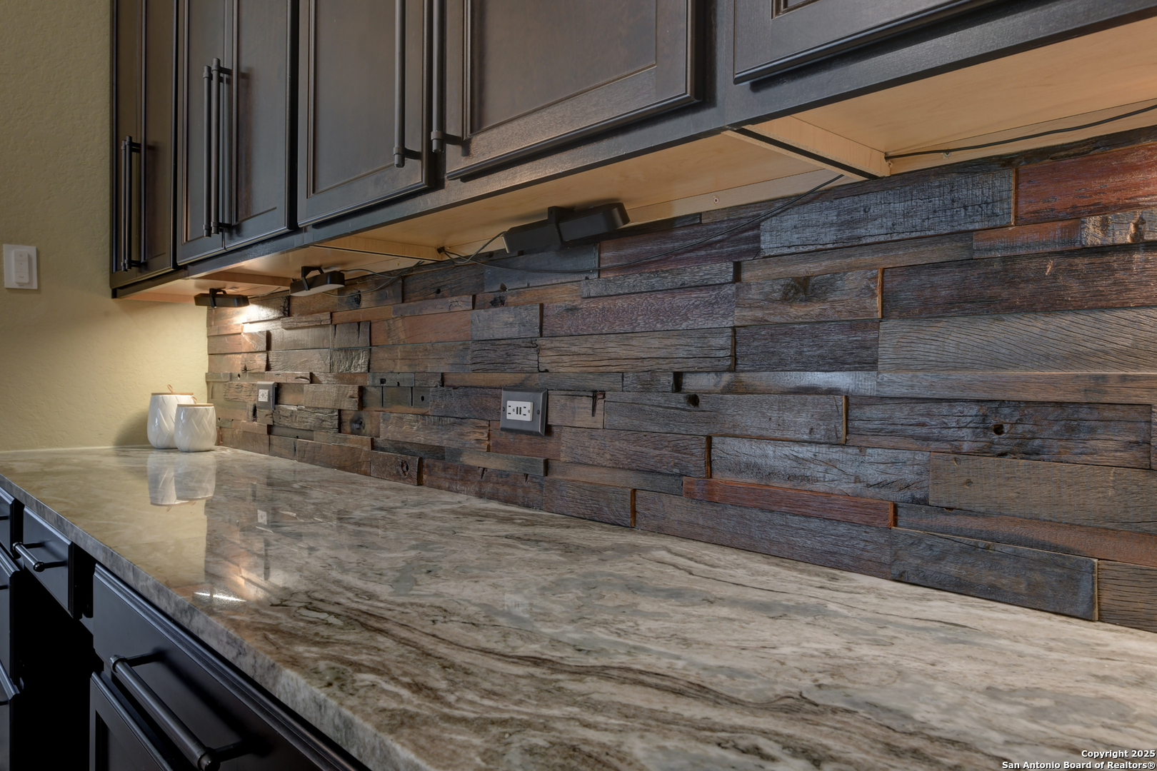 As you drive into the neighborhood, this cozy one-story property feels right at home. The yard is nicely kept, with mature trees adding a touch of nature, and the covered front entry invites you to step inside and unwind. When you open the stylish wooden front door, you're welcomed by a spacious entry hall. The warm neutral colors and wood-look tile underfoot create a relaxed vibe. Just off the entry, glass double doors lead to a private office. Morning light streams through a big window, making it a great spot to work from home. High ceilings and recessed lighting keep the space feeling open and airy. As you move further in, you'll find the heart of the home - the island kitchen. The dark cabinets stand out against the shiny granite countertops and stacked stone accents, with a full backsplash tying it all together. There's plenty of counter space for cooking, and under-cabinet lighting adds a warm glow in the evenings. The island has bar seating, extra storage, and even a built-in desk for managing household tasks or helping with homework. The pantry has been smartly remodeled for easy organization. From the kitchen, you step into a large living and dining area. The vaulted ceiling adds to the airy feel, with sunlight streaming through the windows and a glass door leading to the backyard. The wood-look tile flooring continues throughout, connecting the space as you imagine hosting friends for dinner or kids playing board games. At the back of the house, the primary suite feels like a private getaway. The wood-look tile continues underfoot, and a bold feature wall adds personality. Three windows let in soft natural light, and sliding barn doors add rustic charm as they open to the spa-like bath and large walk-in closet. The en-suite bath features marble-look tile on the floors and shower surround, with sliding glass doors leading to a spacious walk-in shower. The double vanity has sleek counters and a framed mirror that reflects the room's gentle light. Built-in cabinetry keeps essentials organized, and the walk-in closet offers plenty of shelving and hanging space. Down the hall, there's a spacious second living area that can be anything you need - a game room, media space, or playroom. The easy-care tile flooring is both practical and stylish. This area connects to a full secondary bathroom with designer touches like a black stone vessel sink, hex tile floors, and a modern tub/shower with marble-look tile and matte black fixtures. Three more bedrooms line the hall, ready for family, guests, or another home office. Sleek wood-look flooring, neutral walls, and stylish light fixtures make them move-in ready. Nearby, the laundry room is both functional and stylish, with upper cabinets for storage and a bold herringbone tile backsplash. Throughout the home, thoughtful upgrades make daily life easier - a whole-house surge protector, wire drops for TVs, a water softener, a tankless water heater, extra attic storage, a remodeled pantry, soffit lighting, and epoxy flooring in the garage. Step through the back door, and the comfort continues. The private backyard is enclosed by a wooden fence and bordered by a stone retaining wall for privacy. There's a storage shed along the fence and plenty of lawn space for kids, pets, or barbecues. All of this is just minutes from shopping and highways, making your commute easy and your weekends full of possibilities. This is more than a house - it's a place to truly live, relax, and call your own. Please be aware that some photos have been virtually staged.