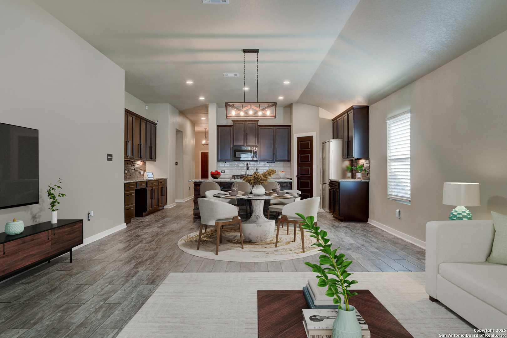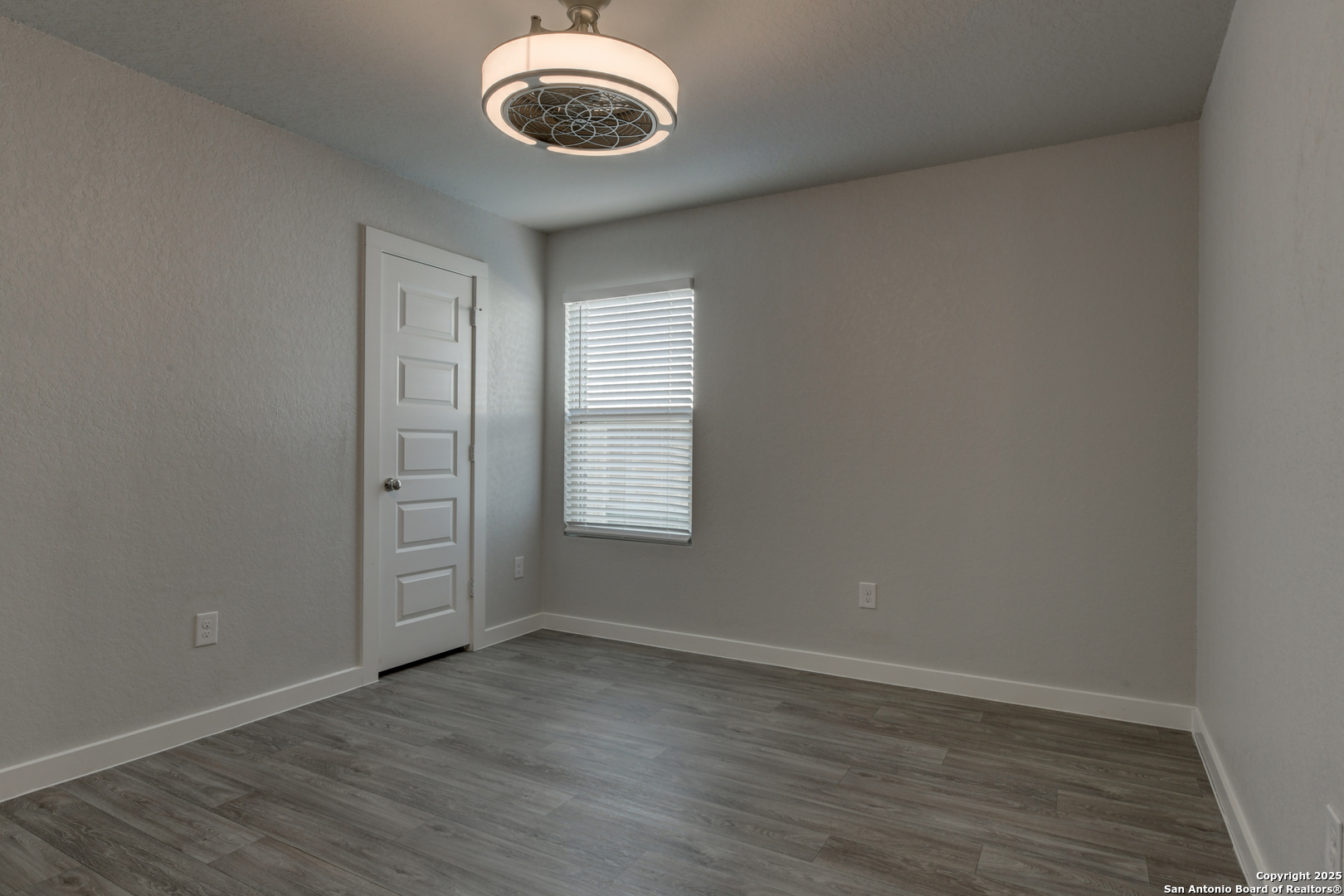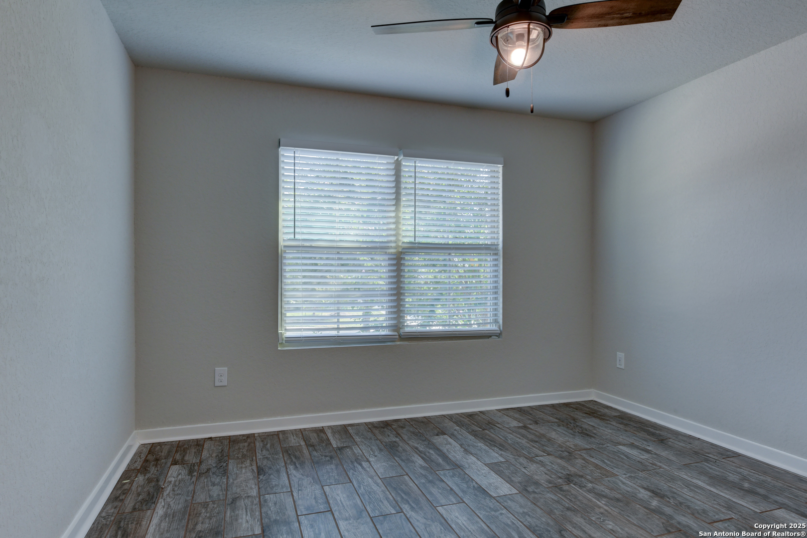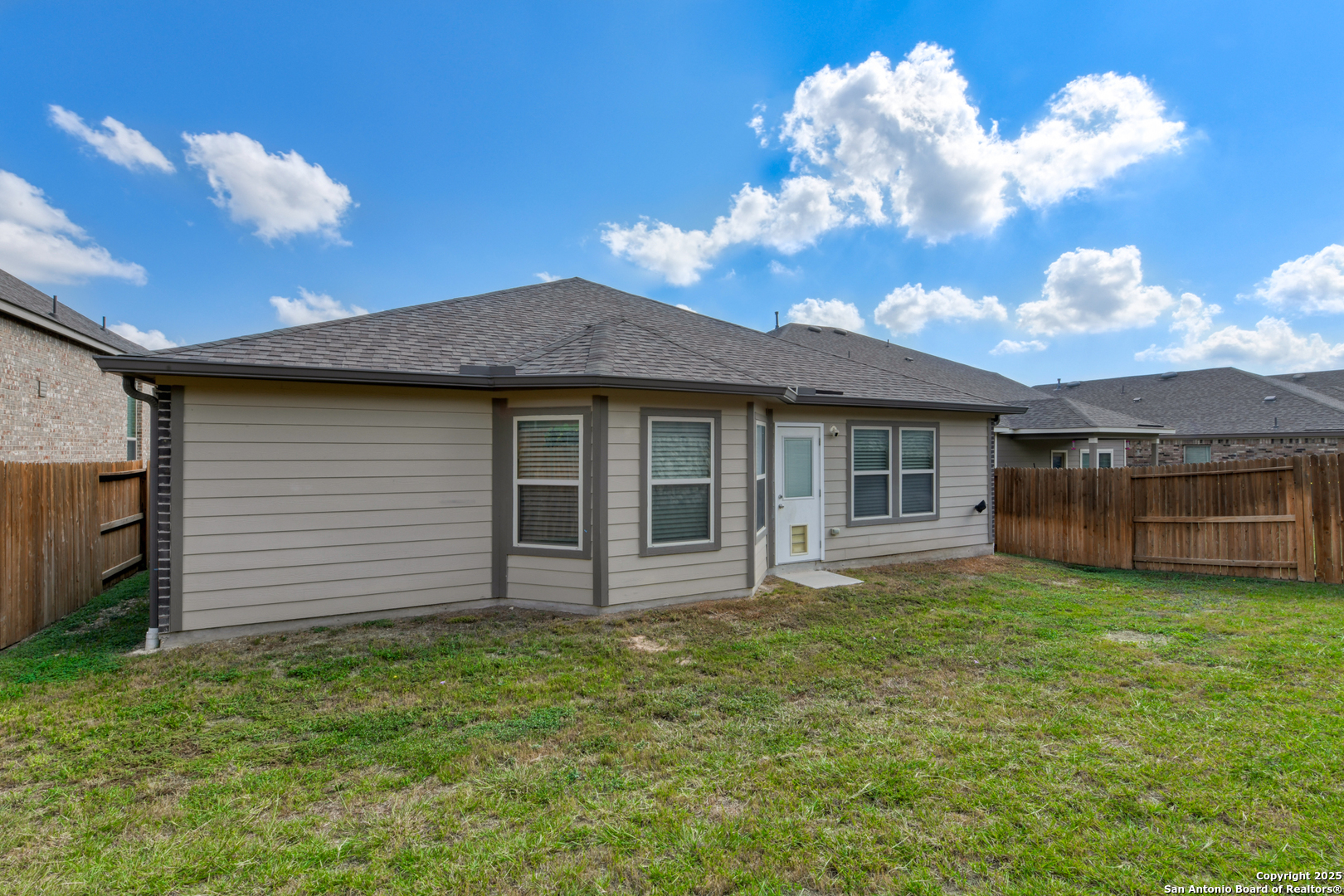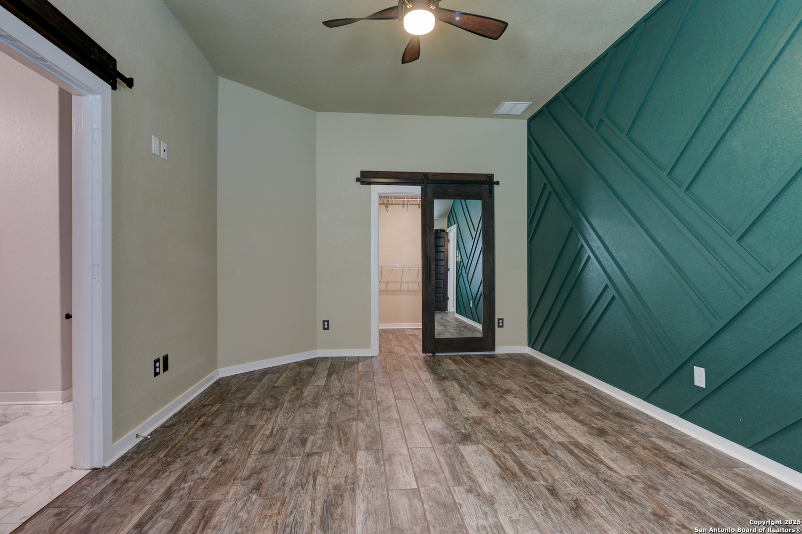 As you drive into the neighborhood, this cozy one-story property feels right at home. The yard is nicely kept, with mature trees adding a touch of nature, and the covered front entry invites you to step inside and unwind. When you open the stylish wooden front door, you're welcomed by a spacious entry hall. The warm neutral colors and wood-look tile underfoot create a relaxed vibe. Just off the entry, glass double doors lead to a private office. Morning light streams through a big window, making it a great spot to work from home. High ceilings and recessed lighting keep the space feeling open and airy. As you move further in, you'll find the heart of the home - the island kitchen. The dark cabinets stand out against the shiny granite countertops and stacked stone accents, with a full backsplash tying it all together. There's plenty of counter space for cooking, and under-cabinet lighting adds a warm glow in the evenings. The island has bar seating, extra storage, and even a built-in desk for managing household tasks or helping with homework. The pantry has been smartly remodeled for easy organization. From the kitchen, you step into a large living and dining area. The vaulted ceiling adds to the airy feel, with sunlight streaming through the windows and a glass door leading to the backyard. The wood-look tile flooring continues throughout, connecting the space as you imagine hosting friends for dinner or kids playing board games. At the back of the house, the primary suite feels like a private getaway. The wood-look tile continues underfoot, and a bold feature wall adds personality. Three windows let in soft natural light, and sliding barn doors add rustic charm as they open to the spa-like bath and large walk-in closet. The en-suite bath features marble-look tile on the floors and shower surround, with sliding glass doors leading to a spacious walk-in shower. The double vanity has sleek counters and a framed mirror that reflects the room's gentle light. Built-in cabinetry keeps essentials organized, and the walk-in closet offers plenty of shelving and hanging space. Down the hall, there's a spacious second living area that can be anything you need - a game room, media space, or playroom. The easy-care tile flooring is both practical and stylish. This area connects to a full secondary bathroom with designer touches like a black stone vessel sink, hex tile floors, and a modern tub/shower with marble-look tile and matte black fixtures. Three more bedrooms line the hall, ready for family, guests, or another home office. Sleek wood-look flooring, neutral walls, and stylish light fixtures make them move-in ready. Nearby, the laundry room is both functional and stylish, with upper cabinets for storage and a bold herringbone tile backsplash. Throughout the home, thoughtful upgrades make daily life easier - a whole-house surge protector, wire drops for TVs, a water softener, a tankless water heater, extra attic storage, a remodeled pantry, soffit lighting, and epoxy flooring in the garage. Step through the back door, and the comfort continues. The private backyard is enclosed by a wooden fence and bordered by a stone retaining wall for privacy. There's a storage shed along the fence and plenty of lawn space for kids, pets, or barbecues. All of this is just minutes from shopping and highways, making your commute easy and your weekends full of possibilities. This is more than a house - it's a place to truly live, relax, and call your own. Please be aware that some photos have been virtually staged.