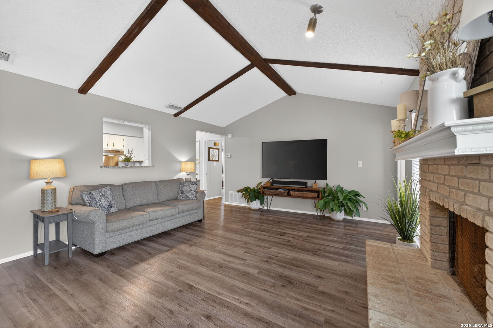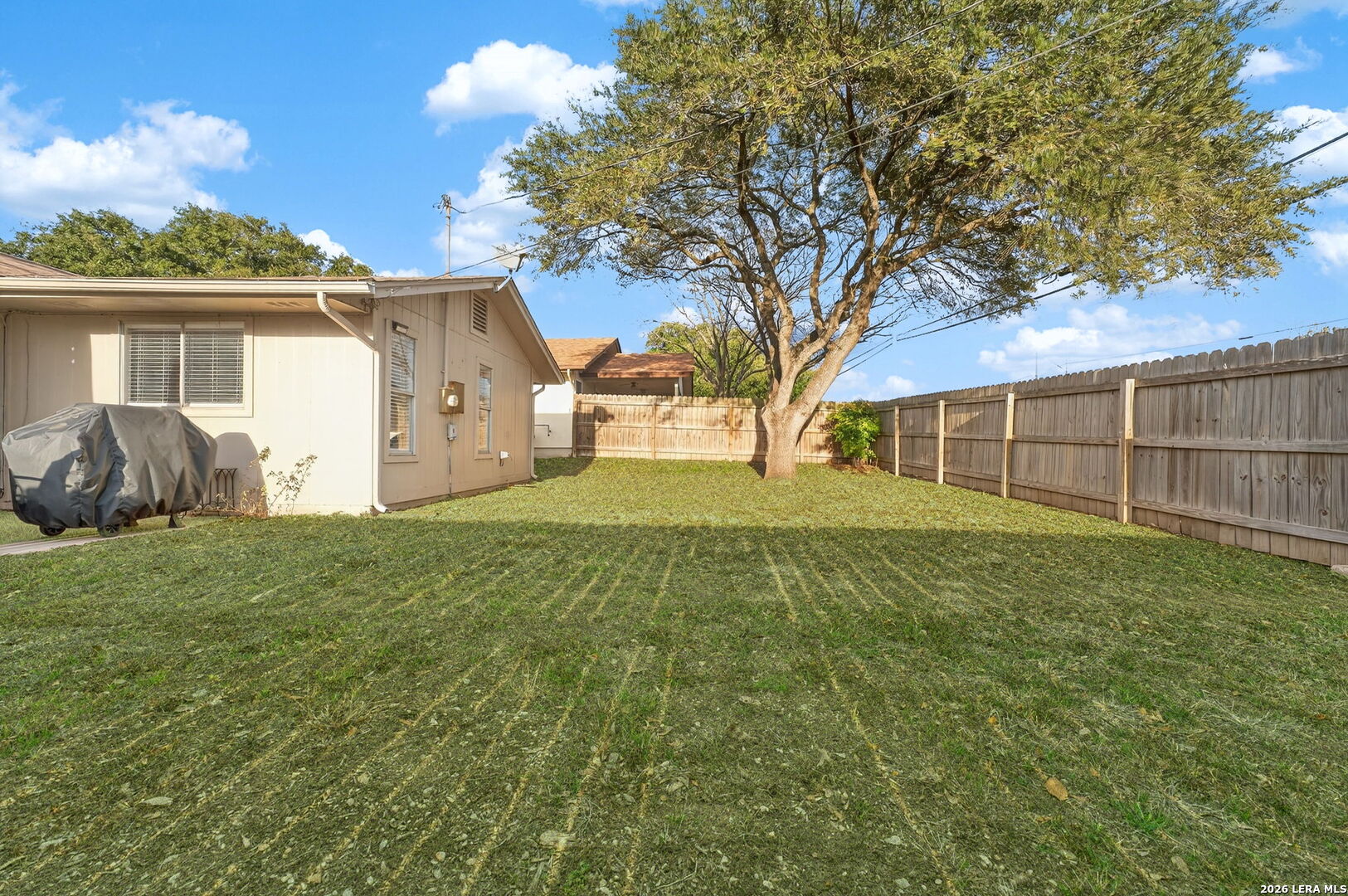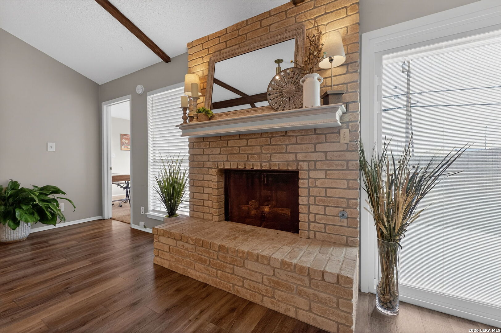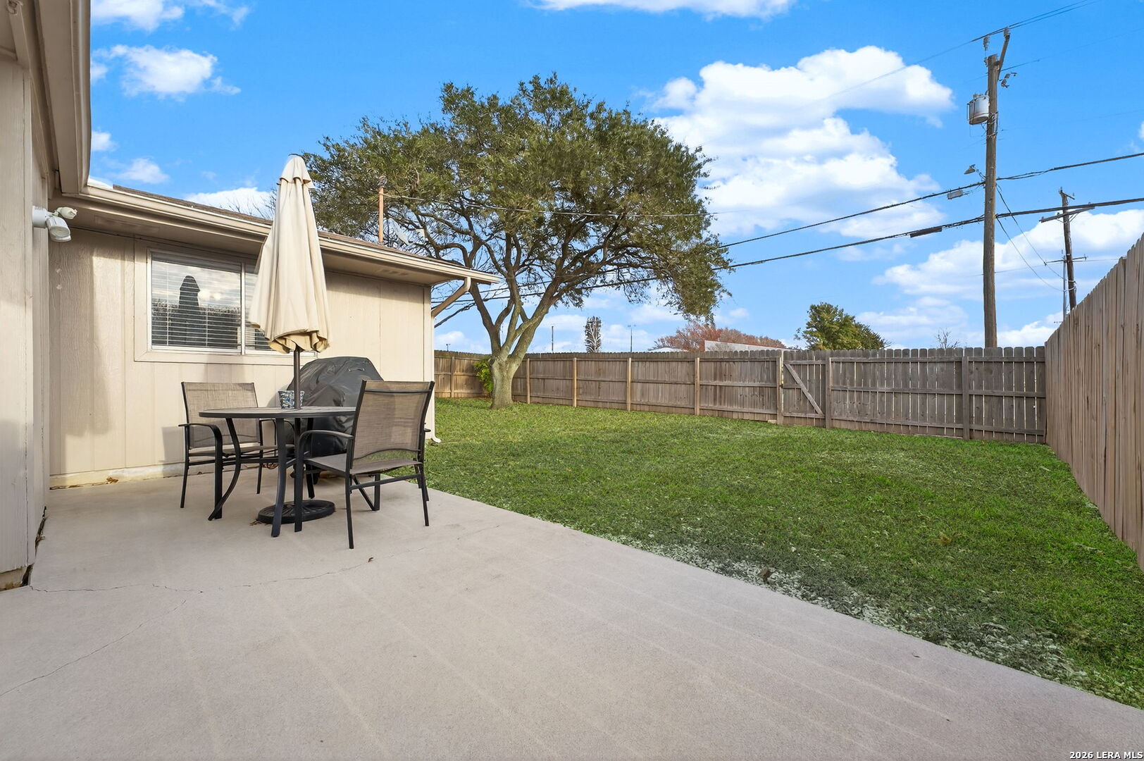 Welcome to 122 Bolerio Dr, a move-in ready 3-bedroom, 2-bath home offering 1,355 sq ft of comfortable living space with a 2-car garage, perfectly located in the heart of Universal City. Enjoy the covered front porch with decorative tile, an inviting spot for morning coffee or evening relaxation. Stepping through the recently upgraded front door you'll feel right at home with tasteful updates like luxury vinyl plank flooring through the main living areas and granite countertops throughout. The living room has high vaulted ceilings with wood beams and a cozy fireplace that create a grand, welcoming feel. Carpet is limited to the bedrooms only for added comfort, and the recently replaced rear door plus all appliances included make this home truly turnkey. With no HOA and no rear neighbors, you'll appreciate the added freedom and privacy, along with a super convenient location less than 3 miles from Randolph AFB and minutes from Loop 1604, I-35, I-10, The Forum, H-E-B, and Walmart-this is a smart buy you don't want to miss.