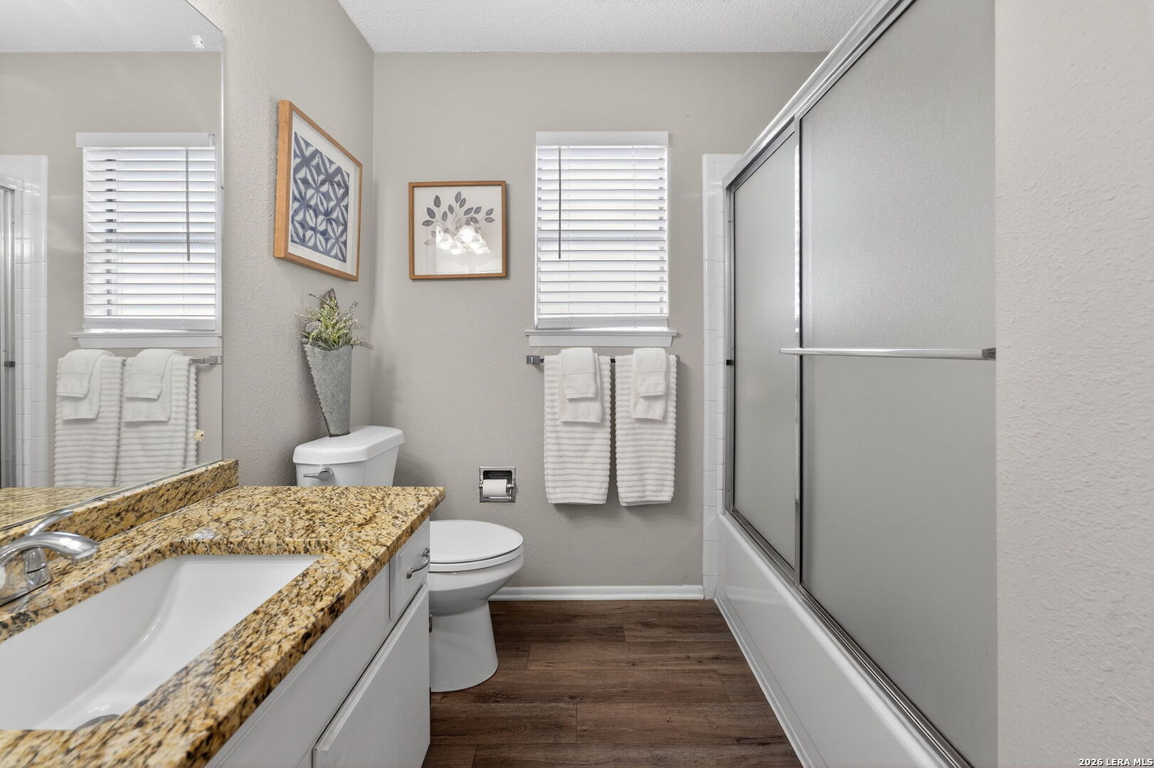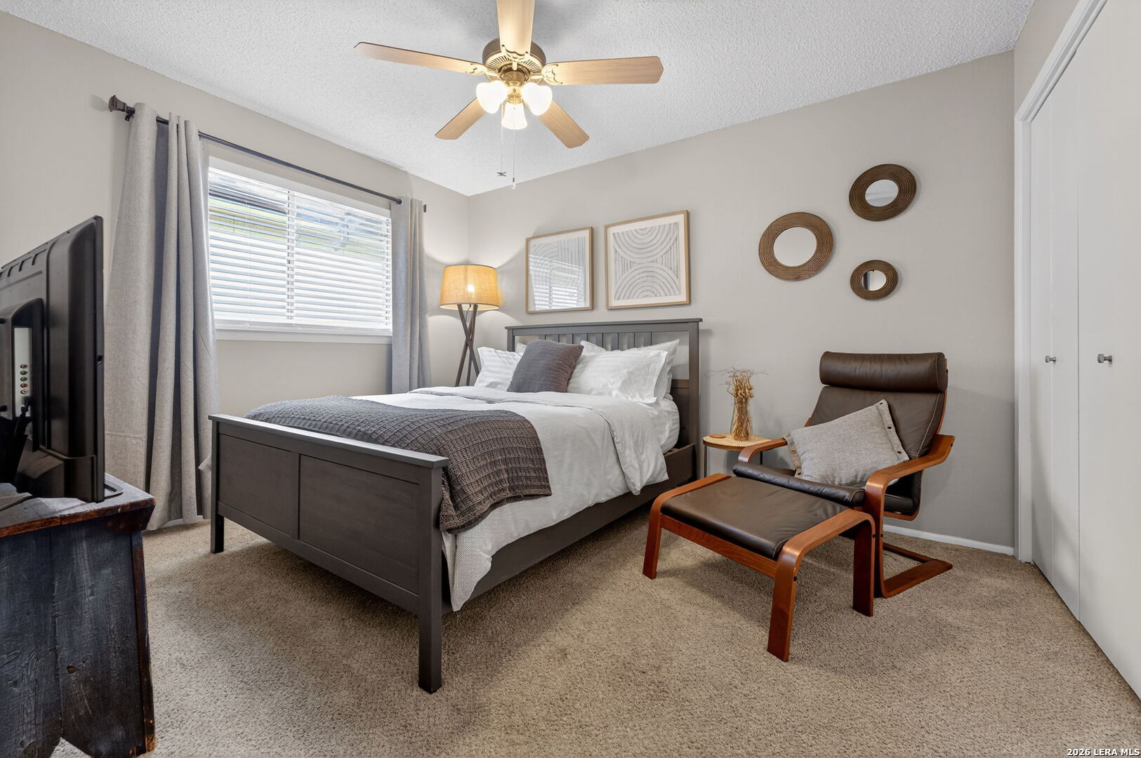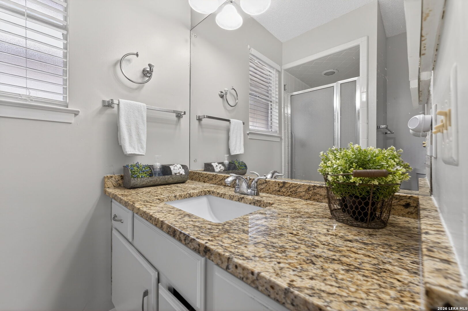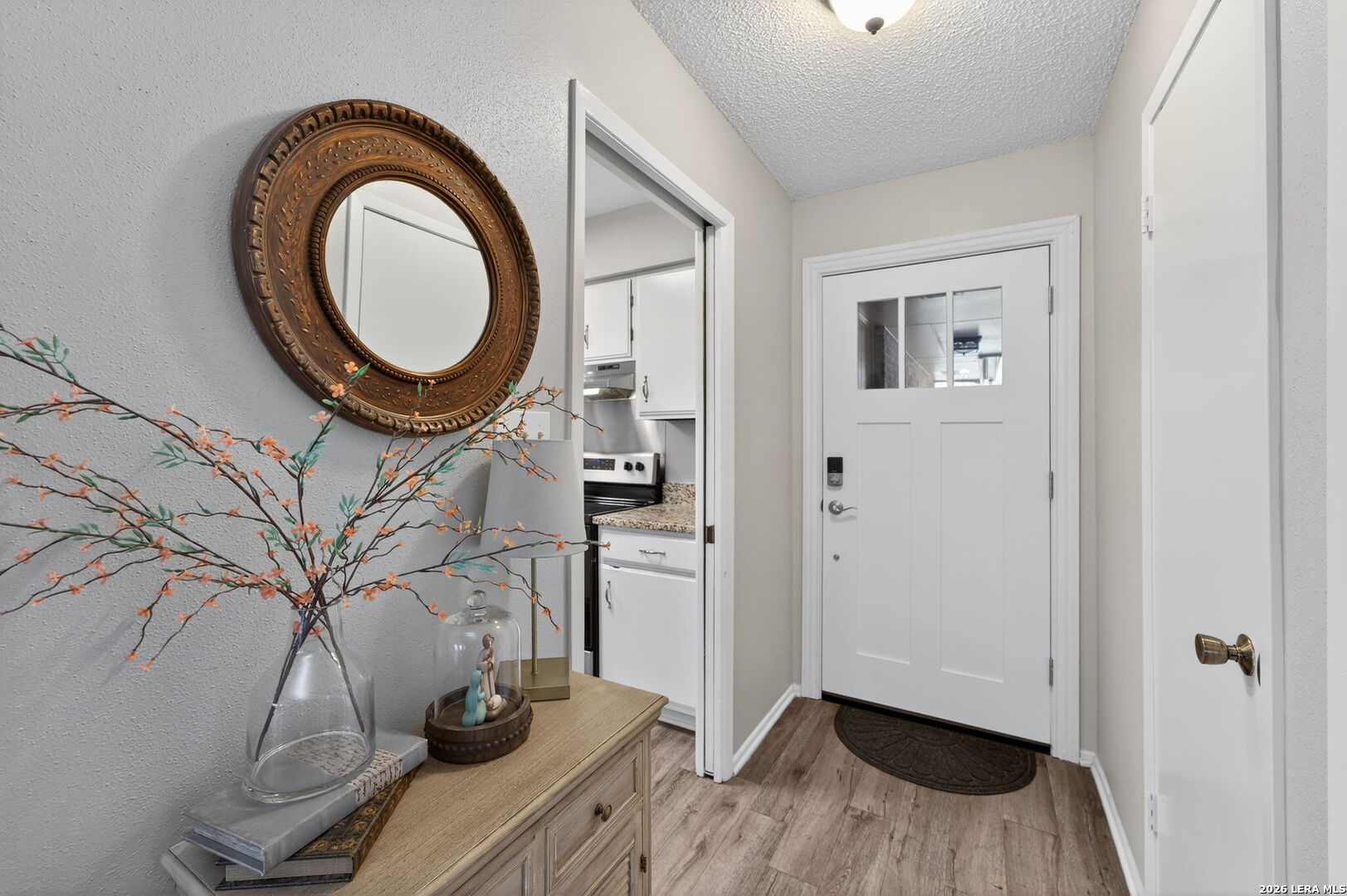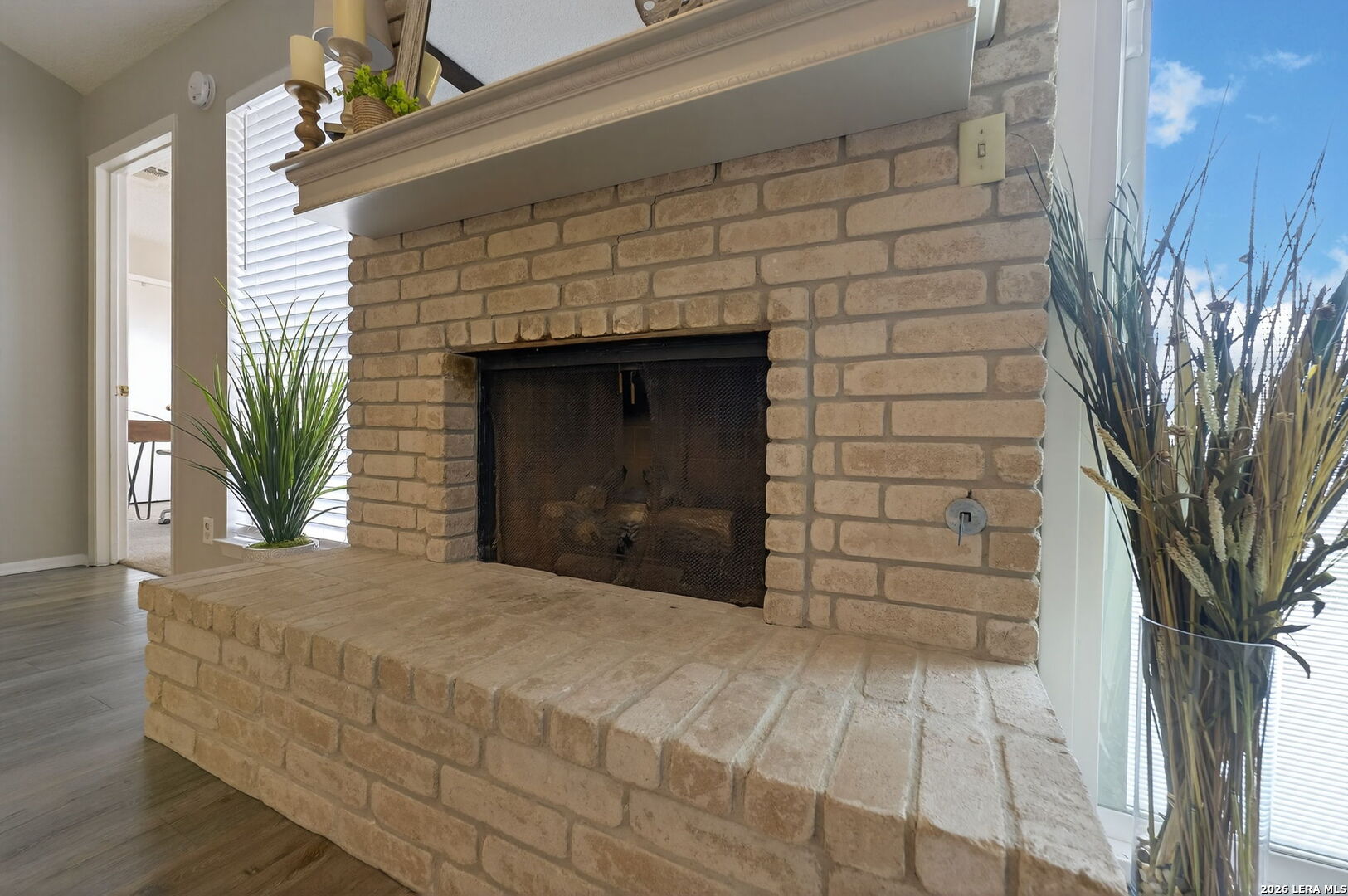 Welcome to 122 Bolerio Dr, a move-in ready 3-bedroom, 2-bath home offering 1,355 sq ft of comfortable living space with a 2-car garage, perfectly located in the heart of Universal City. Enjoy the covered front porch with decorative tile, an inviting spot for morning coffee or evening relaxation. Stepping through the recently upgraded front door you'll feel right at home with tasteful updates like luxury vinyl plank flooring through the main living areas and granite countertops throughout. The living room has high vaulted ceilings with wood beams and a cozy fireplace that create a grand, welcoming feel. Carpet is limited to the bedrooms only for added comfort, and the recently replaced rear door plus all appliances included make this home truly turnkey. With no HOA and no rear neighbors, you'll appreciate the added freedom and privacy, along with a super convenient location less than 3 miles from Randolph AFB and minutes from Loop 1604, I-35, I-10, The Forum, H-E-B, and Walmart-this is a smart buy you don't want to miss.