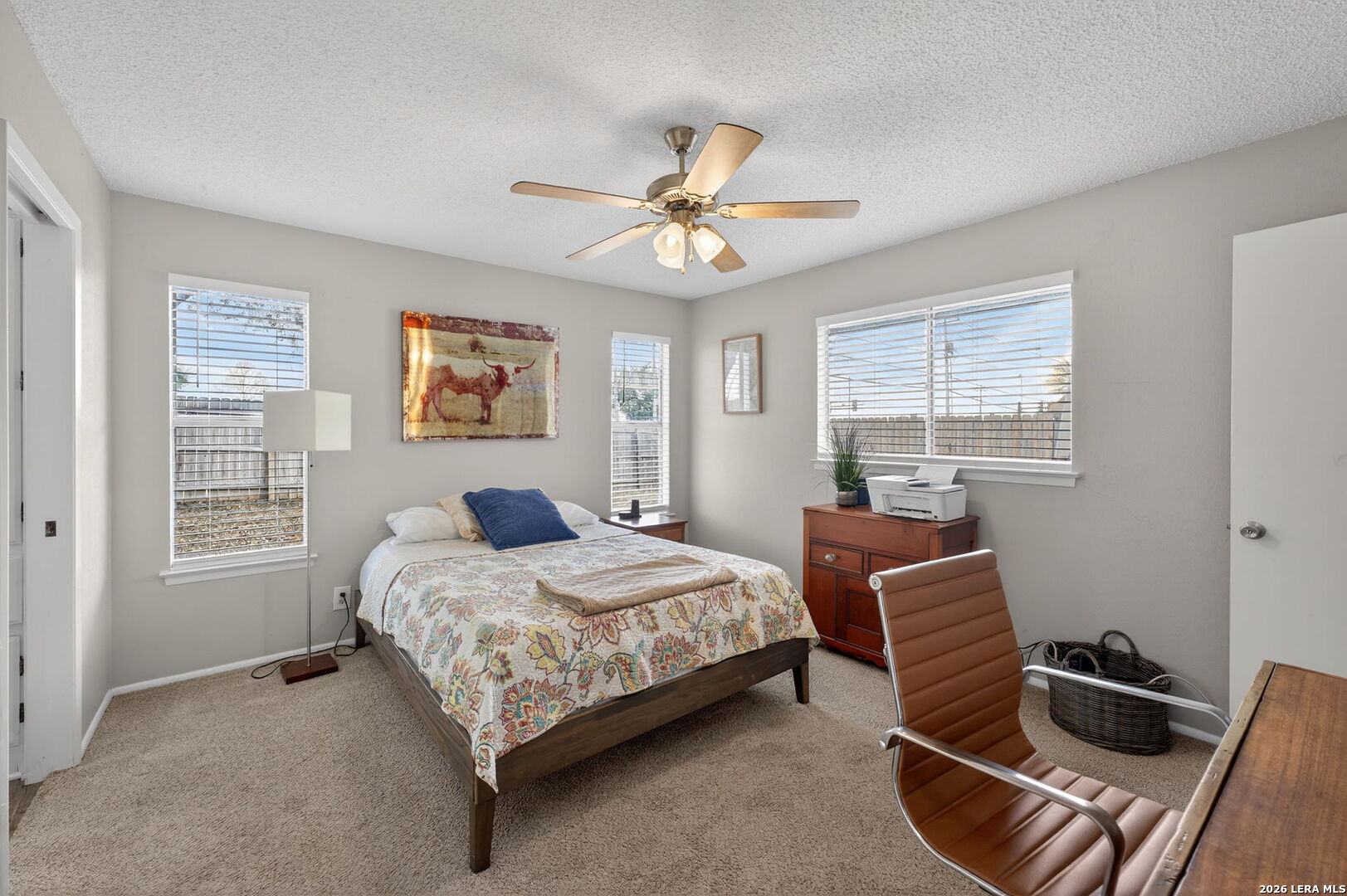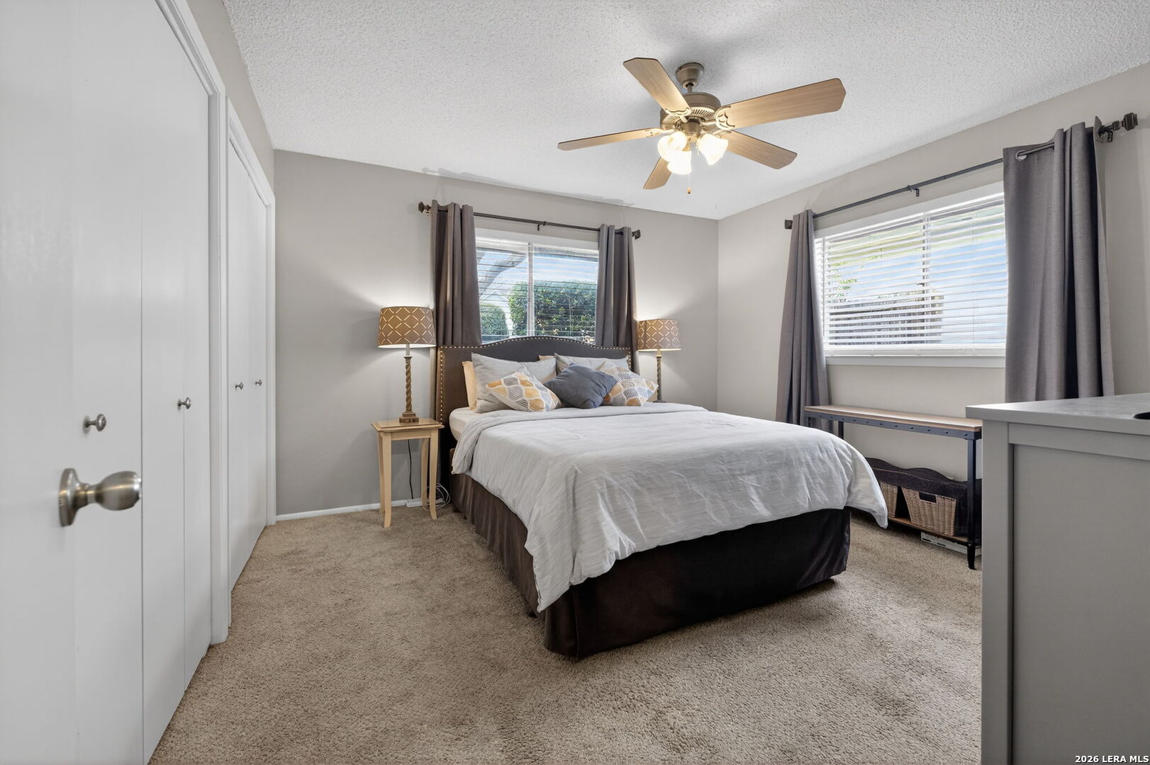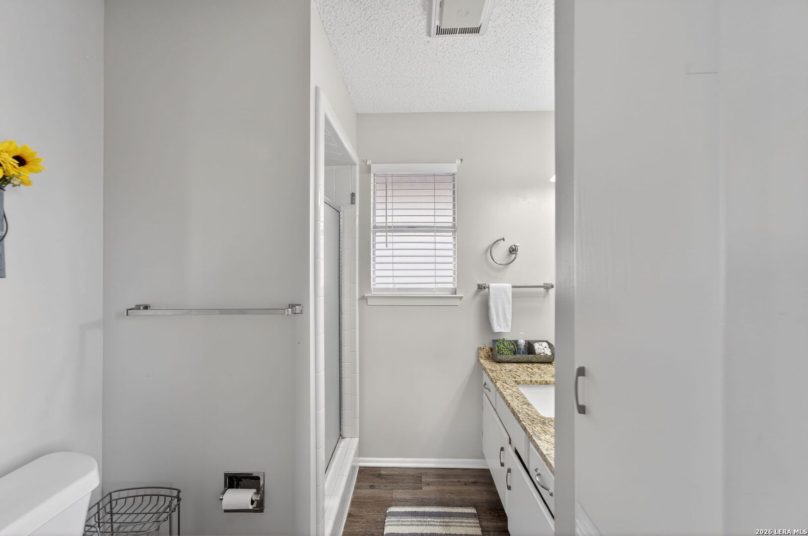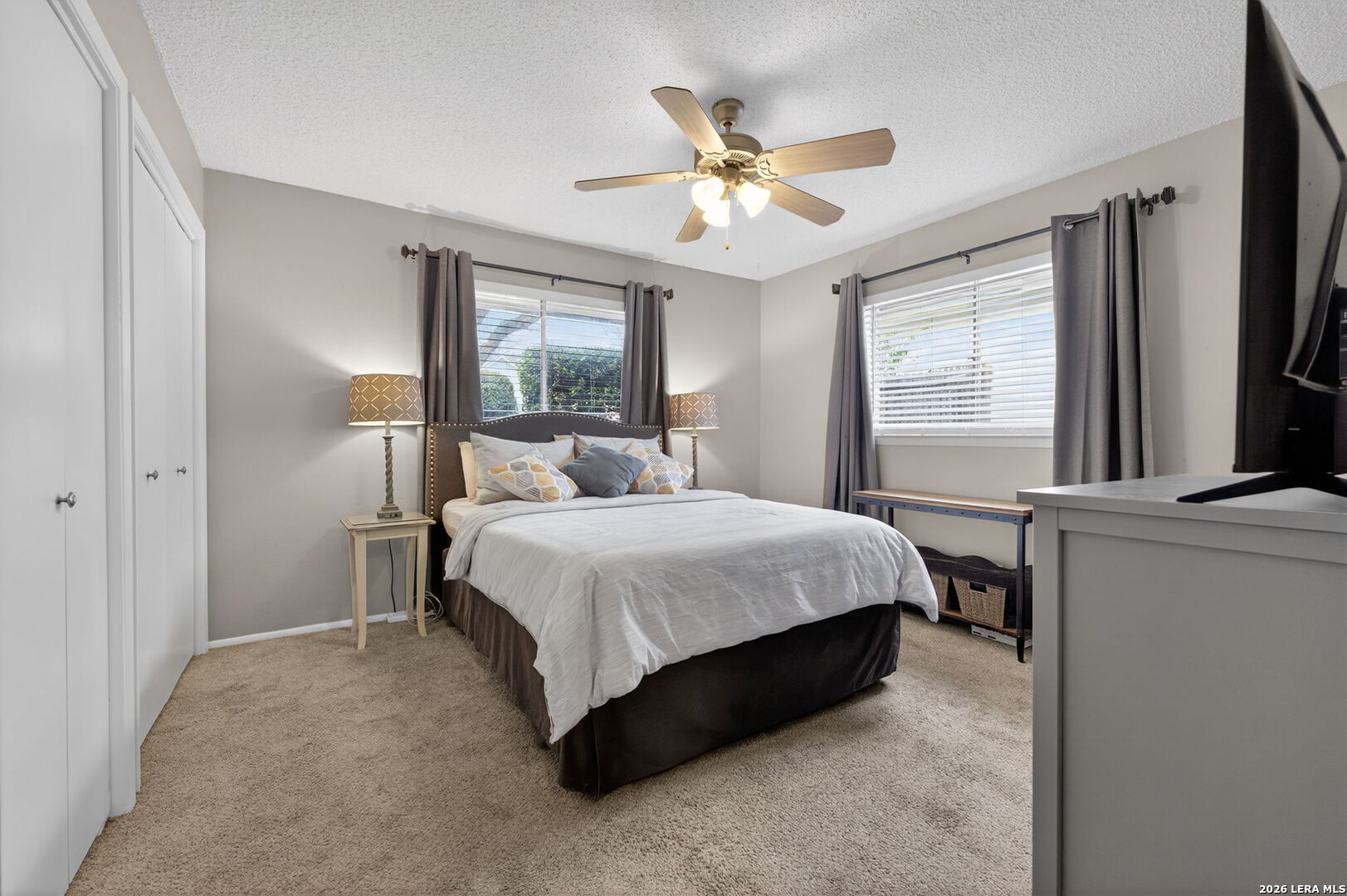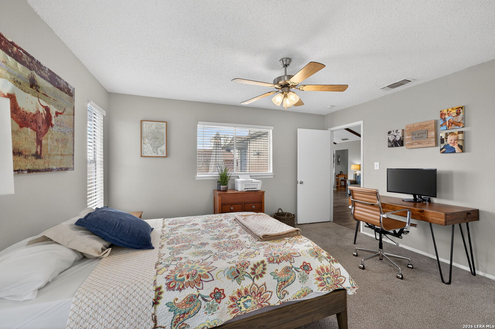 Welcome to 122 Bolerio Dr, a move-in ready 3-bedroom, 2-bath home offering 1,355 sq ft of comfortable living space with a 2-car garage, perfectly located in the heart of Universal City. Enjoy the covered front porch with decorative tile, an inviting spot for morning coffee or evening relaxation. Stepping through the recently upgraded front door you'll feel right at home with tasteful updates like luxury vinyl plank flooring through the main living areas and granite countertops throughout. The living room has high vaulted ceilings with wood beams and a cozy fireplace that create a grand, welcoming feel. Carpet is limited to the bedrooms only for added comfort, and the recently replaced rear door plus all appliances included make this home truly turnkey. With no HOA and no rear neighbors, you'll appreciate the added freedom and privacy, along with a super convenient location less than 3 miles from Randolph AFB and minutes from Loop 1604, I-35, I-10, The Forum, H-E-B, and Walmart-this is a smart buy you don't want to miss.