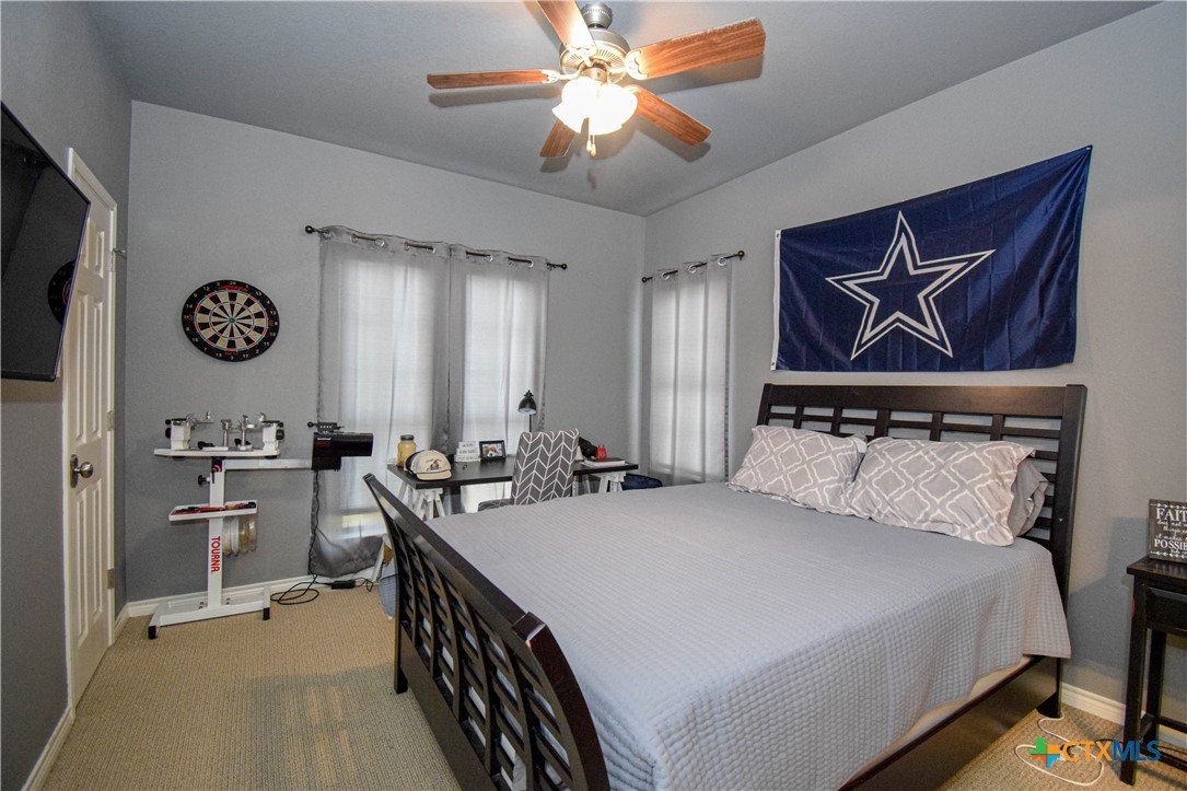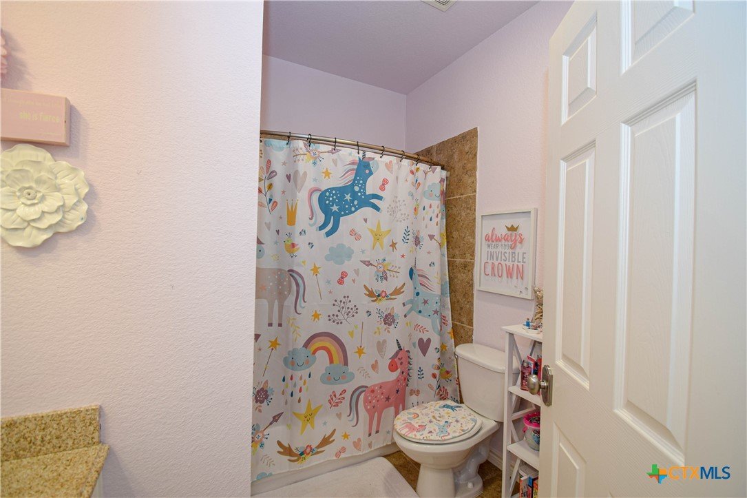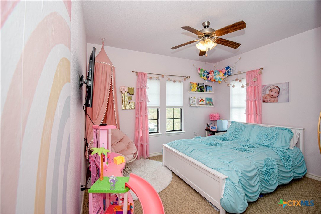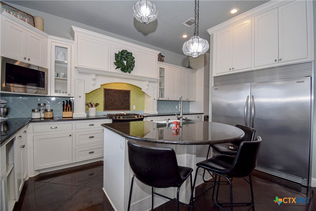Overlooking the 8th fairway of the Wildflower Country Club this contemporary-french inspired 5-bedroom, 4-bath residence offers timeless style and thoughtful detail throughout. Seller is offering a one year paid membership to the Wildflower Country Club for a Lifestyle Membership which allows access to the fitness center, swimming pool, dining, and social amenities at the Club for the entire family. Upon entering this unique property, stained concrete and wood floors pair beautifully with striking light fixtures and modern wall colors, creating a refined yet welcoming atmosphere. The kitchen is a true standout, featuring dramatic pendant lighting, custom white cabinetry with rich wood trim, double ovens, granite countertops, a large walk-in pantry, and a commercial-grade refrigerator/freezer—perfect for both everyday living and entertaining. A formal dining room with a built-in hutch provides a gracious entry from the decorative iron front door. A downstairs bedroom or study with a full bath adds flexibility and convenience. The spacious family room captivates from every angle, highlighted by tall windows overlooking the 8th fairway, a gas fireplace, and an iron banister leading upstairs. Upstairs, three secondary bedrooms each offer walk-in closets and access to private baths. The expansive primary suite opens to an additional bonus room ideal for another office space, nursery, homeschooling, a media room, or extra storage. The primary bath features a double vanity, oversized soaking tub, separate shower, and access to a private balcony—enhancing the distinctive appeal of this truly one-of-a-kind property.