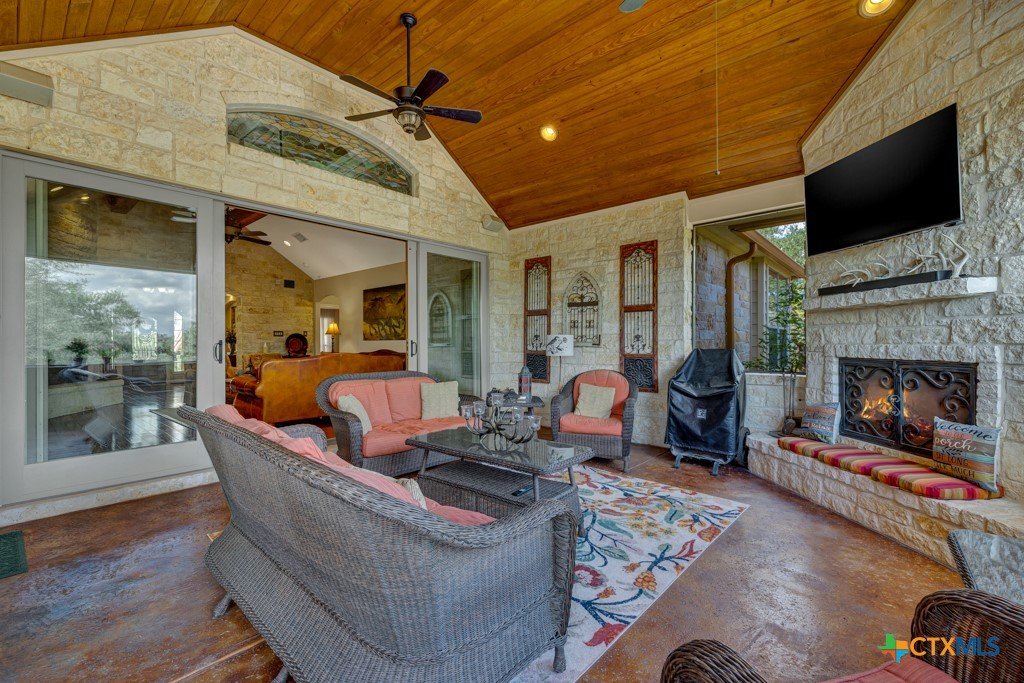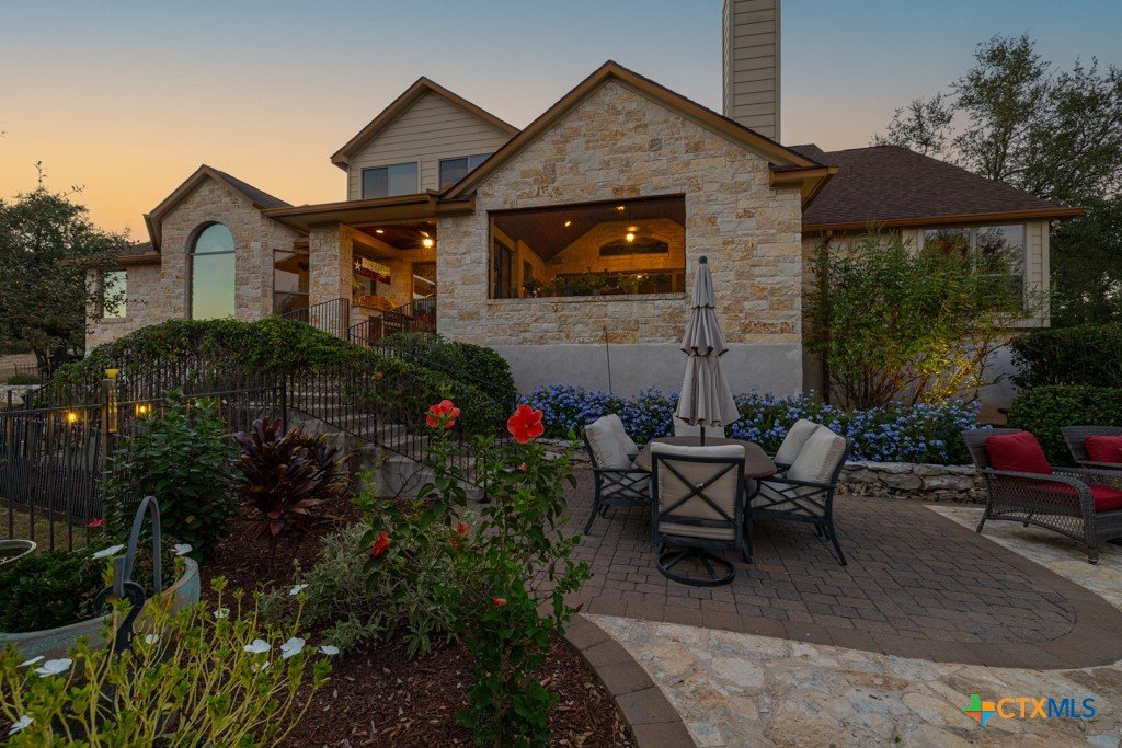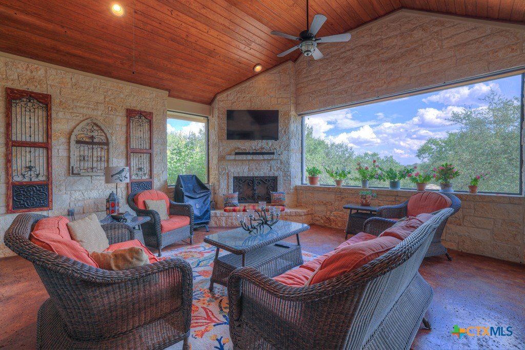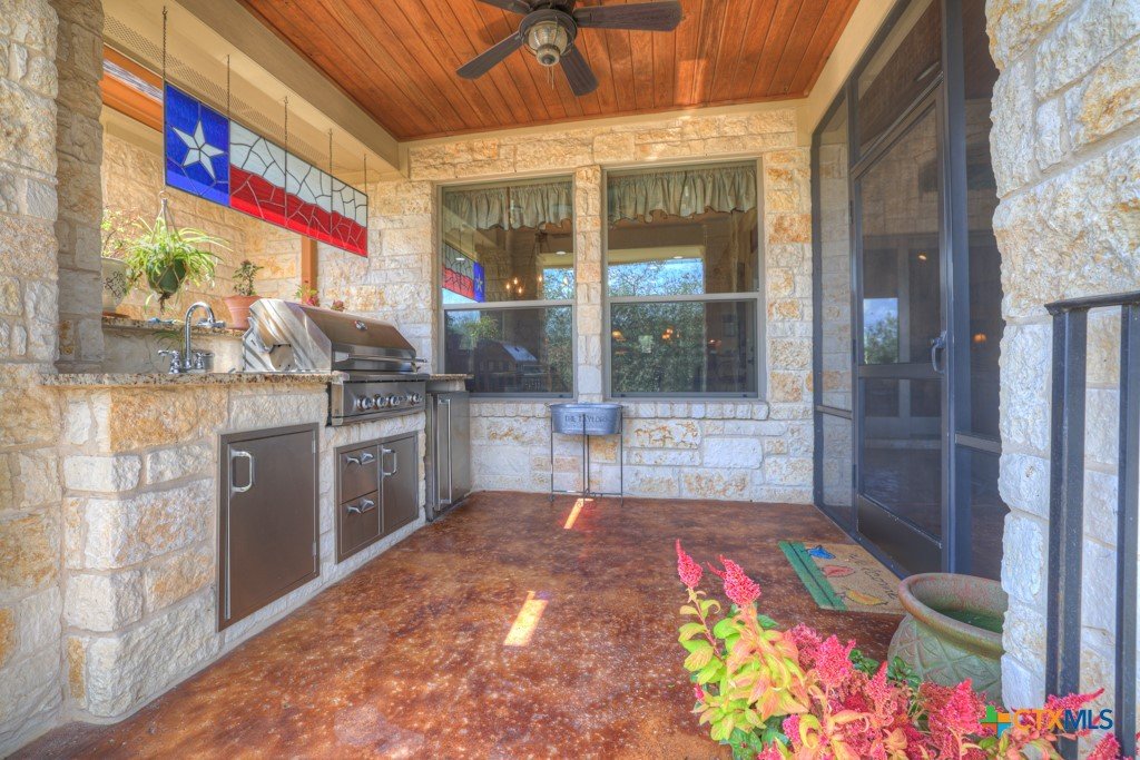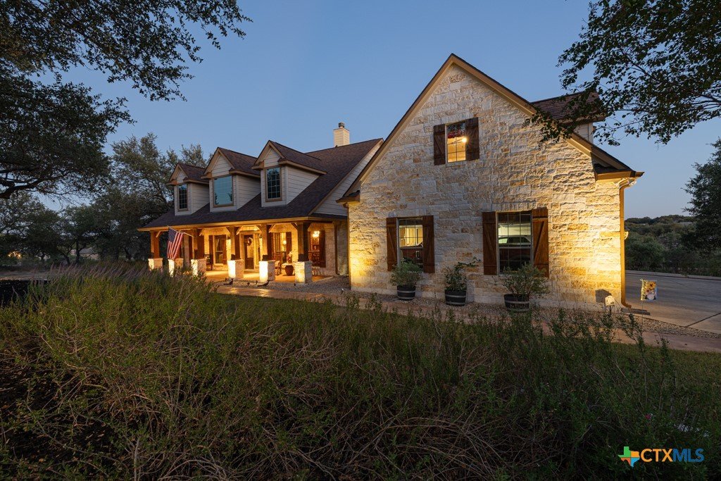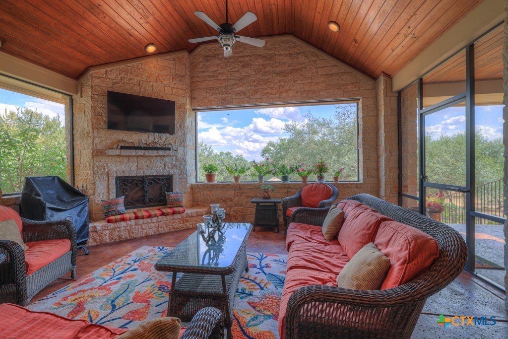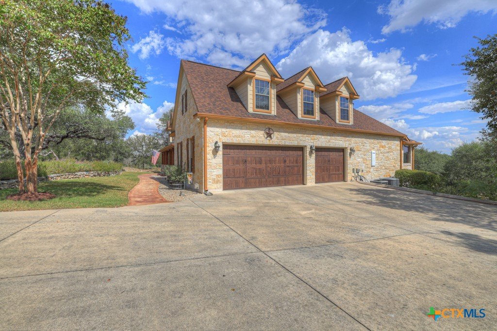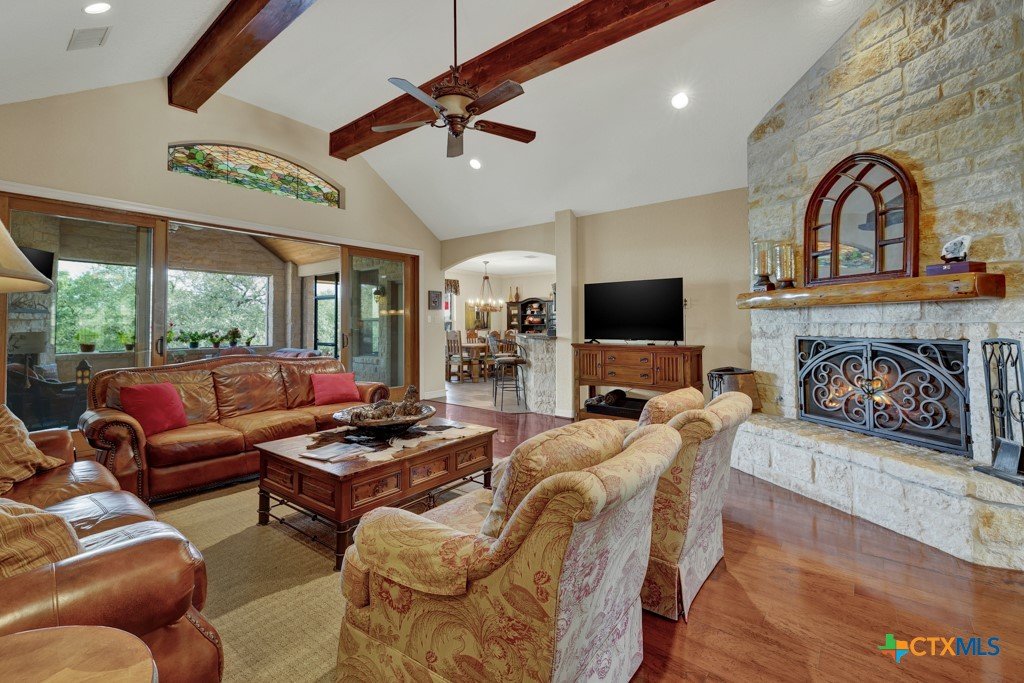 A TRUE HILL COUNTRY RETREAT WITH POOL on 2 BEAUTIFULLY LANDSCAPED ACRES Nestled among majestic oak trees, this stunning home captures the essence of Hill Country living-peaceful, private, and picturesque. From the moment you step inside, the open floor plan welcomes you with warmth and style. Thoughtfully designed for both comfort and function, the home features 4 spacious bedrooms plus a study, two dining areas, a versatile game room/man cave, 3.5 bathrooms, and a 3-car garage. The kitchen is a chef's delight with granite countertops, center island with a prep sink, a gas cooktop, double ovens, custom cabinetry, and two pantries-including one accented with charming barn doors. The only rooms upstairs are the large 4th bedroom, full bath, and the game room/man cave, offering privacy and flexibility for guests or hobbies. Step outside to your own private paradise. A spacious screened-in patio with a cozy fireplace overlooks the sparkling pool area which is enclosed by elegant iron fencing that keeps wildlife out while preserving the scenic Hill Country views. An outdoor kitchen makes entertaining and enjoying the outdoors fun and convenient. As day turns to night, the extensive landscape lighting showcases the home's beauty and creates an enchanting ambiance that highlights the architecture and natural surroundings. This home is more than a place to live-it's a lifestyle of comfort, elegance, and connection to nature. River Chase is known for it's incredible amenities: 33-acre park with clubhouse, pools, walking trails, tennis & pickleball courts, fitness center, playground, Veteran's park and fishing pond, PLUS a 58-acre park with private Guadalupe River access, pavilion, basketball court, bird viewing station, and miles of first class hiking trails - all for just $300 per year.