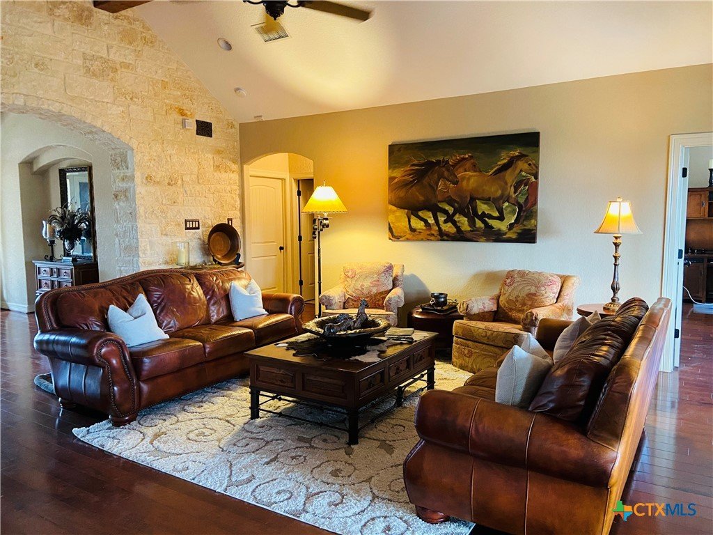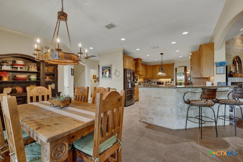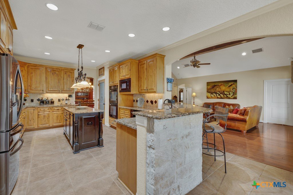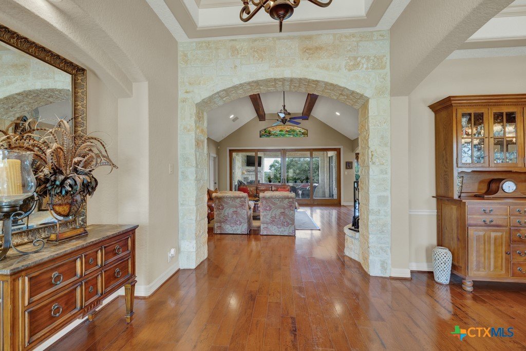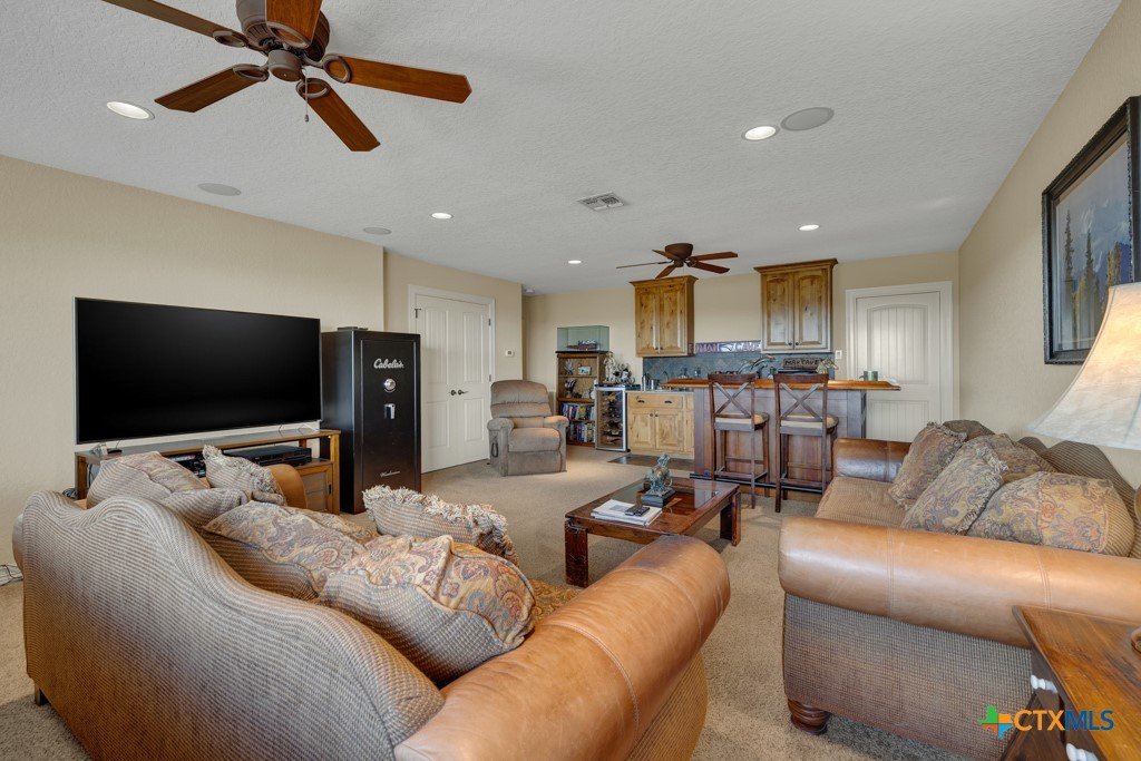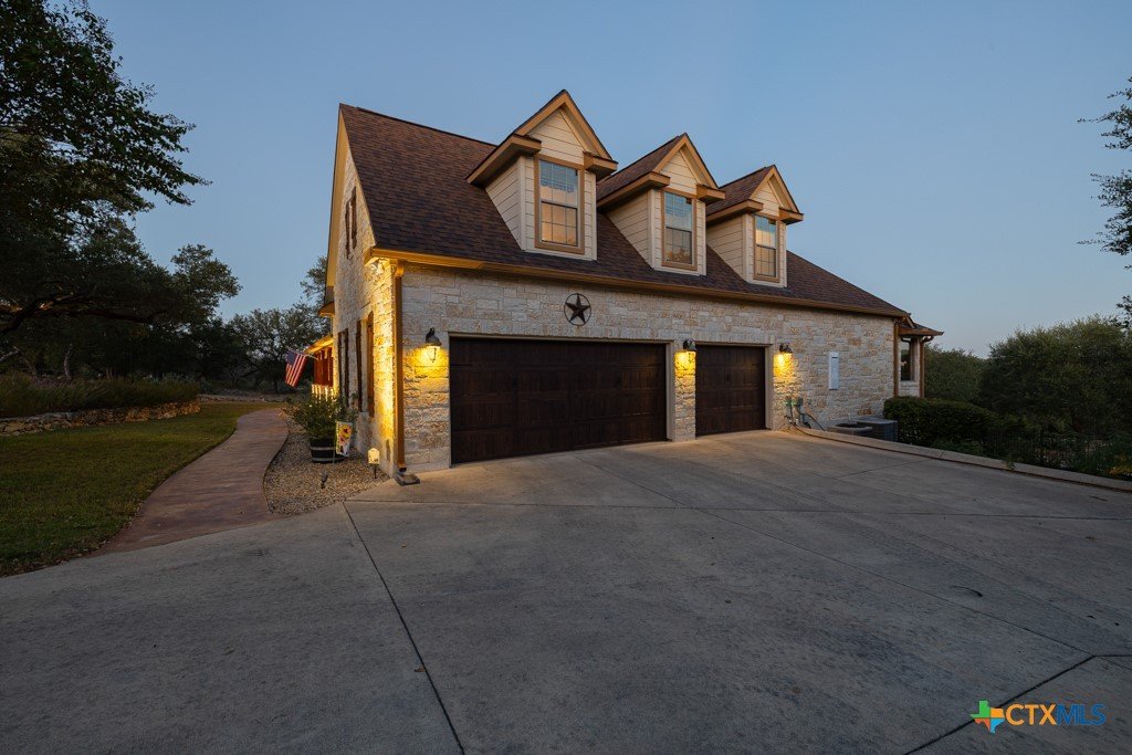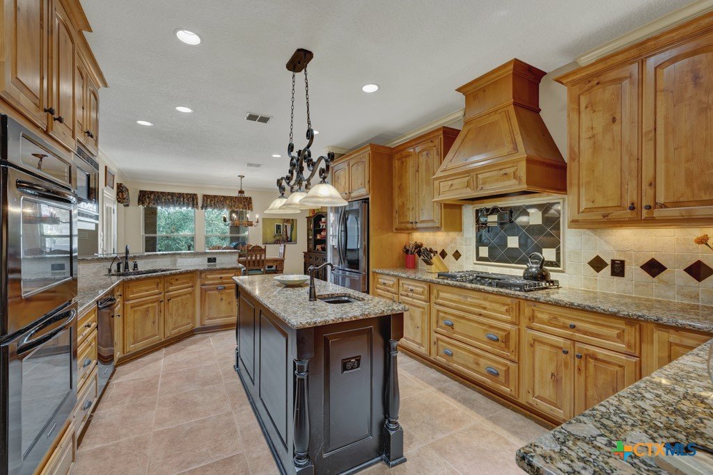 A TRUE HILL COUNTRY RETREAT WITH POOL on 2 BEAUTIFULLY LANDSCAPED ACRES Nestled among majestic oak trees, this stunning home captures the essence of Hill Country living-peaceful, private, and picturesque. From the moment you step inside, the open floor plan welcomes you with warmth and style. Thoughtfully designed for both comfort and function, the home features 4 spacious bedrooms plus a study, two dining areas, a versatile game room/man cave, 3.5 bathrooms, and a 3-car garage. The kitchen is a chef's delight with granite countertops, center island with a prep sink, a gas cooktop, double ovens, custom cabinetry, and two pantries-including one accented with charming barn doors. The only rooms upstairs are the large 4th bedroom, full bath, and the game room/man cave, offering privacy and flexibility for guests or hobbies. Step outside to your own private paradise. A spacious screened-in patio with a cozy fireplace overlooks the sparkling pool area which is enclosed by elegant iron fencing that keeps wildlife out while preserving the scenic Hill Country views. An outdoor kitchen makes entertaining and enjoying the outdoors fun and convenient. As day turns to night, the extensive landscape lighting showcases the home's beauty and creates an enchanting ambiance that highlights the architecture and natural surroundings. This home is more than a place to live-it's a lifestyle of comfort, elegance, and connection to nature. River Chase is known for it's incredible amenities: 33-acre park with clubhouse, pools, walking trails, tennis & pickleball courts, fitness center, playground, Veteran's park and fishing pond, PLUS a 58-acre park with private Guadalupe River access, pavilion, basketball court, bird viewing station, and miles of first class hiking trails - all for just $300 per year.