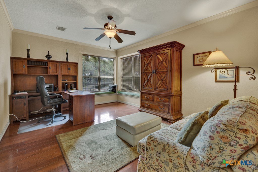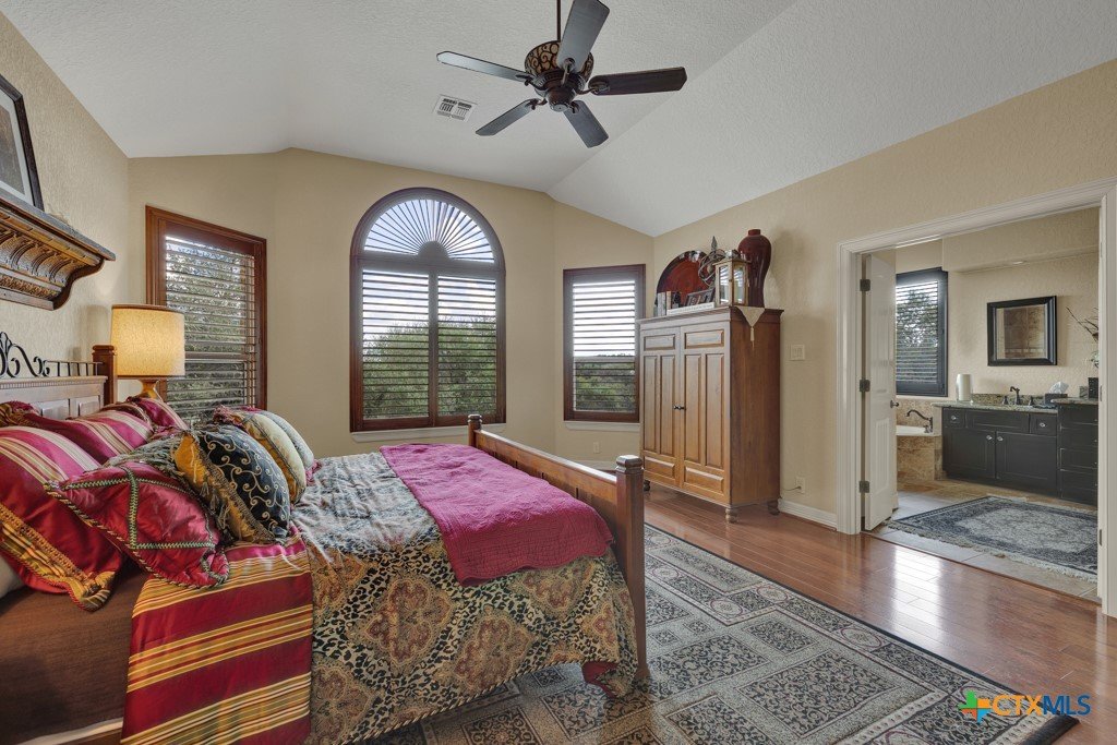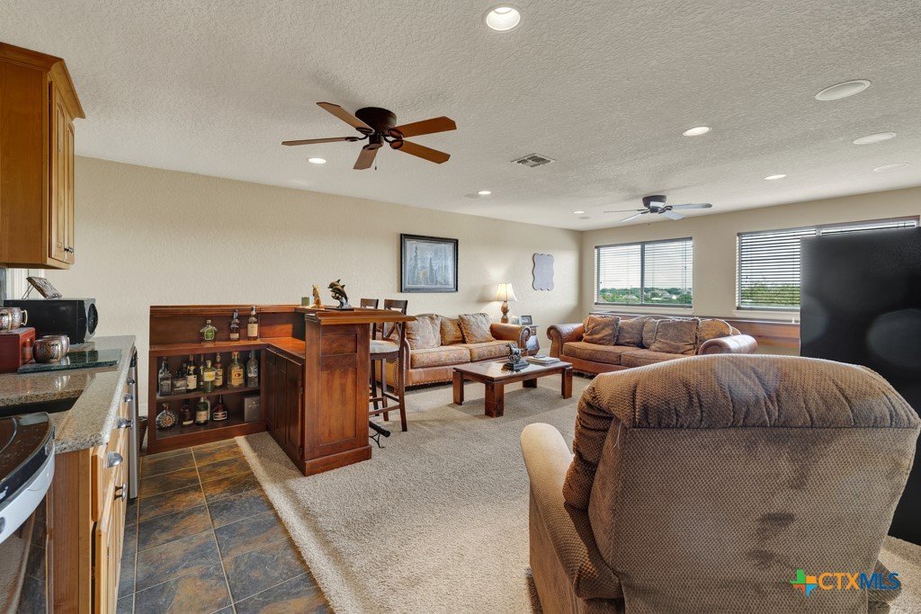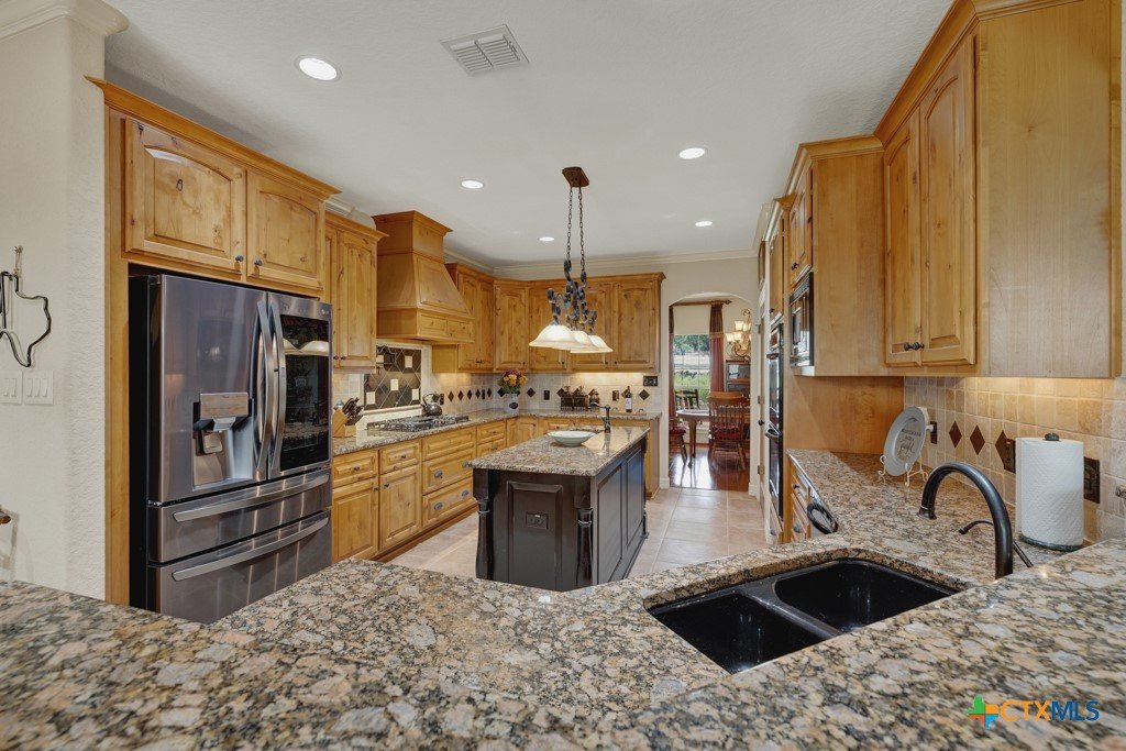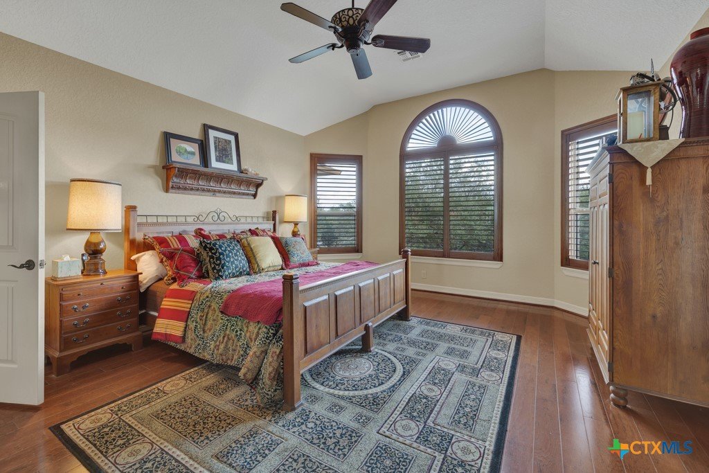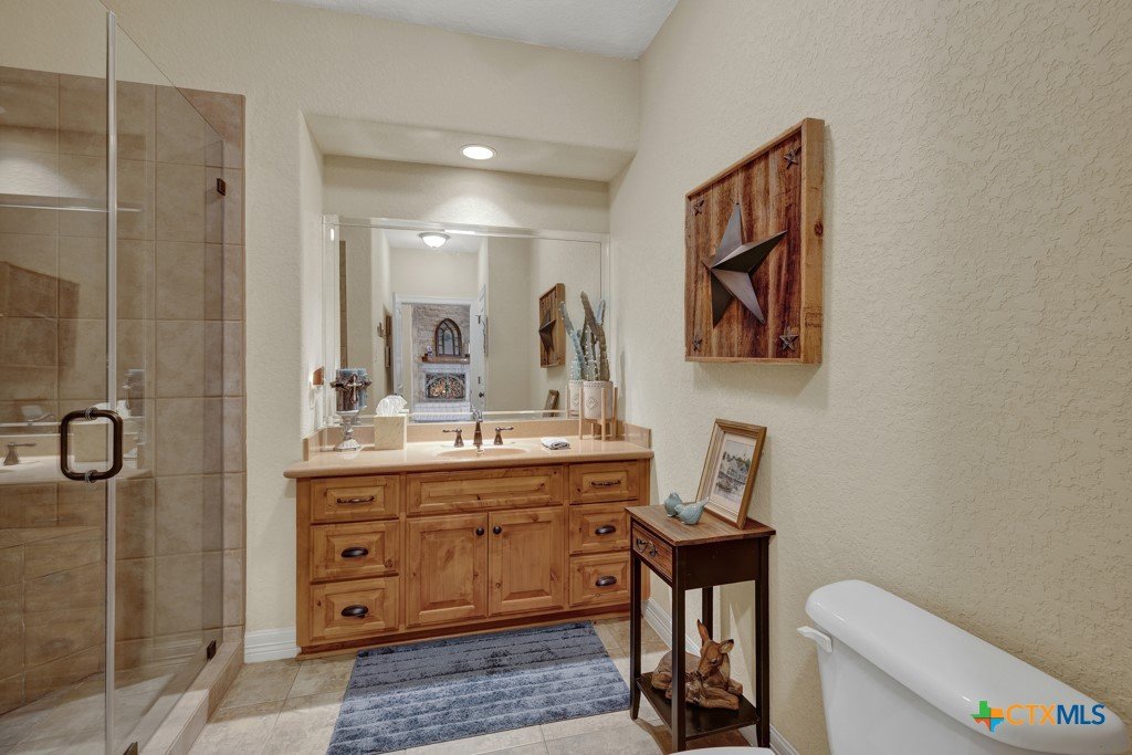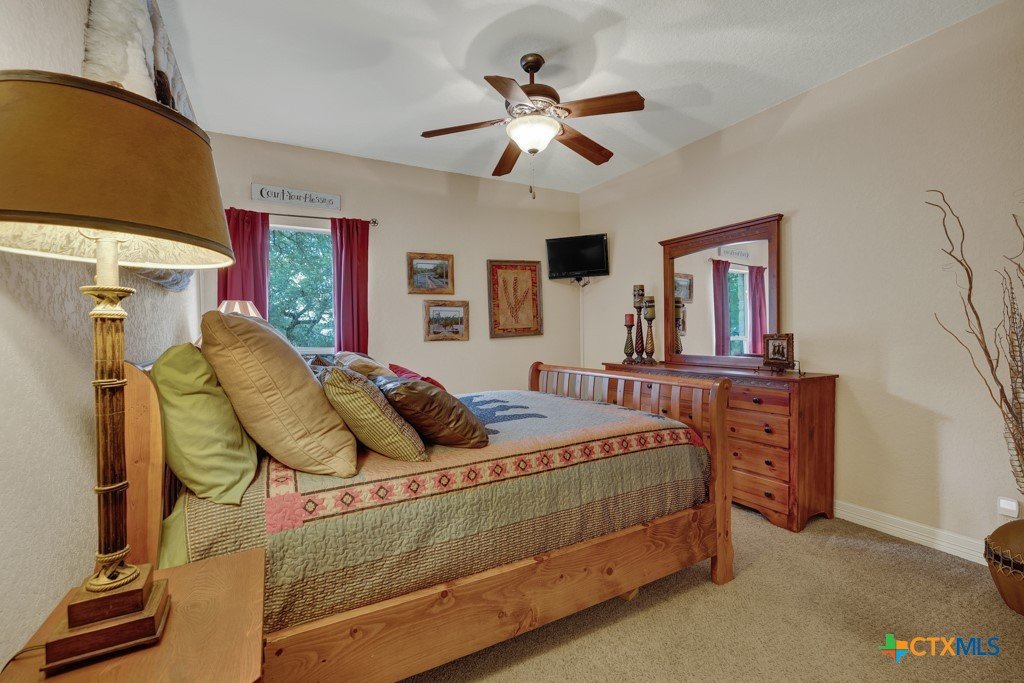 A TRUE HILL COUNTRY RETREAT WITH POOL on 2 BEAUTIFULLY LANDSCAPED ACRES Nestled among majestic oak trees, this stunning home captures the essence of Hill Country living-peaceful, private, and picturesque. From the moment you step inside, the open floor plan welcomes you with warmth and style. Thoughtfully designed for both comfort and function, the home features 4 spacious bedrooms plus a study, two dining areas, a versatile game room/man cave, 3.5 bathrooms, and a 3-car garage. The kitchen is a chef's delight with granite countertops, center island with a prep sink, a gas cooktop, double ovens, custom cabinetry, and two pantries-including one accented with charming barn doors. The only rooms upstairs are the large 4th bedroom, full bath, and the game room/man cave, offering privacy and flexibility for guests or hobbies. Step outside to your own private paradise. A spacious screened-in patio with a cozy fireplace overlooks the sparkling pool area which is enclosed by elegant iron fencing that keeps wildlife out while preserving the scenic Hill Country views. An outdoor kitchen makes entertaining and enjoying the outdoors fun and convenient. As day turns to night, the extensive landscape lighting showcases the home's beauty and creates an enchanting ambiance that highlights the architecture and natural surroundings. This home is more than a place to live-it's a lifestyle of comfort, elegance, and connection to nature. River Chase is known for it's incredible amenities: 33-acre park with clubhouse, pools, walking trails, tennis & pickleball courts, fitness center, playground, Veteran's park and fishing pond, PLUS a 58-acre park with private Guadalupe River access, pavilion, basketball court, bird viewing station, and miles of first class hiking trails - all for just $300 per year.