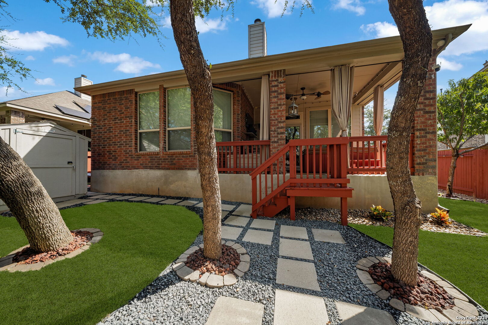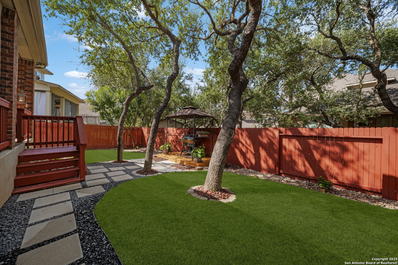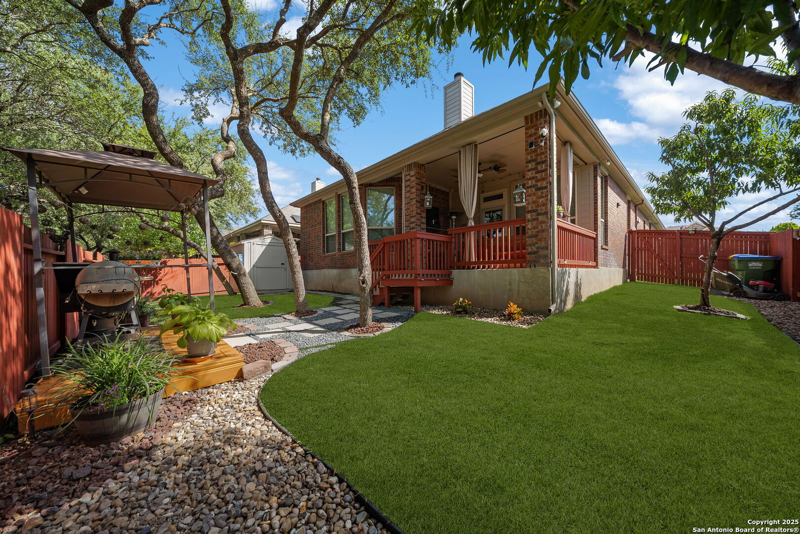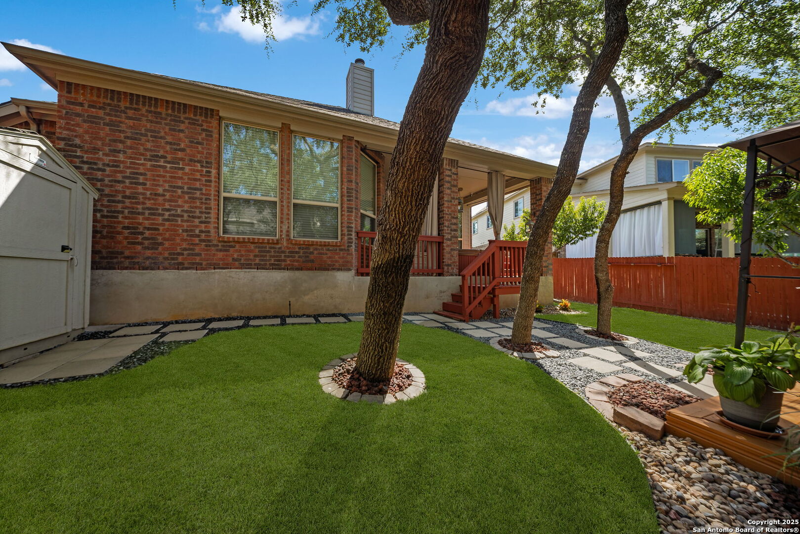 Own this 1 story home (with a bonus space and full bath upstairs) and truly have the home that is the envy of all the neighbors. From the moment you drive up to this charming home you will be impressed by the landscaping which exudes pride in ownership. Bamboo wood floors, updated lighting and a chef's kitchen welcome you when you step inside. Four bedrooms plus 4 full baths offer the true ideal floorplan for those in your household. All of the bedrooms and 3 of the full bathrooms are on the main level of this home with a perfect flex room and full bath upstairs (could even serve as a 5th bedroom or the perfect work from home space). One of the best selling features of this home is the private backyard with a hot tub and covered patio for enjoying cocktails in the evenings shade in the summer or hot cocoa on a chilly night in the Fall. This home is truly move in ready with a refreshed backyard, both water heaters replaced 2 years ago and a 2025 water softener and dishwasher as well as 4 exterior hardwired security cameras and two monitors that convey with the home. As an additional feature, the home was recently equipped with an emergency generator backup system. The included generator is set up to operate on natural gas eliminating the need to refuel. It also has a remote start feature allowing operation without having to go outside. You won't be disappointed in 12206 Chambers Cove!