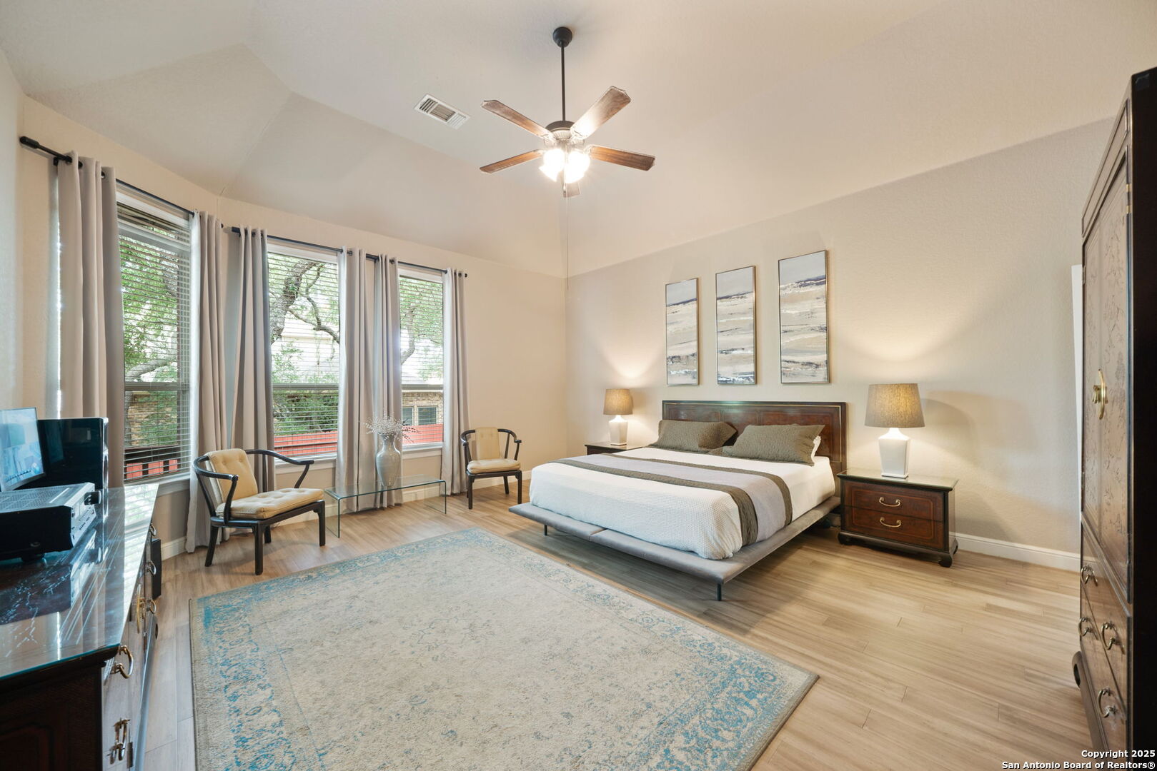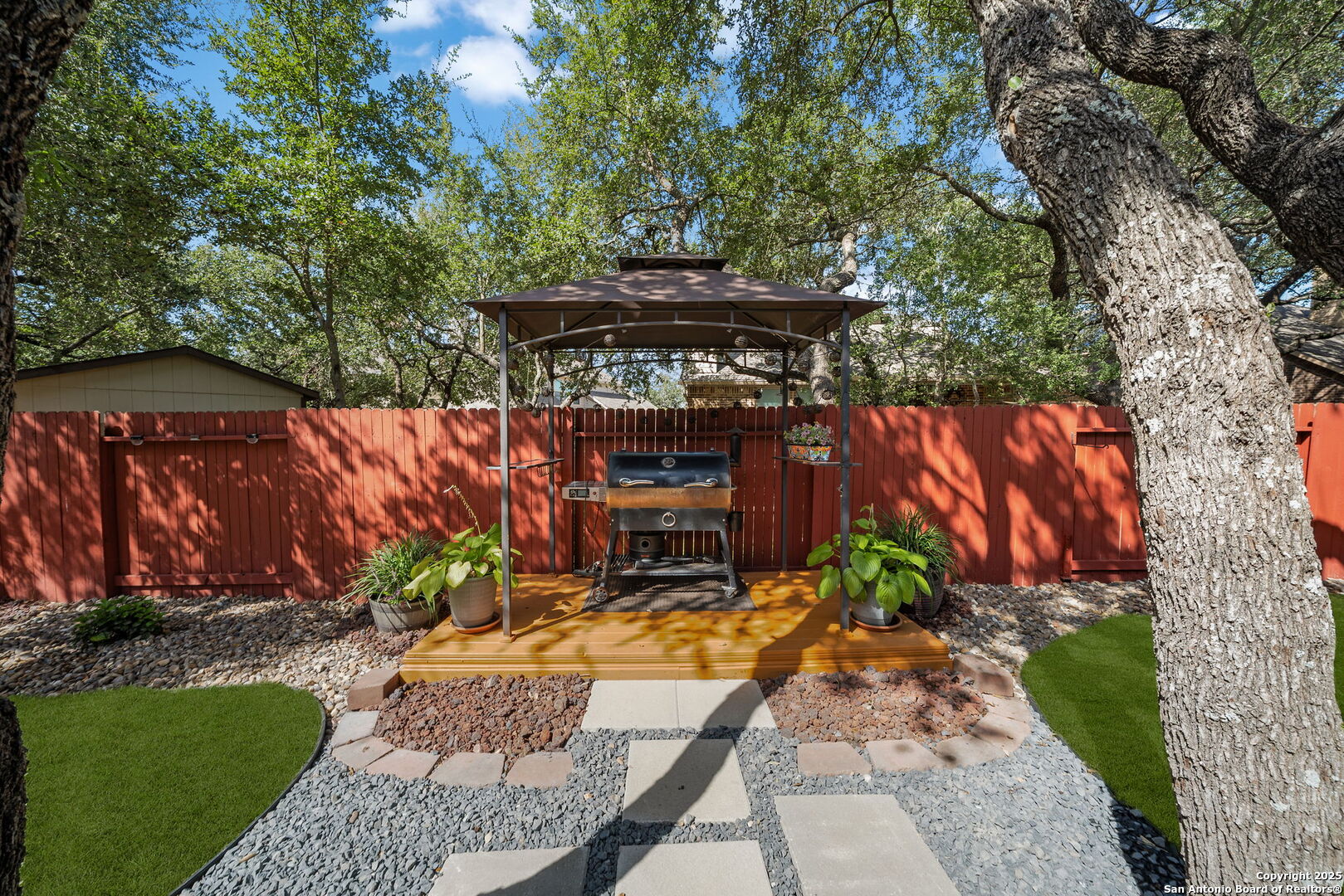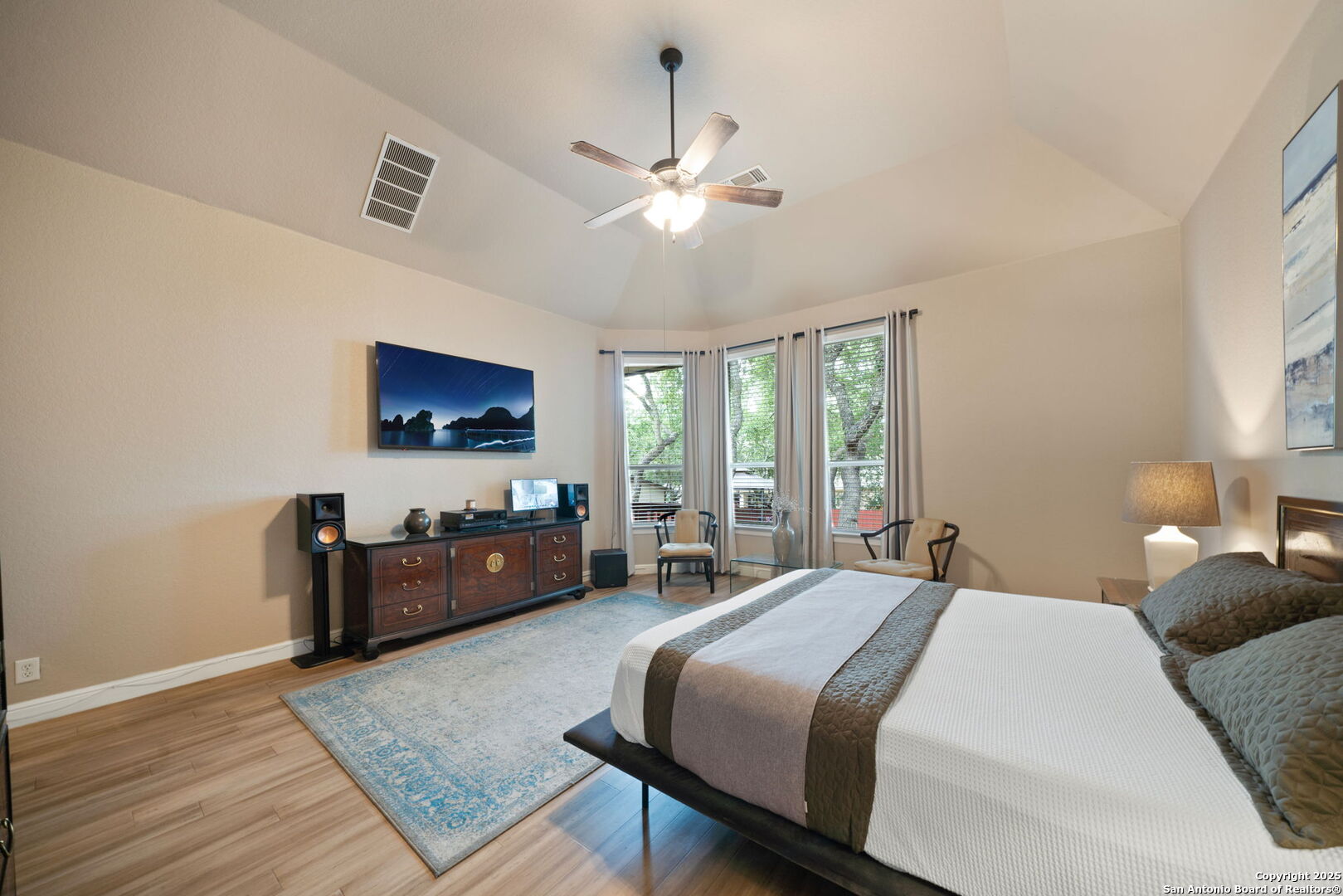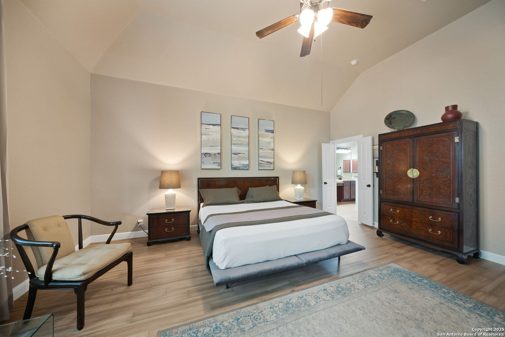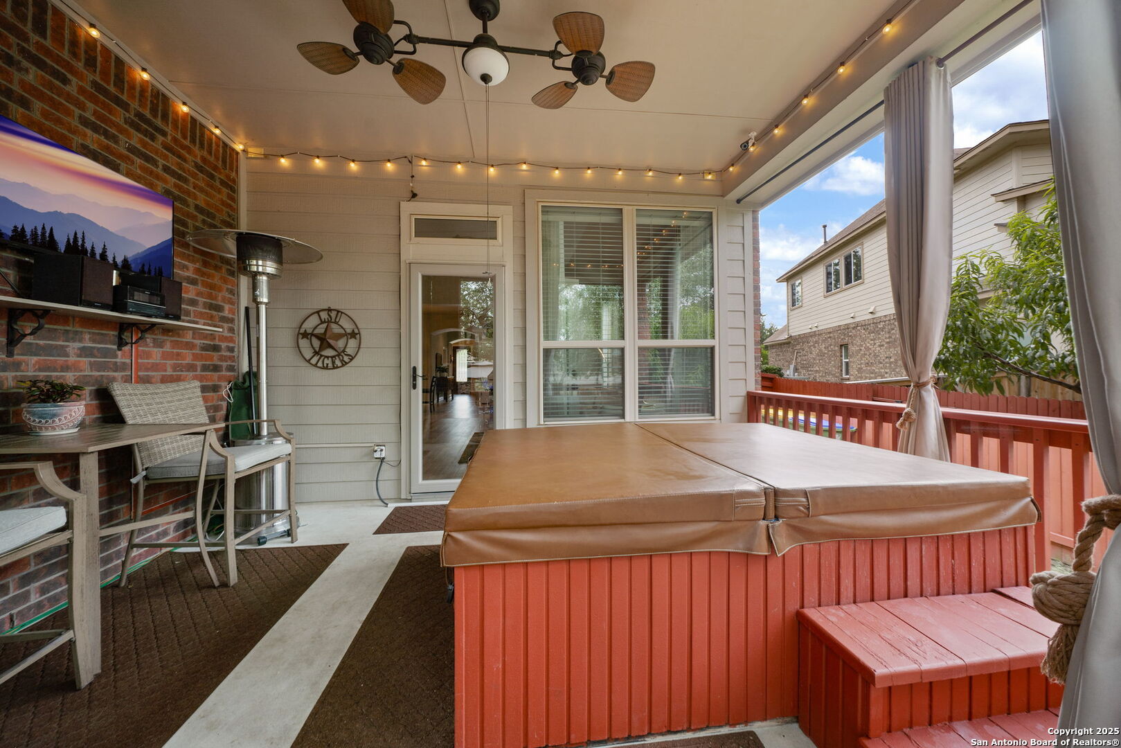 Own this 1 story home (with a bonus space and full bath upstairs) and truly have the home that is the envy of all the neighbors. From the moment you drive up to this charming home you will be impressed by the landscaping which exudes pride in ownership. Bamboo wood floors, updated lighting and a chef's kitchen welcome you when you step inside. Four bedrooms plus 4 full baths offer the true ideal floorplan for those in your household. All of the bedrooms and 3 of the full bathrooms are on the main level of this home with a perfect flex room and full bath upstairs (could even serve as a 5th bedroom or the perfect work from home space). One of the best selling features of this home is the private backyard with a hot tub and covered patio for enjoying cocktails in the evenings shade in the summer or hot cocoa on a chilly night in the Fall. This home is truly move in ready with a refreshed backyard, both water heaters replaced 2 years ago and a 2025 water softener and dishwasher as well as 4 exterior hardwired security cameras and two monitors that convey with the home. As an additional feature, the home was recently equipped with an emergency generator backup system. The included generator is set up to operate on natural gas eliminating the need to refuel. It also has a remote start feature allowing operation without having to go outside. You won't be disappointed in 12206 Chambers Cove!
