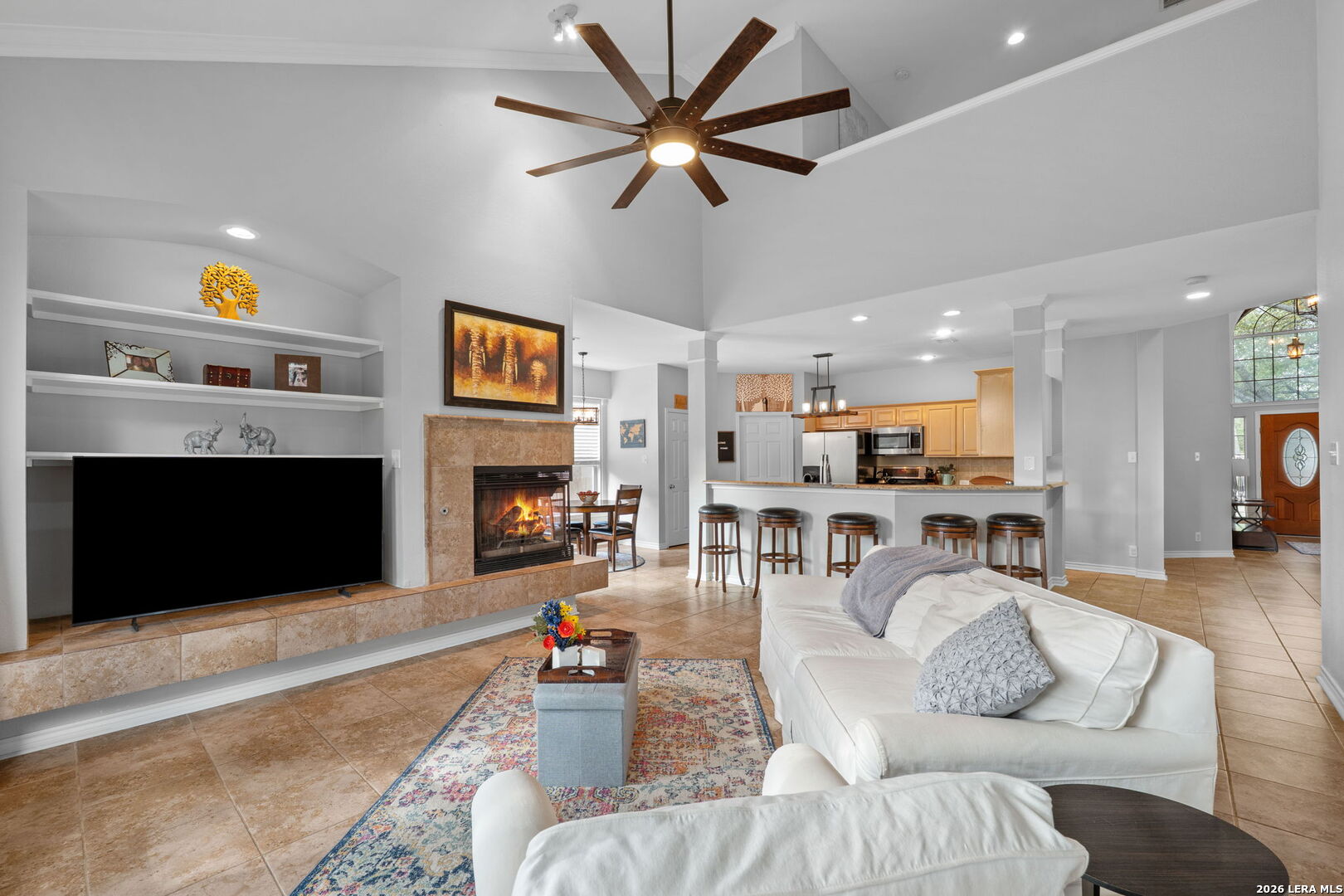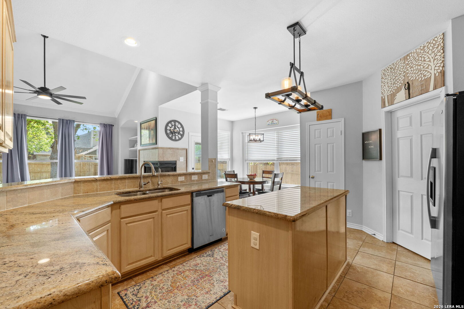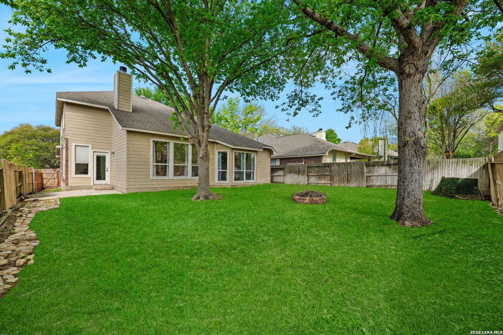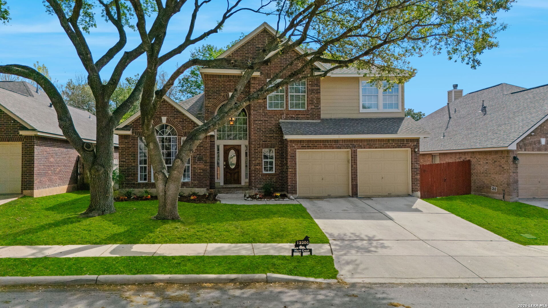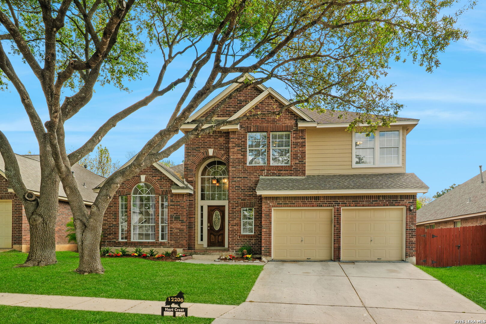 *OPEN HOUSE: 3/28 | 1PM-4PM.* Beautiful two story home in Hart Ranch featuring a classic brick exterior and a spacious layout designed for both everyday living and entertaining. From the moment you walk in, you are greeted by high ceilings, an open floor plan, and an abundance of natural light flowing through elegant large windows throughout the home. Inside offers three living areas and a formal dining room, giving flexibility for gatherings, work, or relaxation. The main living room stands out with vaulted ceilings and a wood burning fireplace, creating a warm and inviting focal point. The kitchen is well equipped with stainless steel appliances, granite countertops, and a generous breakfast bar that can seat up to five. An elegant stairwell leads upstairs to a versatile loft area and game room, providing additional space to fit a variety of needs. The primary suite downstairs offers privacy and comfort, complete with a bathroom featuring a separate soaking tub and shower, along with double vanities. Upgrades include a water softener, reverse osmosis filtration system, and recessed lighting throughout. Step outside to enjoy a private backyard with a patio slab, mature trees, and a privacy fence, creating a peaceful outdoor setting. Residents of Hart Ranch enjoy access to a community pool, basketball court, clubhouse, and playground, all within a thoughtfully designed neighborhood with a single entrance and exit. Conveniently located with easy access to I-10, and just minutes from the Medical Center, USAA, Downtown San Antonio, and La Cantera, this home offers both comfort and accessibility in a central location.