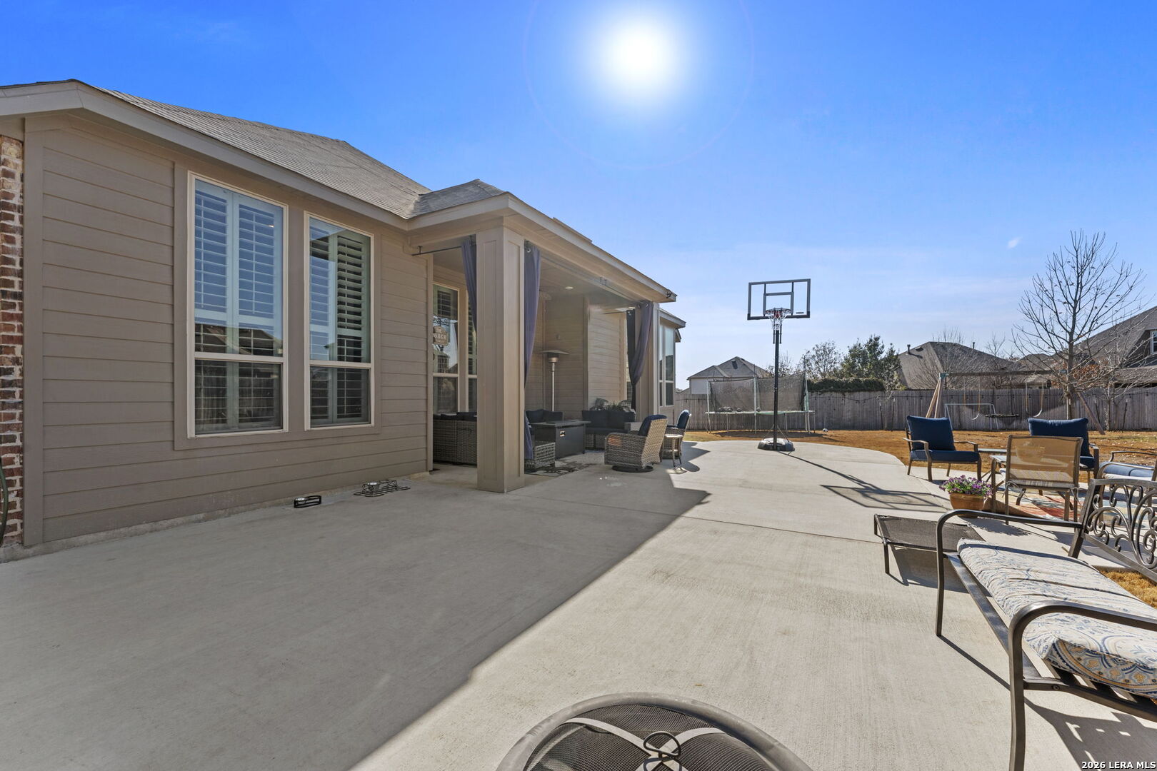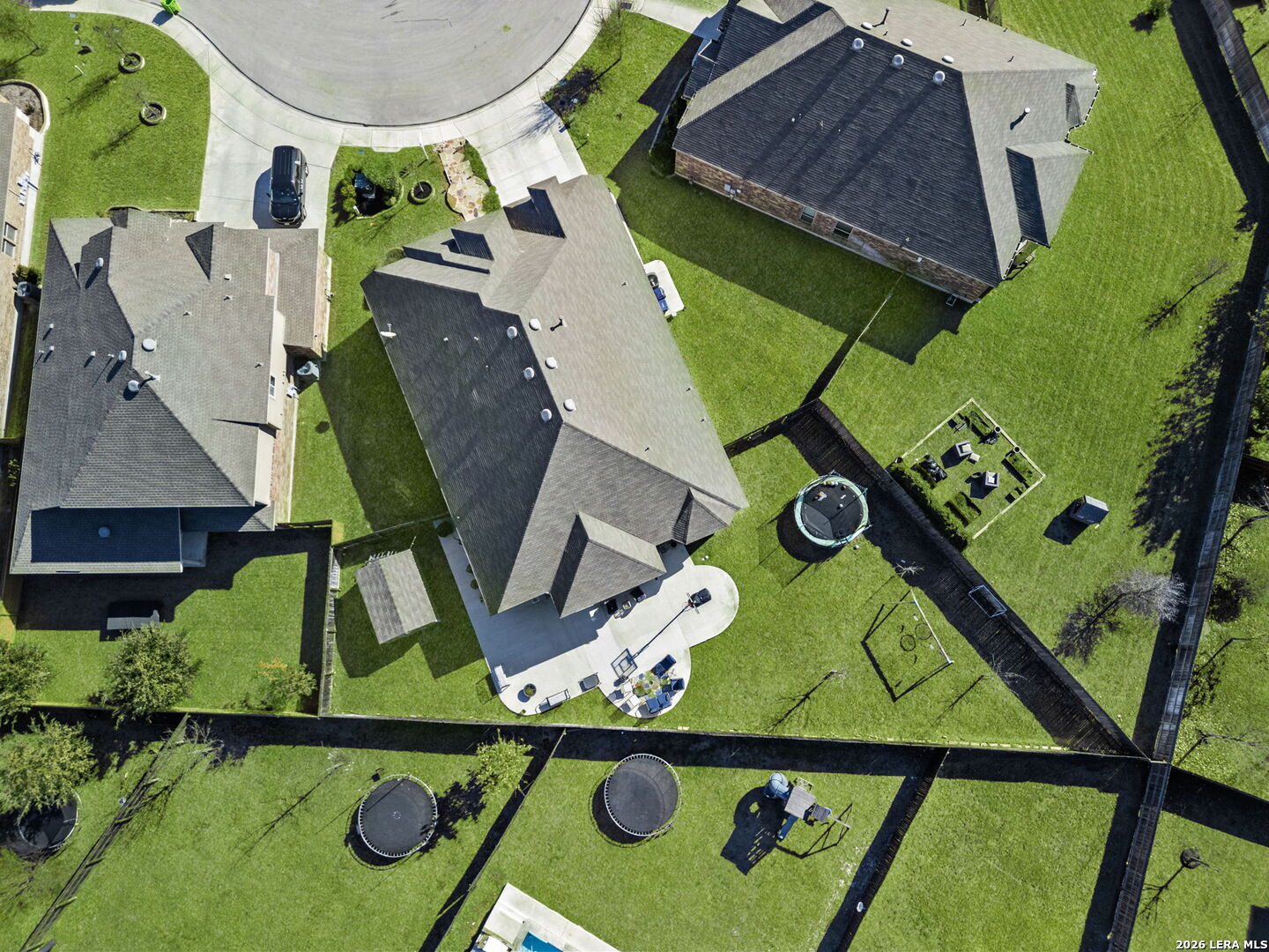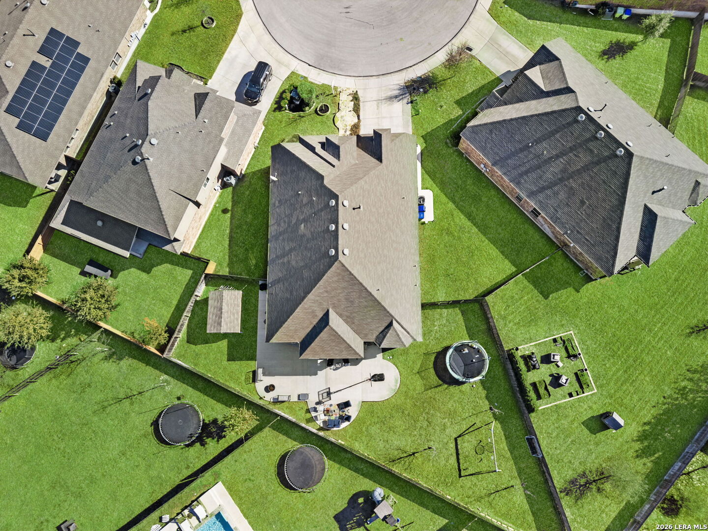 Welcome to this beautifully maintained Highland Home in the sought-after Davis Ranch community. Situated on a spacious quarter-acre cul-de-sac lot, this floor plan offers an ideal blend of comfort and functionality with four bedrooms, three full bathrooms, a private study, an additional flex space, and a dedicated media room. The main living areas feature elegant tile flooring, while plush carpet adds warmth to the bedrooms and media space. Thoughtfully selected upgrades are found throughout the home, including custom window shutters, eight-foot interior doors, oil-rubbed bronze fixtures, and ceiling fans in every room. The primary suite is a true retreat, highlighted by a bay window and an expansive walk-in closet. Outdoor living is enhanced by an extended covered patio and a storage shed, perfect for added convenience. Residents enjoy access to a nearby HOA pool and park, just a short walk away. This home is ideally positioned near JBSA military bases, major highways, and a variety of shopping and dining options, this location offers both ease and accessibility. Schedule your showing today and experience everything this exceptional property has to offer!