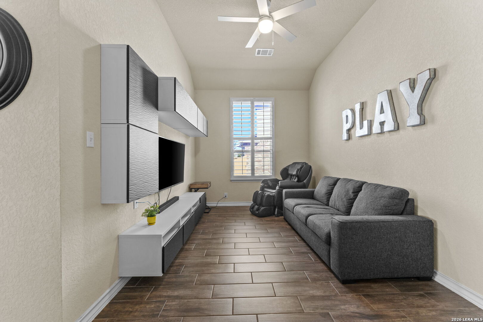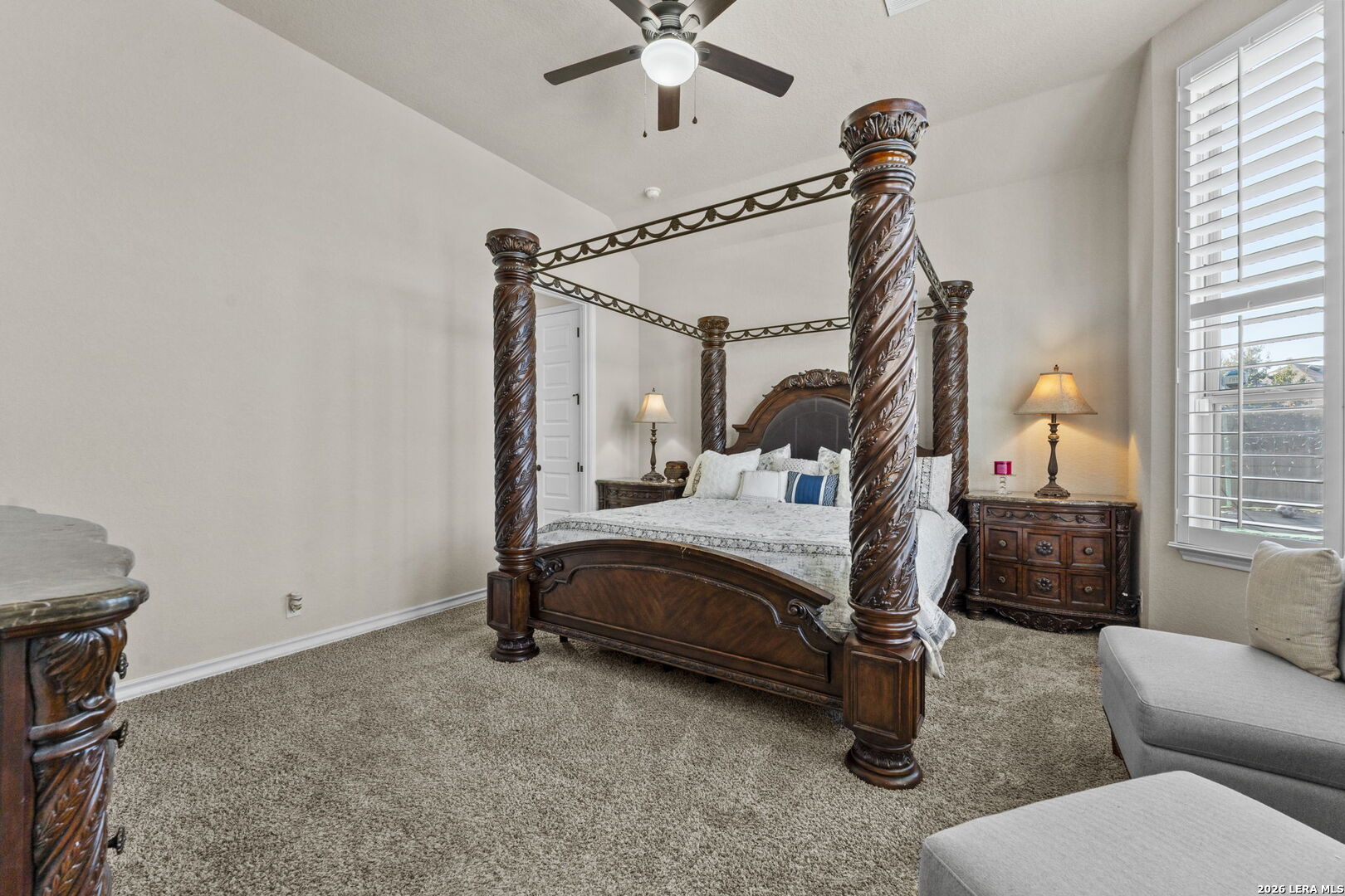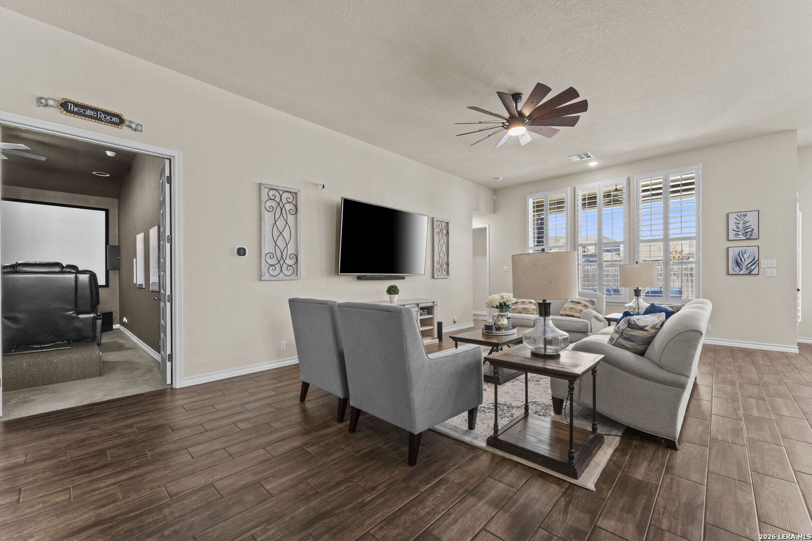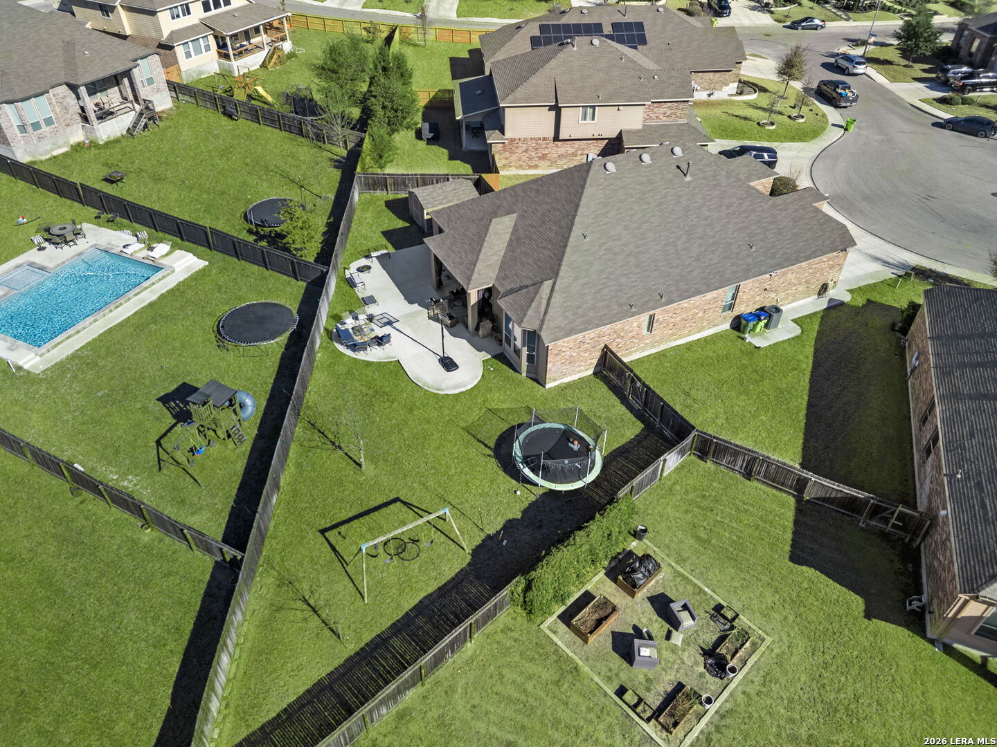 Welcome to this beautifully maintained Highland Home in the sought-after Davis Ranch community. Situated on a spacious quarter-acre cul-de-sac lot, this floor plan offers an ideal blend of comfort and functionality with four bedrooms, three full bathrooms, a private study, an additional flex space, and a dedicated media room. The main living areas feature elegant tile flooring, while plush carpet adds warmth to the bedrooms and media space. Thoughtfully selected upgrades are found throughout the home, including custom window shutters, eight-foot interior doors, oil-rubbed bronze fixtures, and ceiling fans in every room. The primary suite is a true retreat, highlighted by a bay window and an expansive walk-in closet. Outdoor living is enhanced by an extended covered patio and a storage shed, perfect for added convenience. Residents enjoy access to a nearby HOA pool and park, just a short walk away. This home is ideally positioned near JBSA military bases, major highways, and a variety of shopping and dining options, this location offers both ease and accessibility. Schedule your showing today and experience everything this exceptional property has to offer!