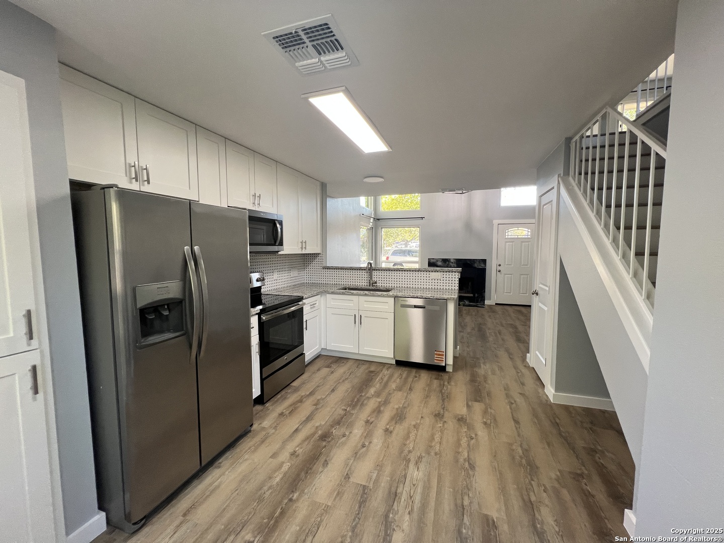 Welcome to this beautifully updated 3-bedroom, 2 1/2 bath duplex, offering modern upgrades, comfort, and convenience.This home features an open-concept layout with brand-new flooring, fresh paint, lighting, and designer finishes throughout. The kitchen boasts stainless steel appliances, granite countertops, and new cabinetry - perfect for cooking and entertaining.The primary suite includes a private bath with a walk-in shower, while the two additional bedrooms provide flexibility for guests, family, or a home office. Both bathrooms feature modern fixtures and stylish tile work. Residents enjoy access to community amenities including a swimming pool, tennis courts and well-maintained outdoor areas. The home is also conveniently located next to McCallister Park and near major freeways.