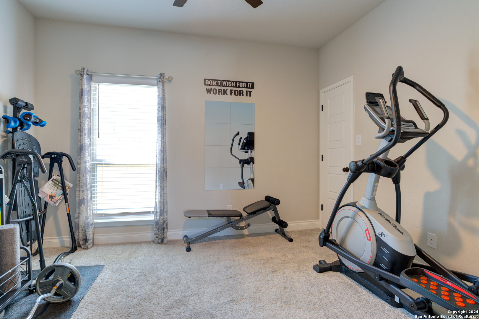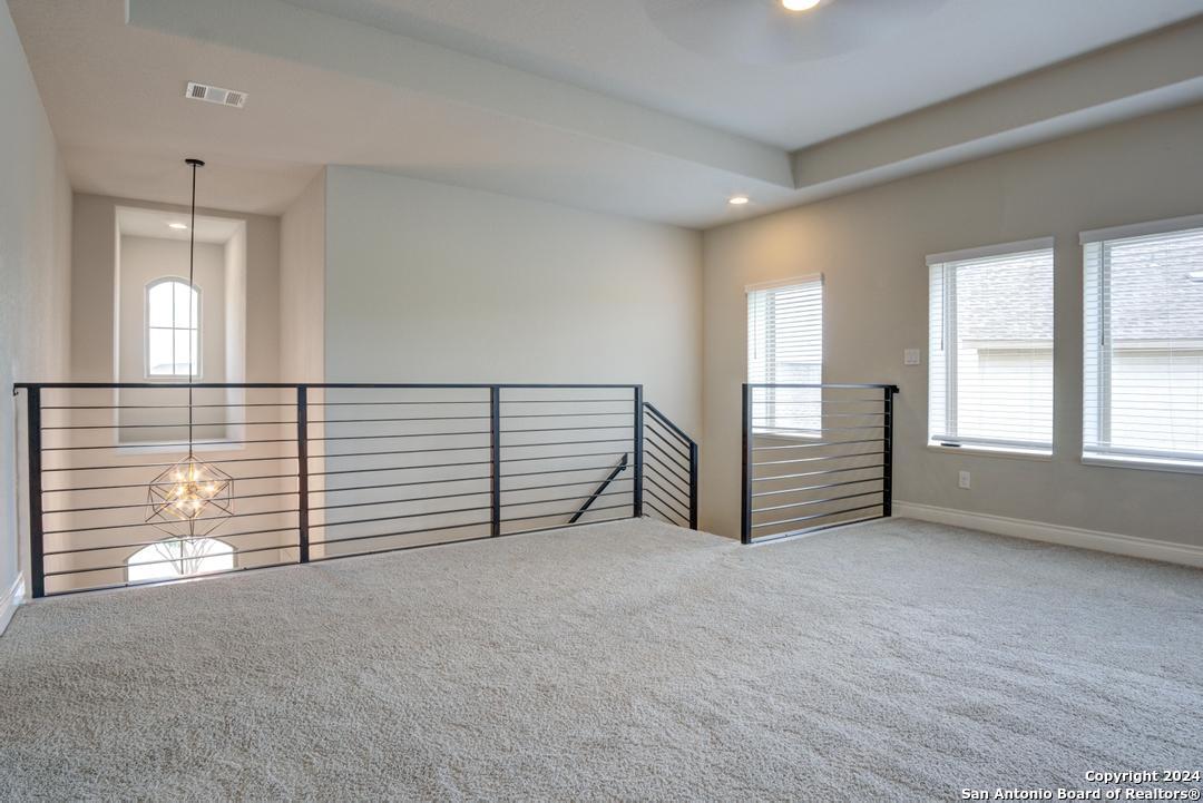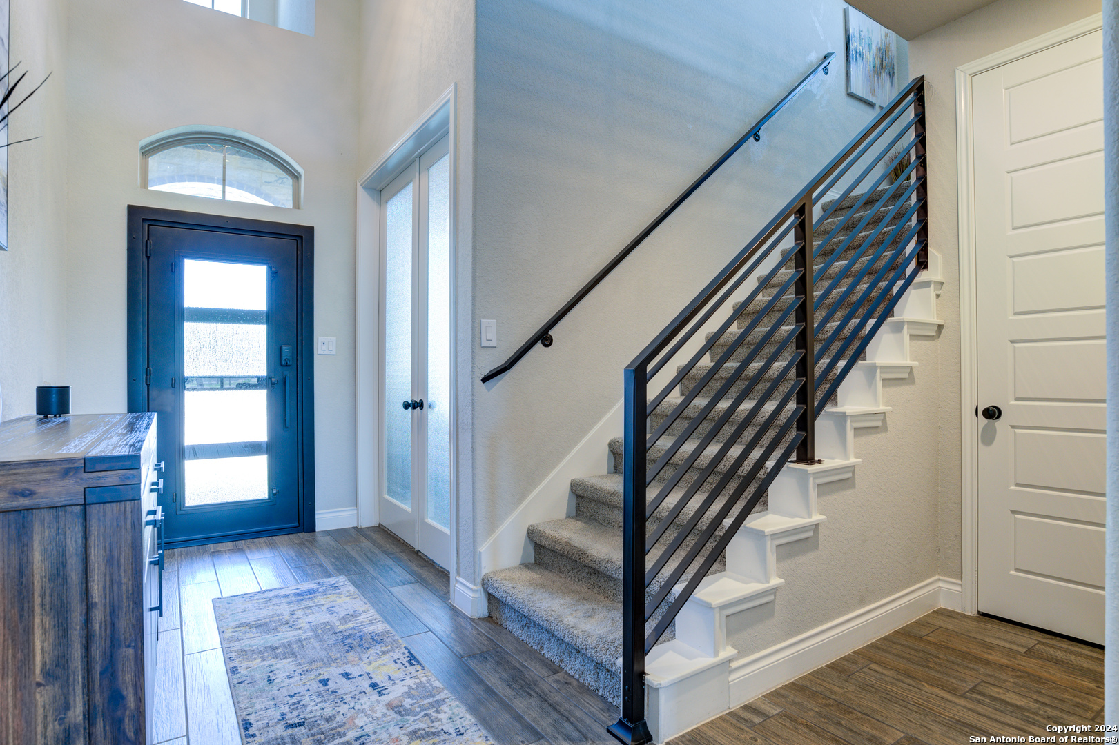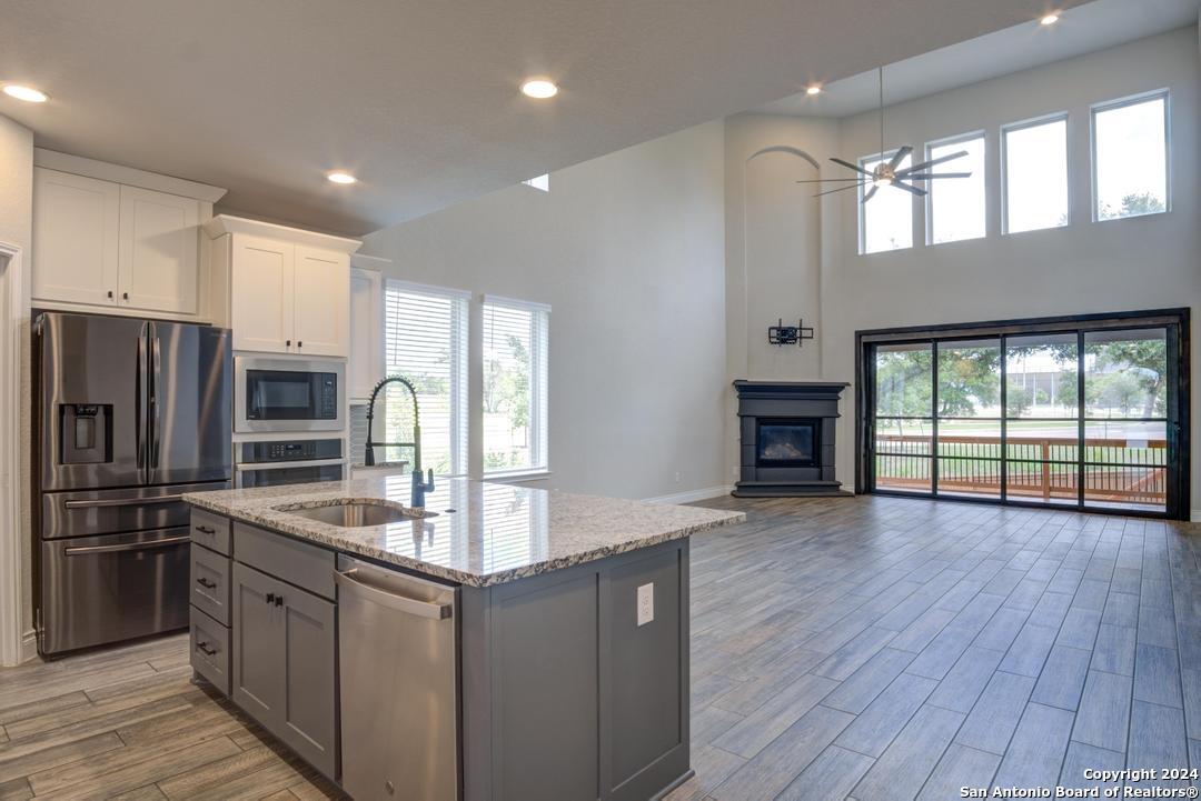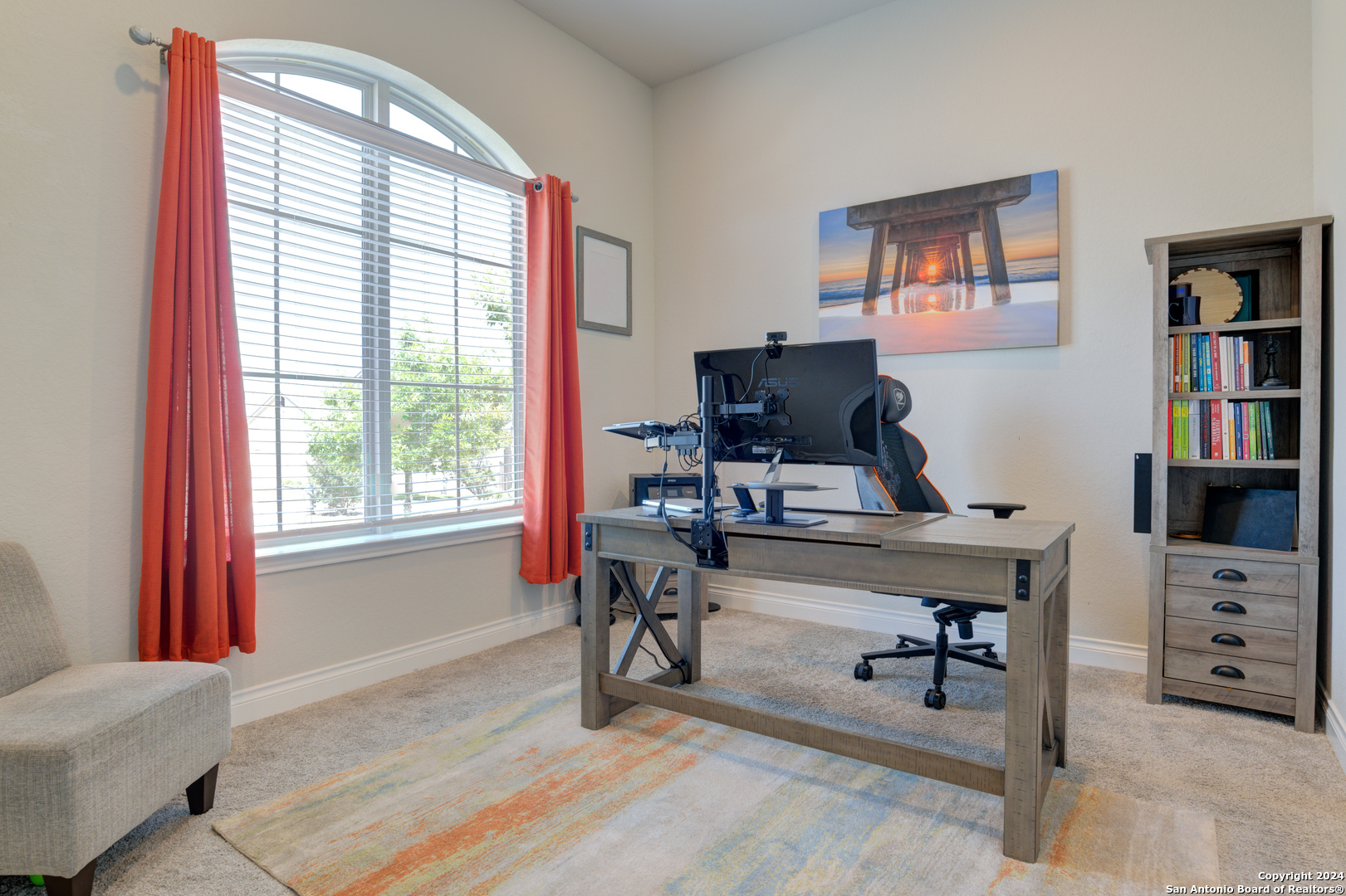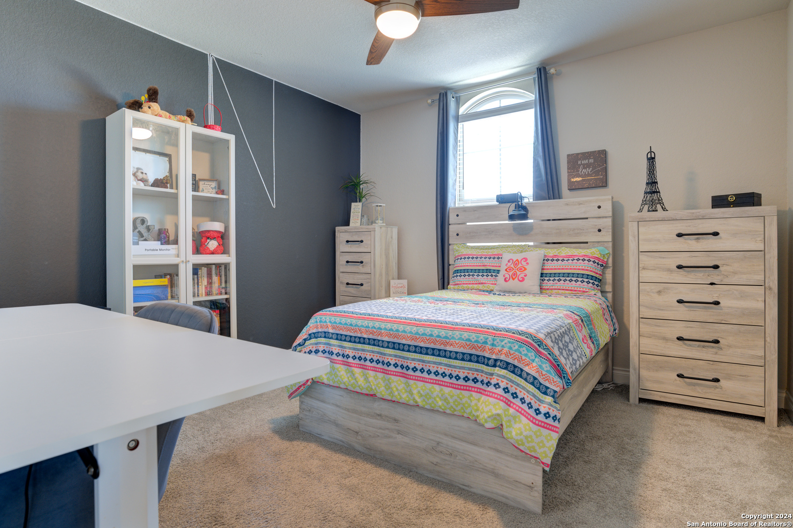 Welcome to a meticulously maintained 4-bedroom, 3 bathroom home in the desirable Kinder Ranch community. Currently owned by a military family, this home reflects pride and discipline with regular upkeep and care. Enjoy an inviting living space with high ceilings, a modern kitchen with stainless steel appliances, and an expansive master suite with a walk-in closet and spa-like bathroom. The private backyard with a covered patio with an eye popping iron door is perfect for outdoor activities. Kinder Ranch offers amenities like a community pool, playground, and walking trails. Conveniently located near major highways, this home provides easy access to military bases, shopping, dining, and top-rated Comal ISD schools. Experience the best of San Antonio living. Schedule a showing today!