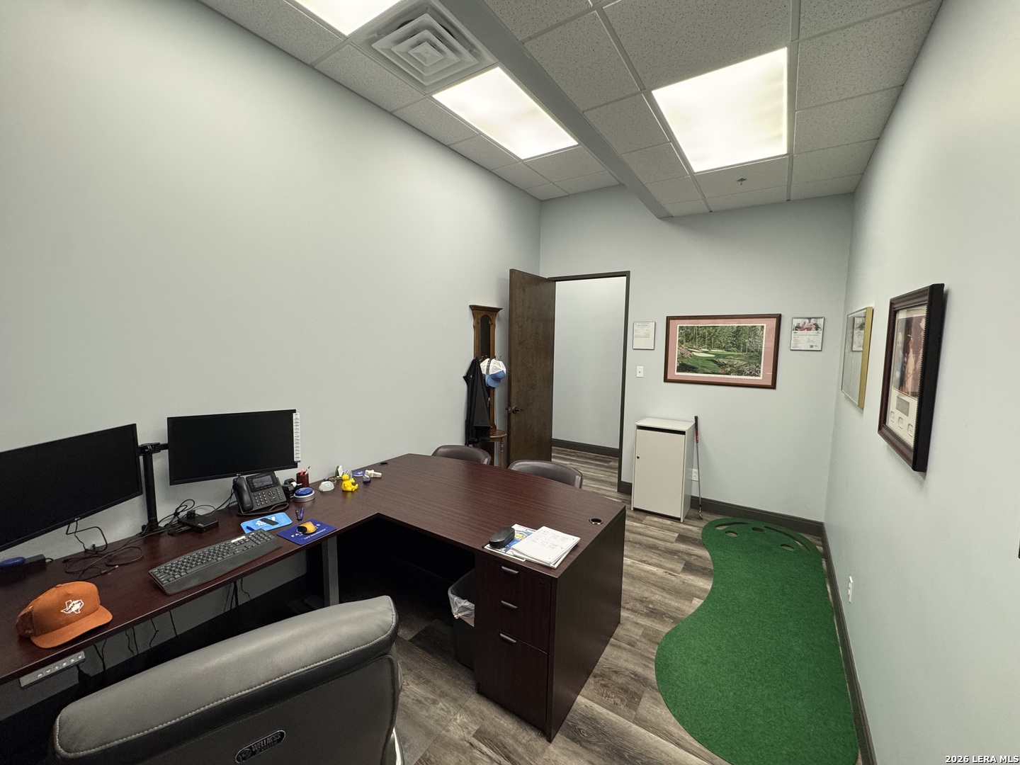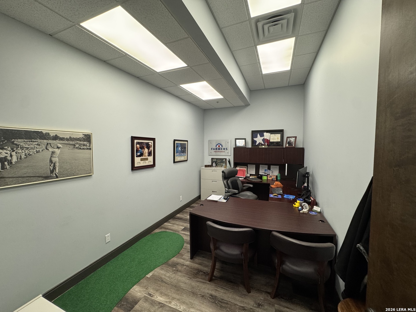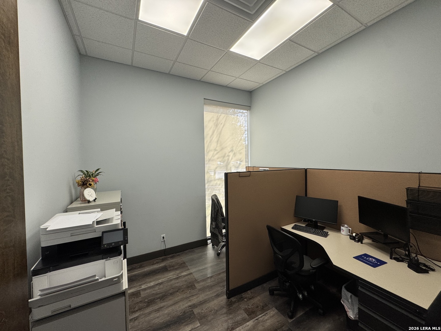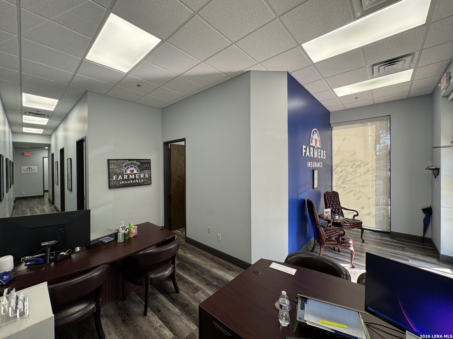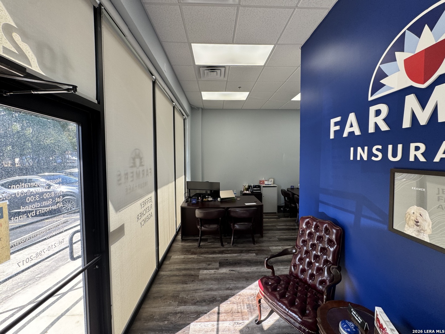 Currently pre-leasing an existing Insurance office, available now. This professional one-story office suite offers strong visibility and functional design, featuring a modern glass storefront, prominent monument signage, and a clean interior finished with waterproof RevWood flooring throughout. A ramped entry leads into a polished waiting/reception area, providing a convenient and well-organized entry space. The remainder of the suite is configured with three private offices, a dedicated conference room, one restroom, and a break room. The layout is professional and intuitive, with a seamless flow between rooms that supports both client-facing operations and day-to-day administrative functions. Zoned C-2, the property is well suited for office use, specialty retail or trade-oriented, as well as a variety of professional uses such as real estate, CPA, insurance, legal, and select medical practices. Call to schedule your private showing today!
