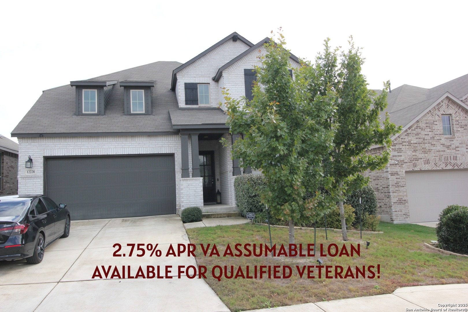 2.75% APR VA ASSUMABLE LOAN AVAILABLE FOR QUALIFIED VETERANS! Welcome to this meticulously maintained 2-story home in the highly desirable Davis Ranch community. With 3,049 sq. ft. of well-designed living space and high ceilings, this 4-bedroom, 4-full-bath home offers comfort, functionality, and timeless style. The open-concept layout features large windows that bring in abundant natural light, a spacious living area, and a covered patio-ideal for gatherings and everyday living. The chef-inspired kitchen offers generous counter space, stainless steel appliances, a tasteful tile backsplash, and a center island for casual dining. The primary suite is conveniently located on the main level and features a luxurious ensuite with a separate tub, walk-in shower, double vanity, and a large walk-in closet. A second bedroom with a full bath is also located downstairs-excellent for guests or multigenerational living. Upstairs, you'll find two additional bedrooms, a media room, and a generous loft that adds flexible living space. Additional upgrades include a water softener, reverse osmosis system, security system, and a 2-car garage. Outside, enjoy the covered patio and privacy fence, extending the home's living space. This exceptional property blends comfort, style, and location. Situated in one of the area's most sought-after communities and school districts, and conveniently close to restaurants, shopping, major highways, UTSA, and La Cantera. A solid, well-designed home with the space and features buyers want. Schedule your private showing today!