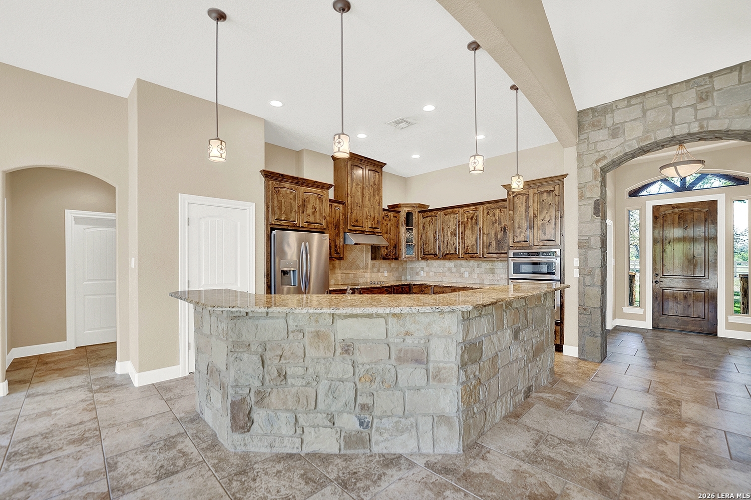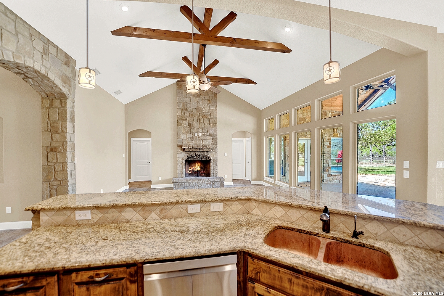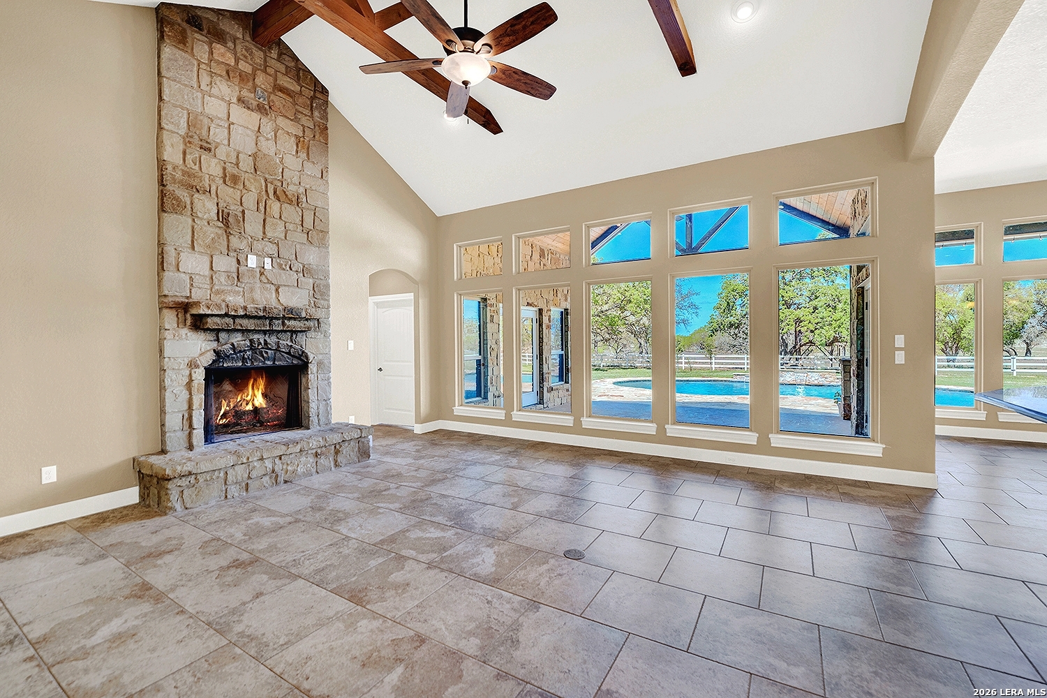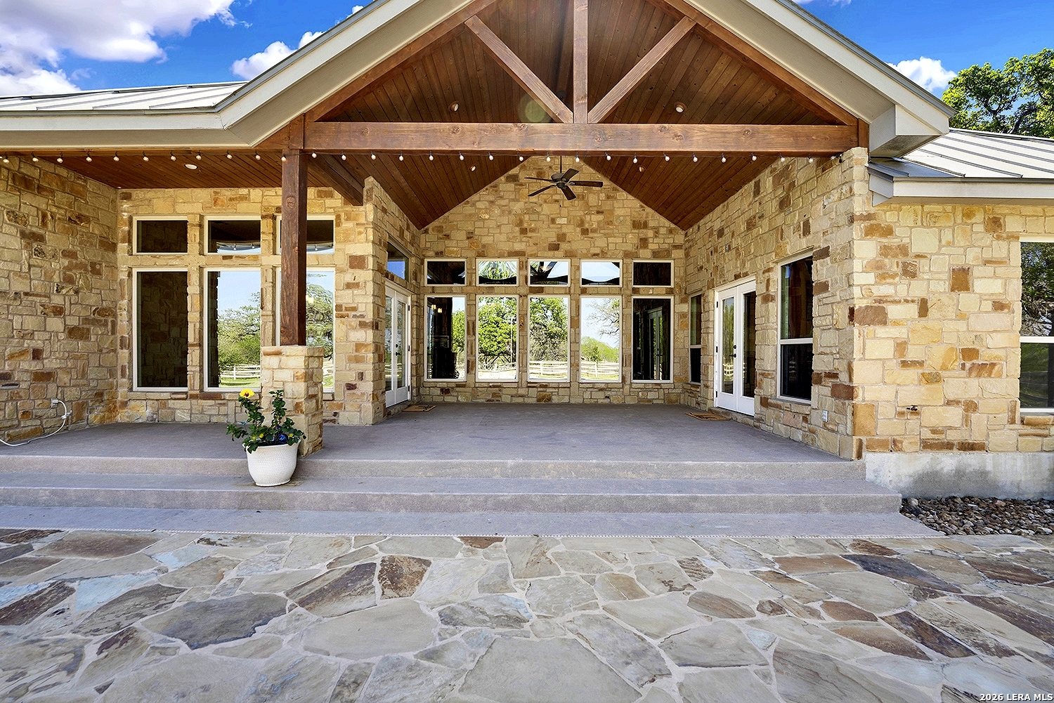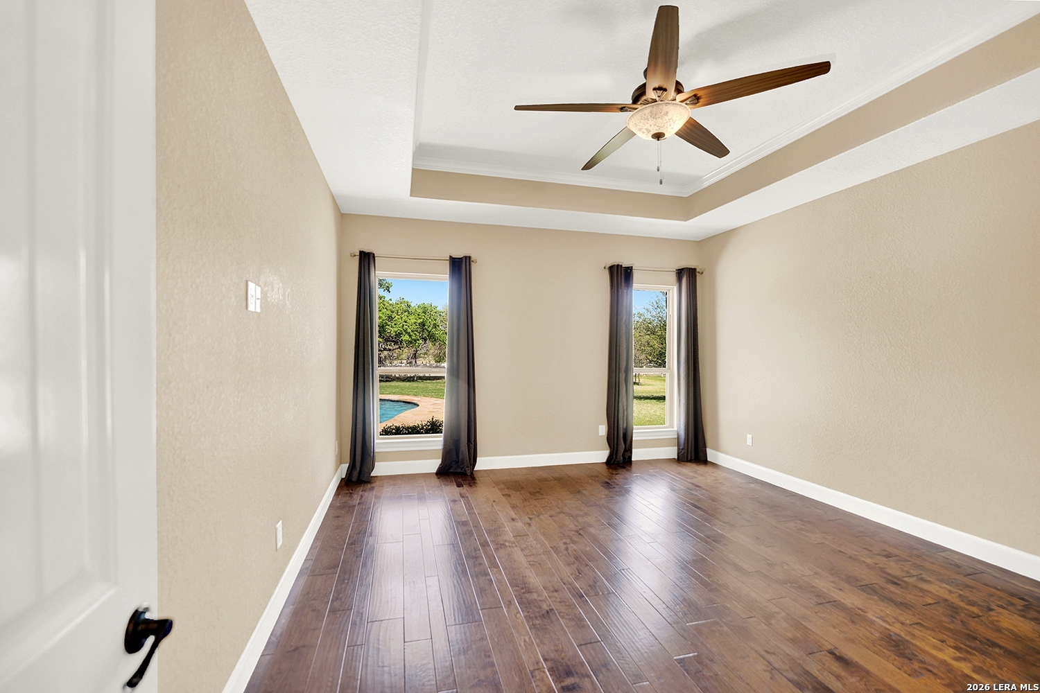 Great opportunity to own your own piece of Texas country with this gorgeous ranchette just outside the San Antonio Area. The picturesque property features 25 acres studded in mature trees with a gorgeous Ranch style rock and stucco home with a metal roof and modern finish out. Beautiful Open Floor Plan featuring 5 bedrooms, 3 full bathrooms, additional Office and separate Game Room (5th BR) with wet bar area and on-suite bathroom. Tile and Engineered Hardwood floors throughout and a Grand Rock Fireplace from ceiling to floor. Open living plan, with a chef's kitchen with premium appliances and a large granite bar for ample seating. Large windows in the main living area over look the large covered patio that leads you to the inground pool surrounded by flagstone and a water fall feature. Sprinkler system yard and mature trees to keep a canopy of shade in the vinyl fenced in yard. Ample parking space and gravel area for parking and circle drive, 2 car garage (will fit 2 dually trucks), Stock Tank located in the back of property and maintains an Ag Exemption due to the lush coastal grass up front for hay production. Wooded back acres are a wildlife paradise. This property has so much to offer and beautiful secluded setting all while being conveniently located to the La Vernia community as well as 25 MI commute to downtown SA. Located less than 5 miles outside Loop 1604.
