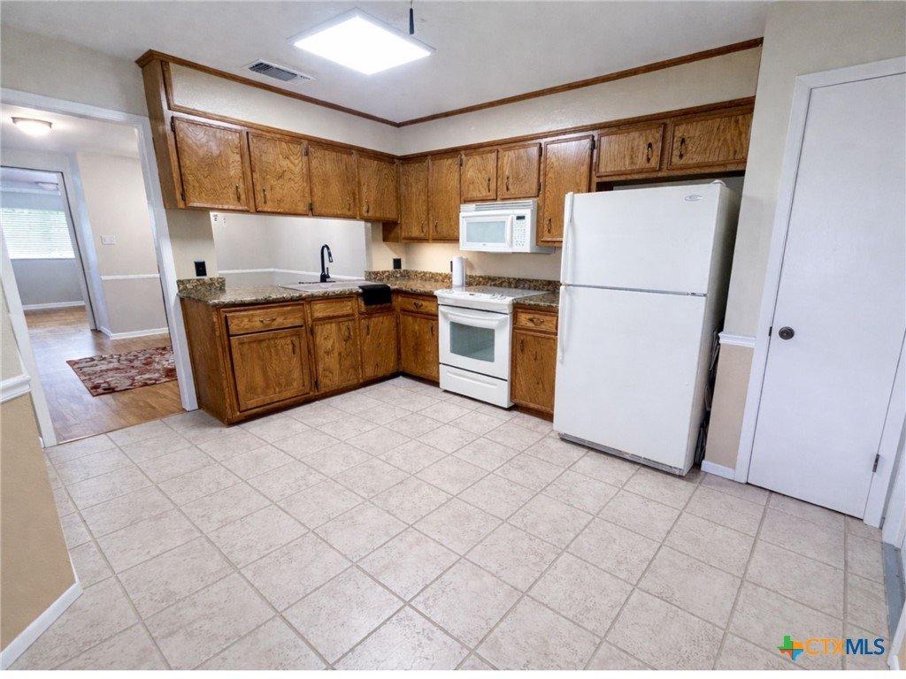 Welcome home to this beautifully updated 2-bedroom, 2-bath brick home offering comfort, style, and a layout that truly lives well. Outside mature shade trees offer show-stopping curb appeal. Step inside to a spacious living area with vaulted ceilings, anchored by a cozy fireplace and seamlessly open to the dining space—perfect for everyday living or entertaining. The split floor plan provides privacy and functionality, with each bedroom featuring its own bathroom and ample closet space. Recent updates shine throughout the home, including granite countertops and updated flooring, with NO carpet anywhere for a clean, modern feel and easy maintenance. Enjoy indoor-outdoor living in the fantastic backyard, complete with a covered patio and privacy fence—ideal for relaxing evenings, pets, or weekend gatherings. Additional highlights include a 2-car attached garage and a durable brick exterior on 3 sides. This one checks all the boxes—style, space, and an outdoor retreat you’ll love.