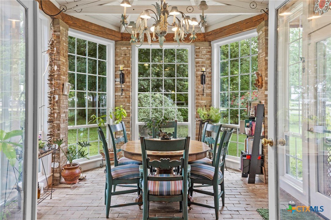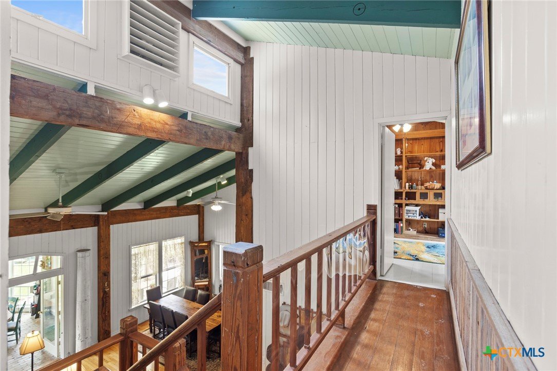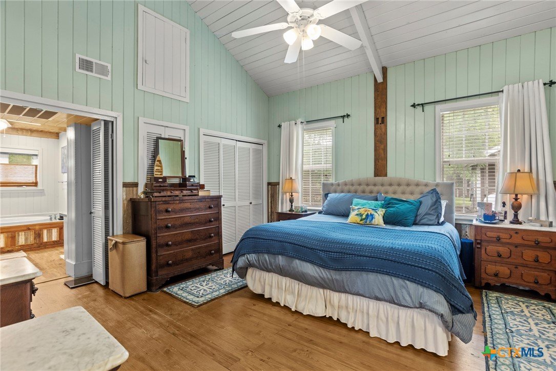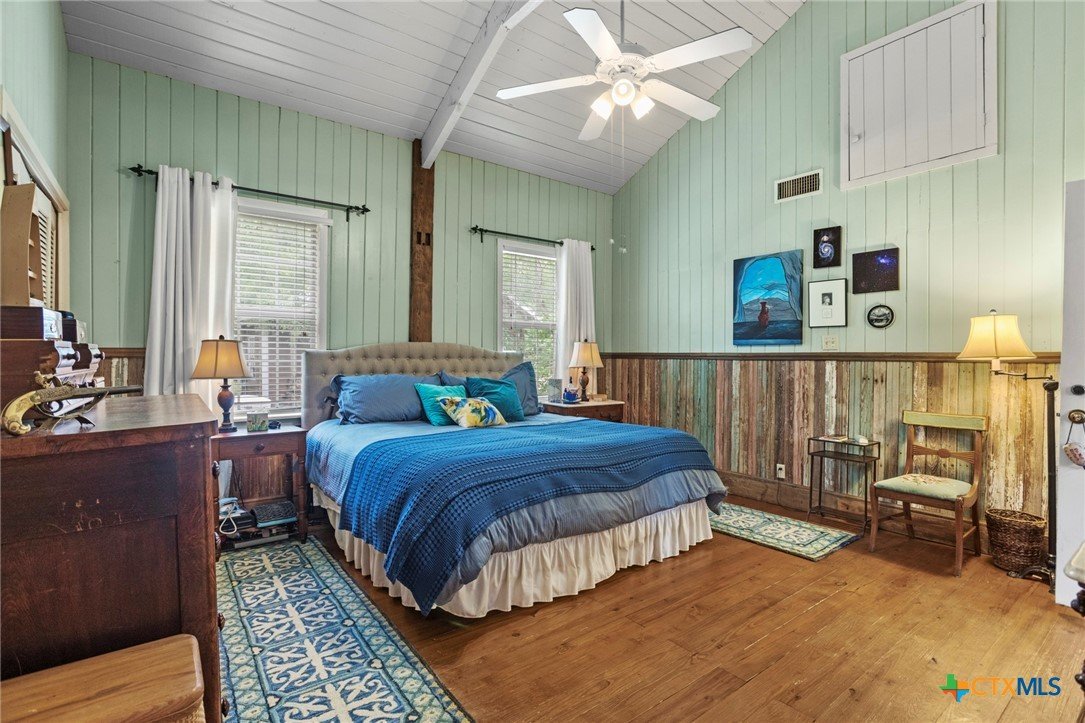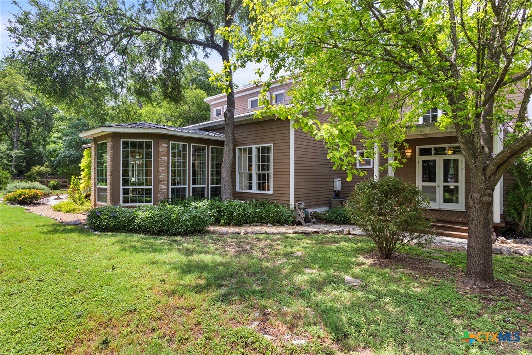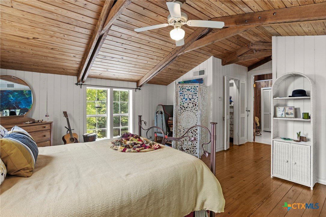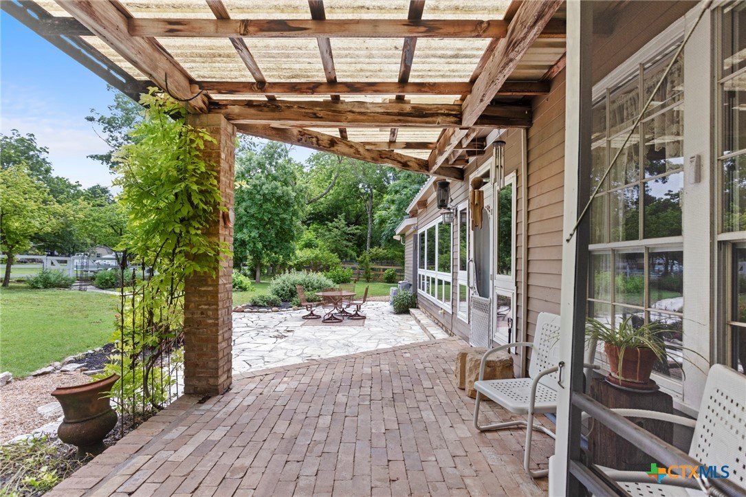 Tucked within a serene, tree-lined cul-de-sac, this timeless New England-style home is a work of art—crafted with care, rooted in heritage, and wrapped in quiet elegance, built by the renowned architect, Darwin Britt for his family home. Just a short stroll from the heart of historic downtown Salado, you’ll find yourself moments from a 27-hole Robert Trent Jones golf course, destination dining, boutique shops, local breweries, art galleries, and the beauty of Pace Park and Salado Creek. Originally constructed in 1982, the home has grown with grace—expanded thoughtfully to include two luxurious primary suites that reflect the original post-and-beam architecture. Huge reclaimed longleaf pine beams, once part of 1920’s railroad trestles, stretch across the ceilings, joined by traditional wooden pegs, grounding the home in Texas history and craftsmanship. Step through the front entry door from Texas' oldest continuously operating college and into the warmth and texture of rustic wood floors and walls, repurposed from a 19th-century gymnasium. The open living and dining rooms embrace a sculptural central staircase and anchored by a stately Count Rumford fireplace, blending beauty with utility. One wing offers a secondary suite with fireplace, clawfoot tub, and French doors that open to the backyard. Across the home, the secluded primary suite invites you down a window-lined gallery, revealing a private retreat with soaking tub, dual vanities, two walk-in closets, and a spacious shower. Upstairs, two charming bedrooms share a Jack and Jill bath and a quiet sitting nook—ideal for guests, or creative space. This is a home for those who appreciate the poetry of place. A place where history lives in the grain of wood, where design whispers rather than shouts, and where mornings can begin with a walk to the café and evenings with nearby live music. Use as a full-time haven or weekend escape. This Texas home is built above the flood plain, with no flood insurance requirement.
