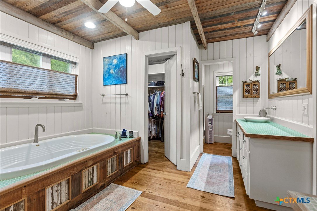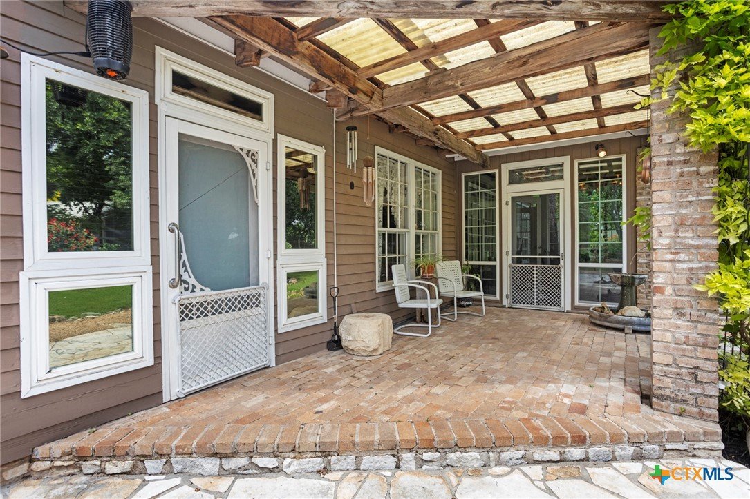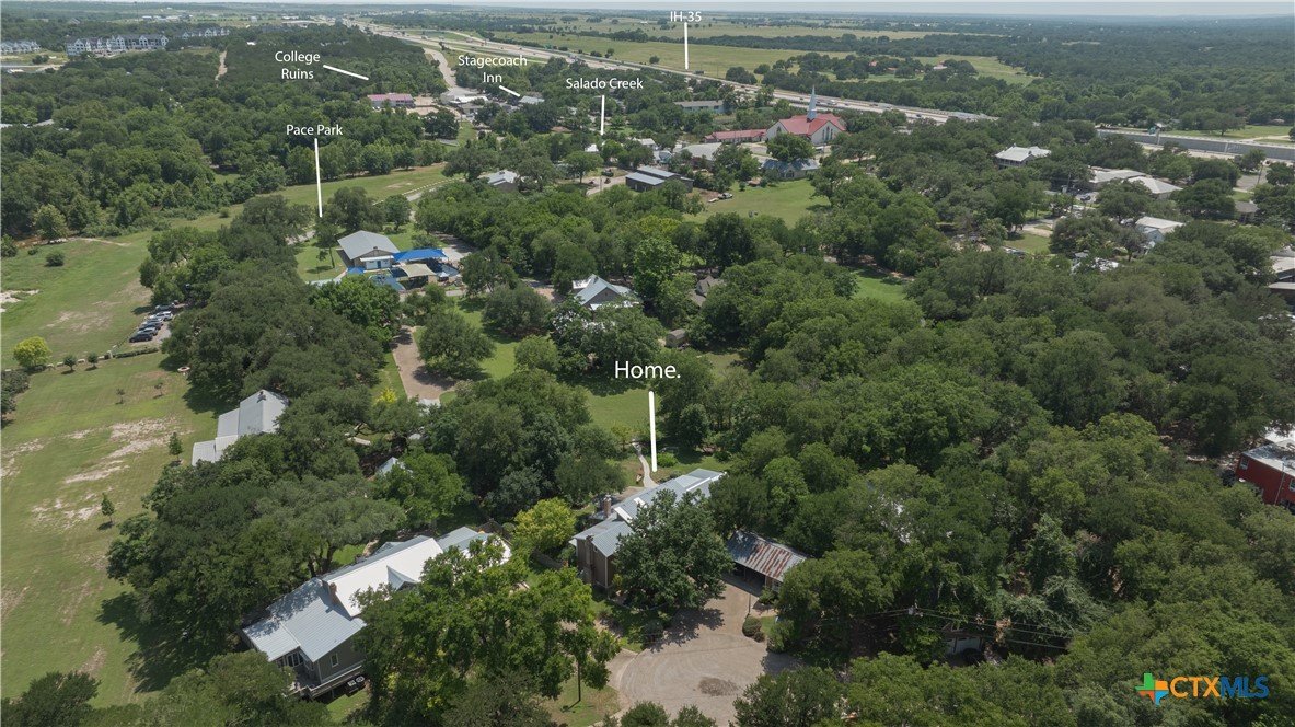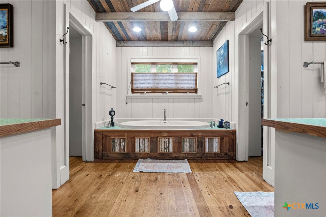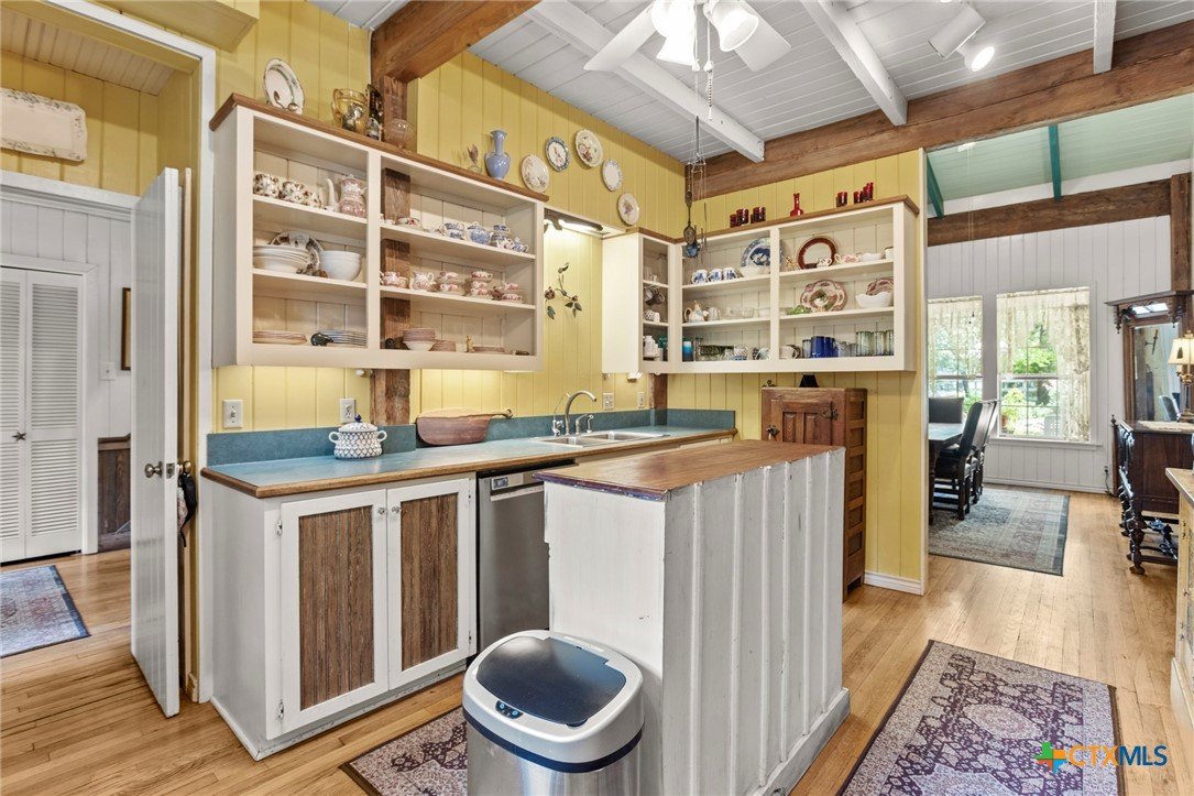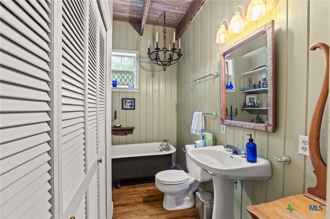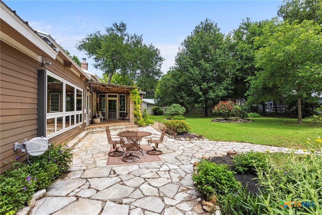 Tucked within a serene, tree-lined cul-de-sac, this timeless New England-style home is a work of art—crafted with care, rooted in heritage, and wrapped in quiet elegance, built by the renowned architect, Darwin Britt for his family home. Just a short stroll from the heart of historic downtown Salado, you’ll find yourself moments from a 27-hole Robert Trent Jones golf course, destination dining, boutique shops, local breweries, art galleries, and the beauty of Pace Park and Salado Creek. Originally constructed in 1982, the home has grown with grace—expanded thoughtfully to include two luxurious primary suites that reflect the original post-and-beam architecture. Huge reclaimed longleaf pine beams, once part of 1920’s railroad trestles, stretch across the ceilings, joined by traditional wooden pegs, grounding the home in Texas history and craftsmanship. Step through the front entry door from Texas' oldest continuously operating college and into the warmth and texture of rustic wood floors and walls, repurposed from a 19th-century gymnasium. The open living and dining rooms embrace a sculptural central staircase and anchored by a stately Count Rumford fireplace, blending beauty with utility. One wing offers a secondary suite with fireplace, clawfoot tub, and French doors that open to the backyard. Across the home, the secluded primary suite invites you down a window-lined gallery, revealing a private retreat with soaking tub, dual vanities, two walk-in closets, and a spacious shower. Upstairs, two charming bedrooms share a Jack and Jill bath and a quiet sitting nook—ideal for guests, or creative space. This is a home for those who appreciate the poetry of place. A place where history lives in the grain of wood, where design whispers rather than shouts, and where mornings can begin with a walk to the café and evenings with nearby live music. Use as a full-time haven or weekend escape. This Texas home is built above the flood plain, with no flood insurance requirement.
