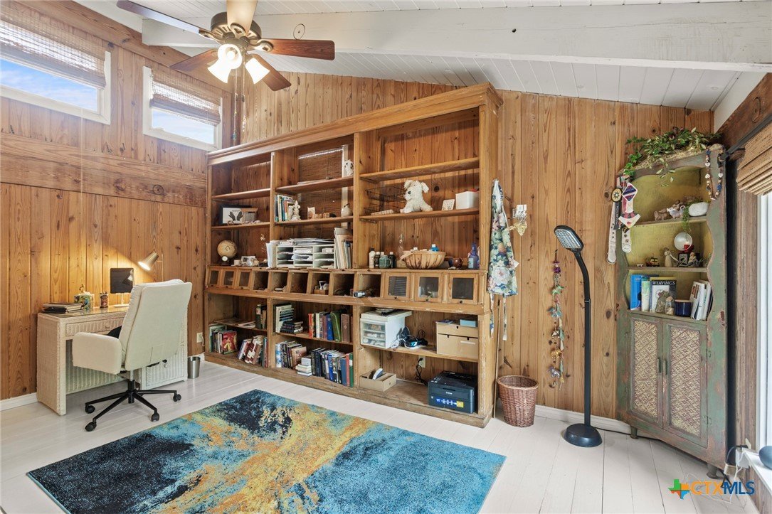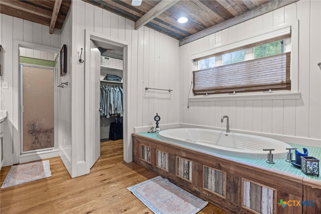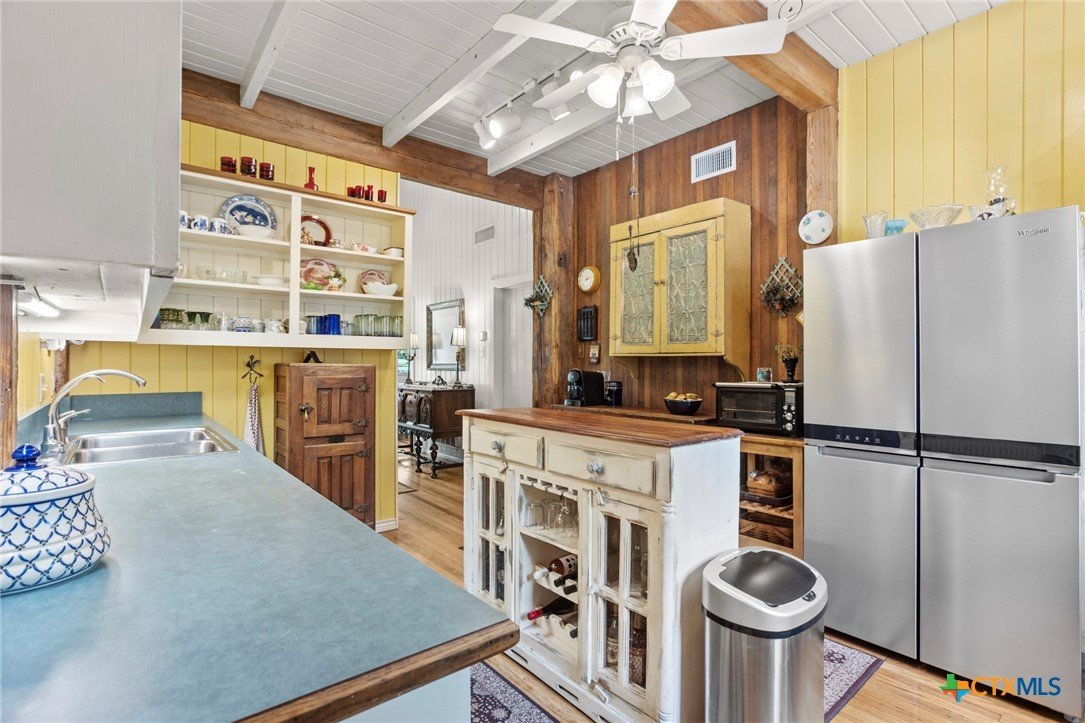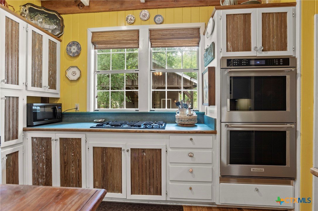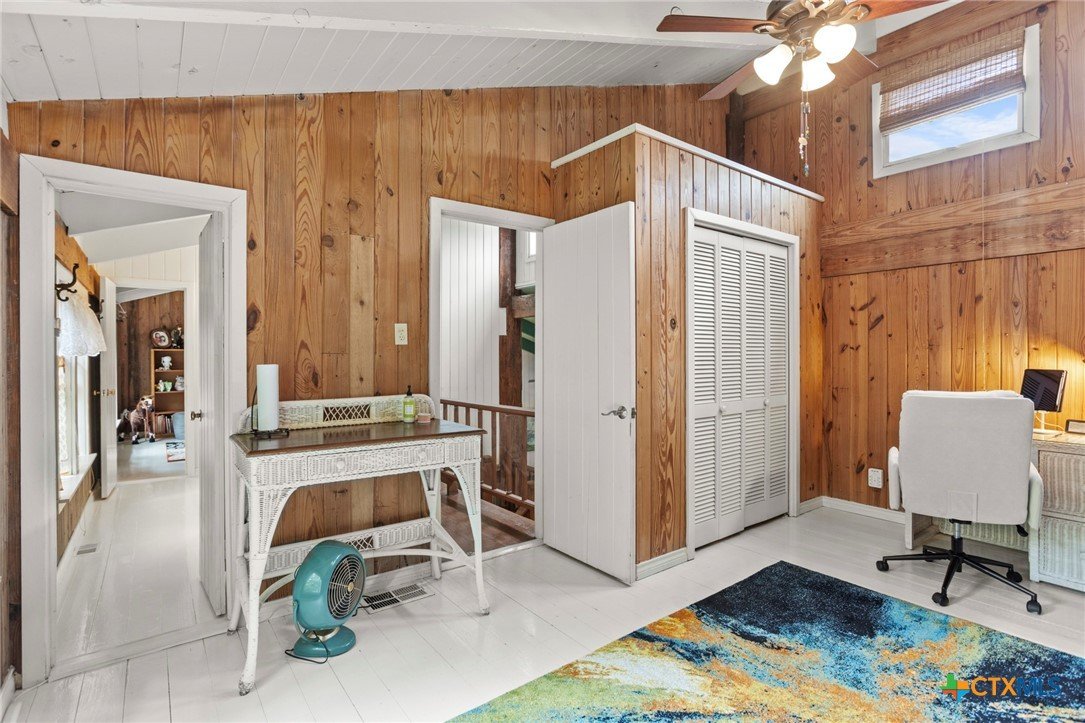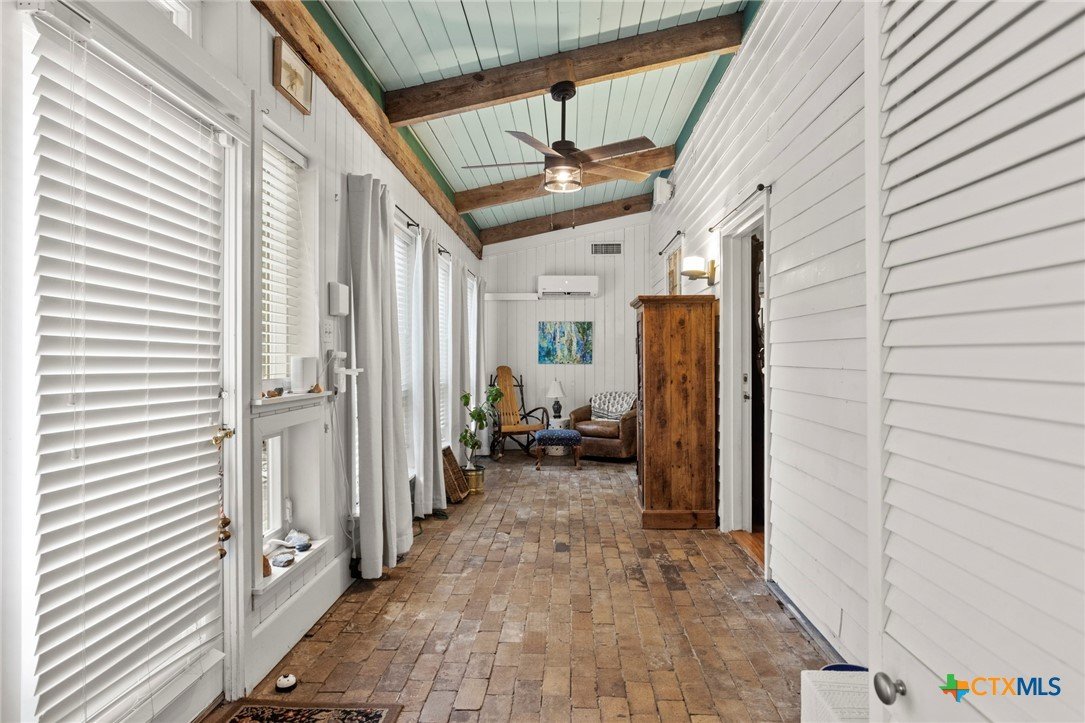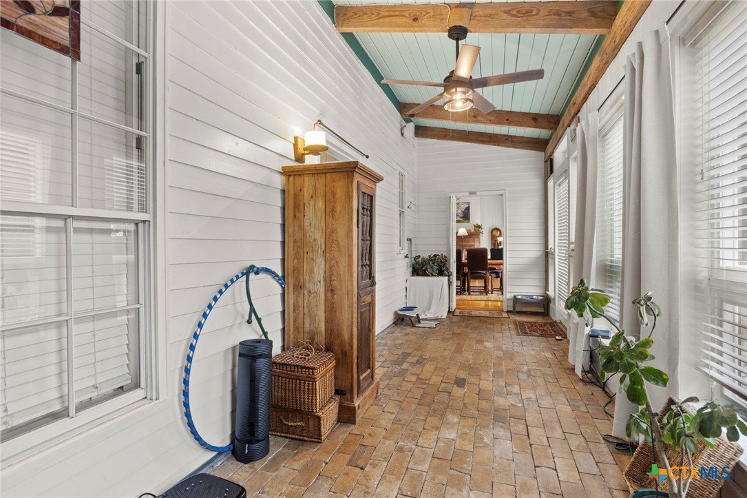 Tucked within a serene, tree-lined cul-de-sac, this timeless New England-style home is a work of art—crafted with care, rooted in heritage, and wrapped in quiet elegance, built by the renowned architect, Darwin Britt for his family home. Just a short stroll from the heart of historic downtown Salado, you’ll find yourself moments from a 27-hole Robert Trent Jones golf course, destination dining, boutique shops, local breweries, art galleries, and the beauty of Pace Park and Salado Creek. Originally constructed in 1982, the home has grown with grace—expanded thoughtfully to include two luxurious primary suites that reflect the original post-and-beam architecture. Huge reclaimed longleaf pine beams, once part of 1920’s railroad trestles, stretch across the ceilings, joined by traditional wooden pegs, grounding the home in Texas history and craftsmanship. Step through the front entry door from Texas' oldest continuously operating college and into the warmth and texture of rustic wood floors and walls, repurposed from a 19th-century gymnasium. The open living and dining rooms embrace a sculptural central staircase and anchored by a stately Count Rumford fireplace, blending beauty with utility. One wing offers a secondary suite with fireplace, clawfoot tub, and French doors that open to the backyard. Across the home, the secluded primary suite invites you down a window-lined gallery, revealing a private retreat with soaking tub, dual vanities, two walk-in closets, and a spacious shower. Upstairs, two charming bedrooms share a Jack and Jill bath and a quiet sitting nook—ideal for guests, or creative space. This is a home for those who appreciate the poetry of place. A place where history lives in the grain of wood, where design whispers rather than shouts, and where mornings can begin with a walk to the café and evenings with nearby live music. Use as a full-time haven or weekend escape. This Texas home is built above the flood plain, with no flood insurance requirement.